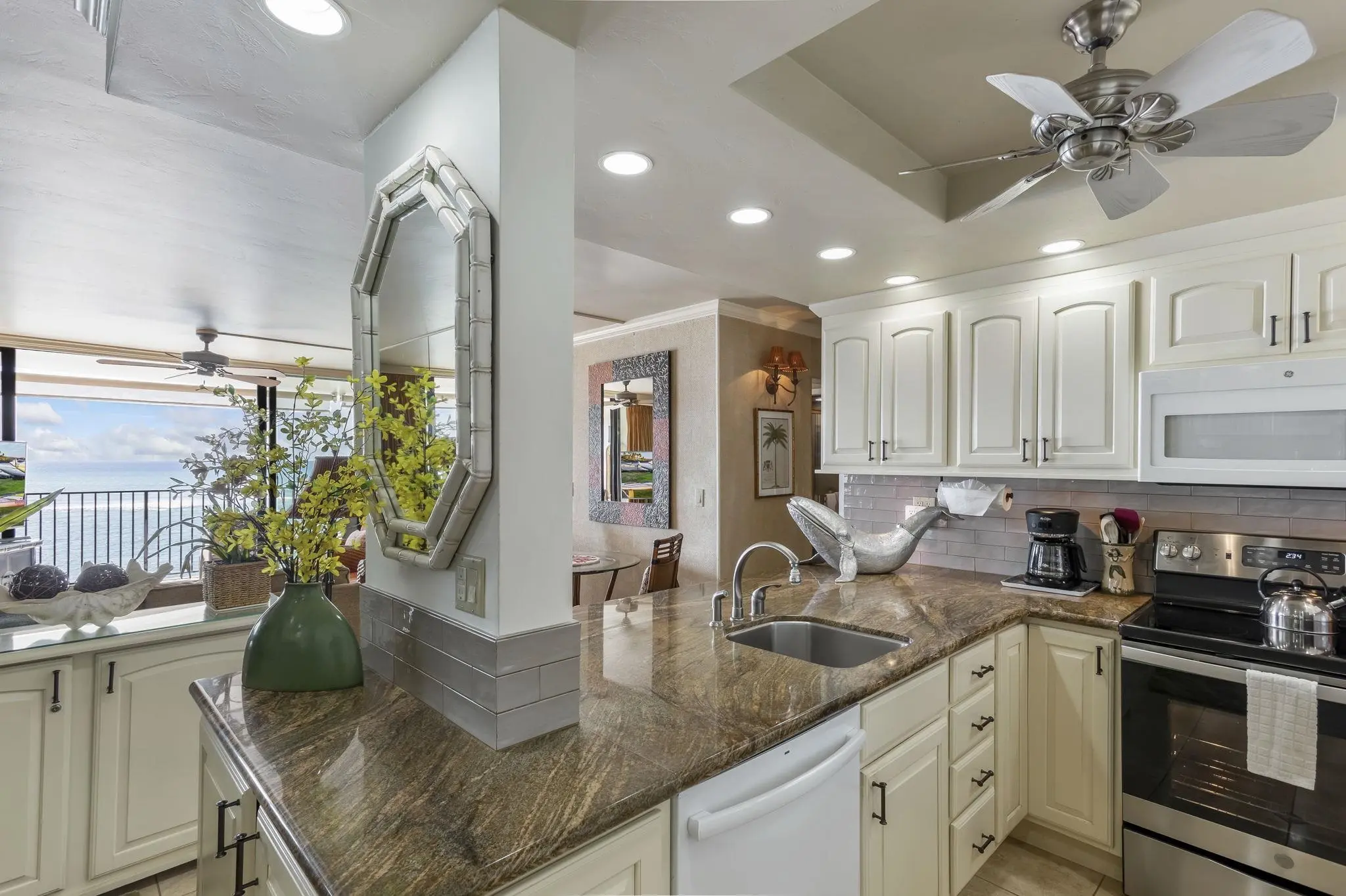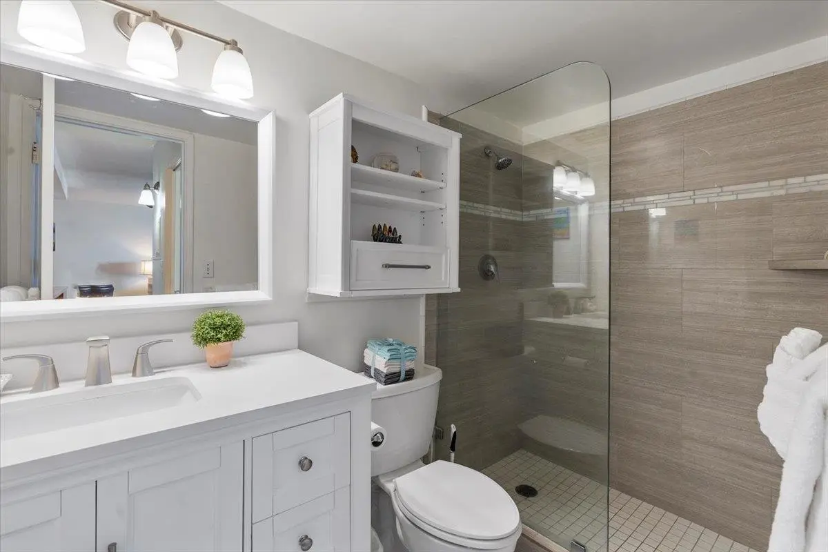 Several condo owners have updated their homes during recent years. These apartments offer full kitchens, and most feature breakfast bars. Bathrooms tend to include extensive counter space. Residents and guests enjoy access to an in-ground swimming pool overlooking the Pacific Ocean.