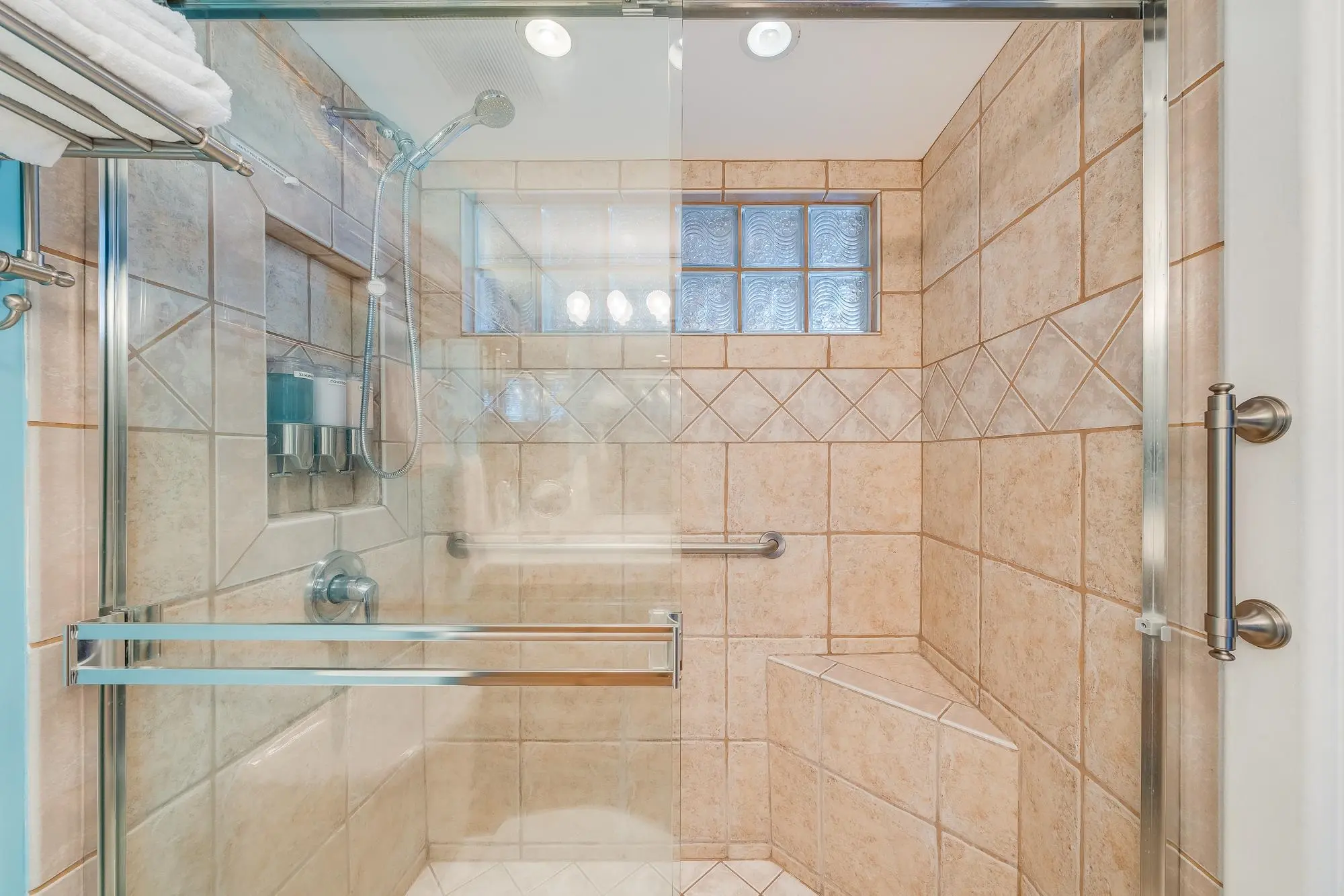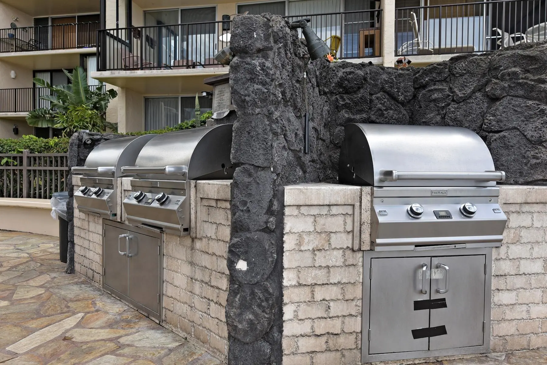 An adjoining paved poolside area provides a barbecue and picnic facilities. An attractively landscaped lawn fills the space between the two condo buildings. Residents may keep one pet on the premises, with some restrictions.
