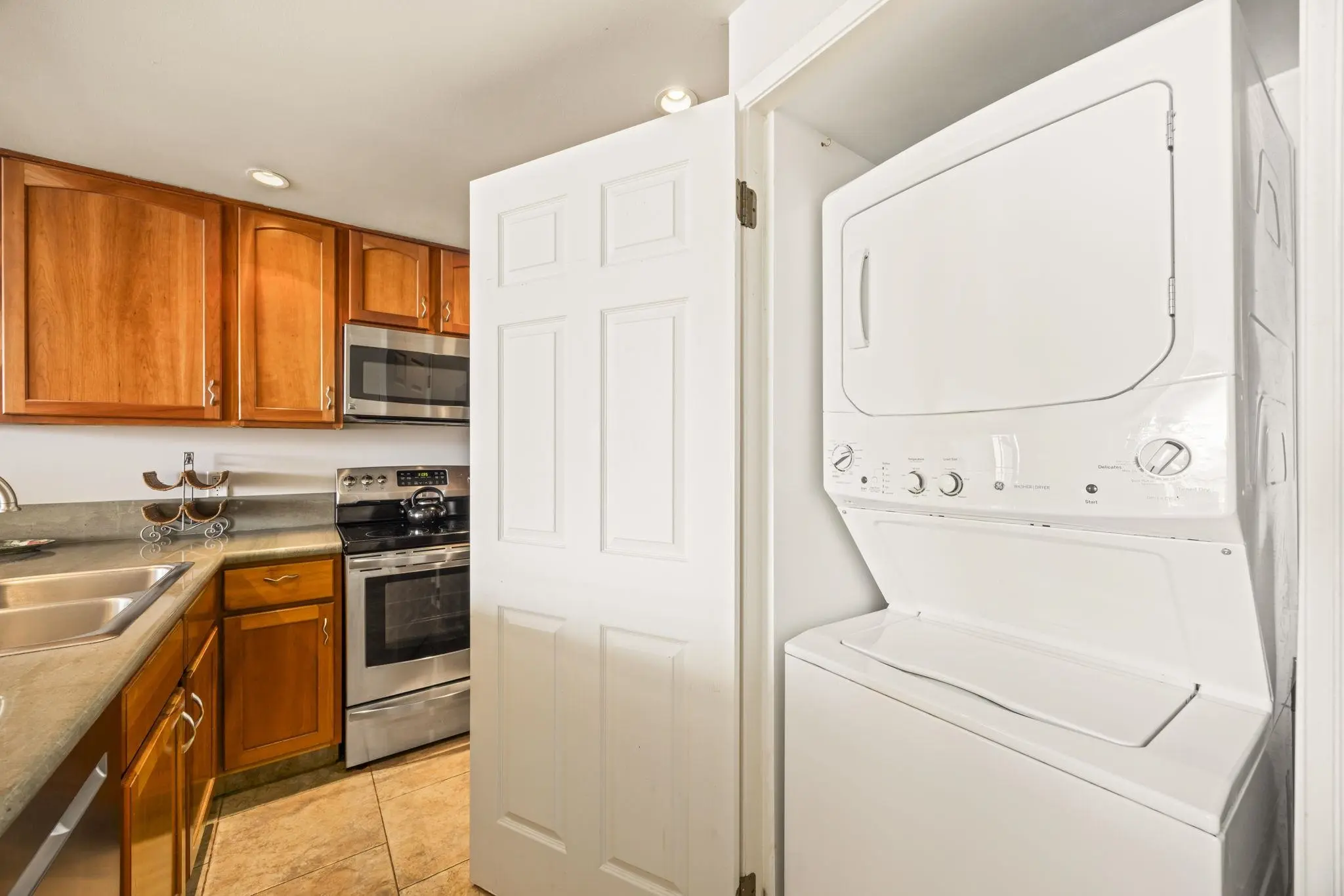 Elevators offer convenient access for residents who prefer not to use stairs. Every unit includes a dedicated covered parking stall. An on-site manager helps oversee the condition of the buildings and the grounds on a daily basis. Residents pay a monthly maintenance fee. It varies slightly in amount from one unit to another, based on the size of an individual floor plan.