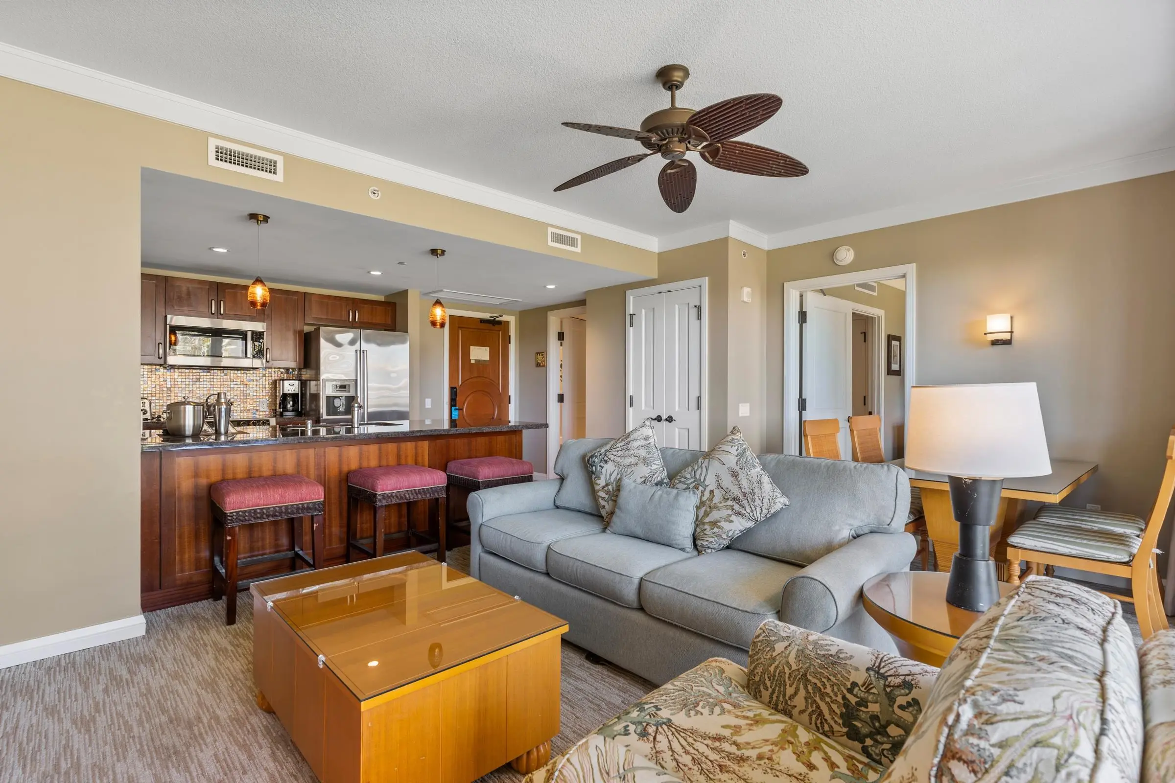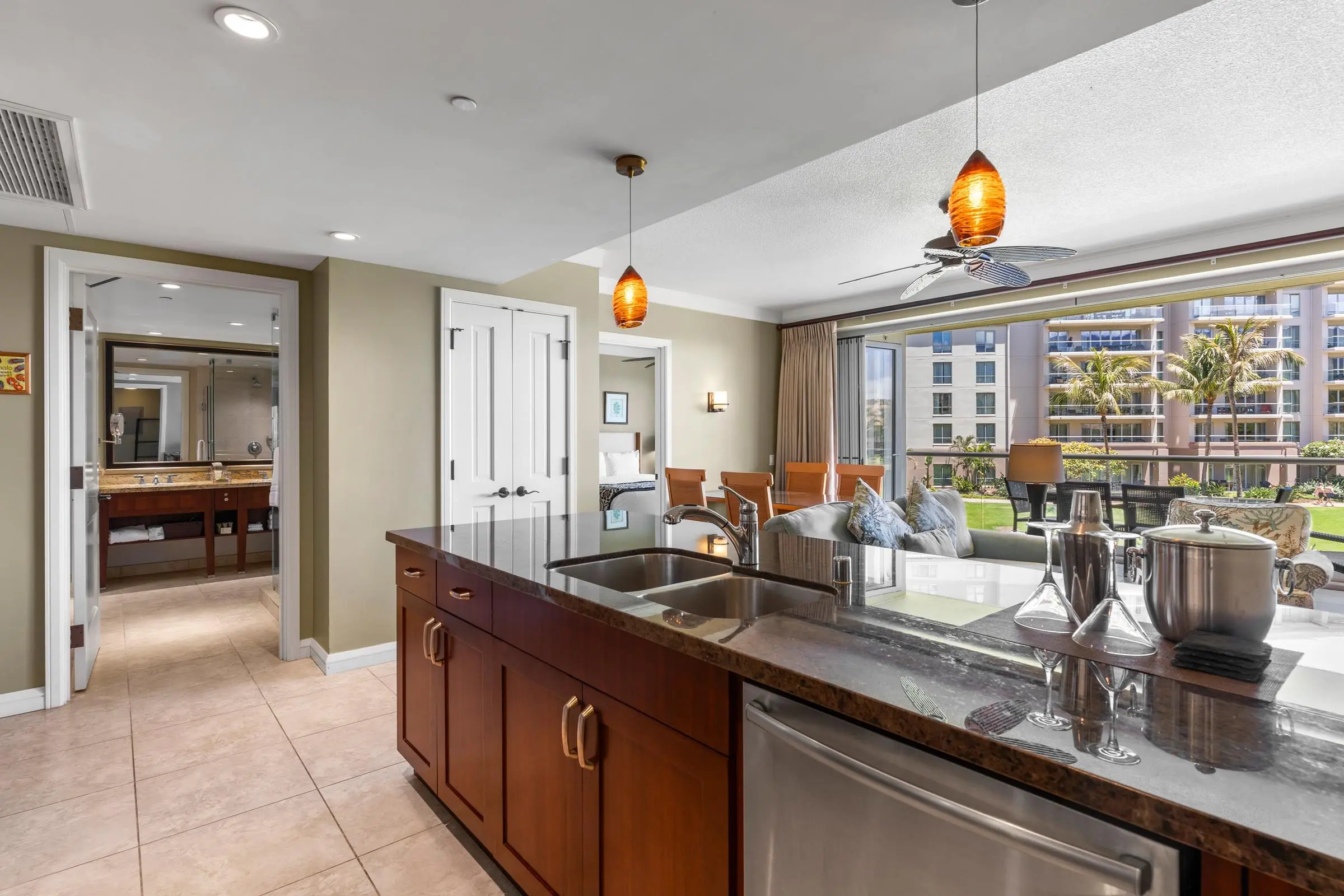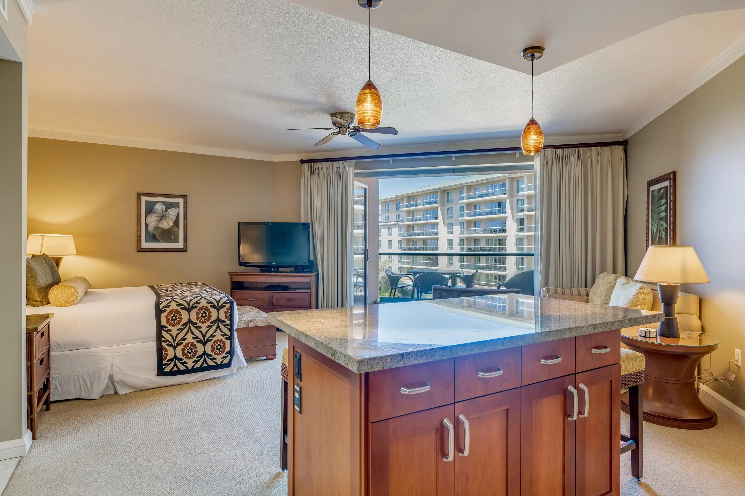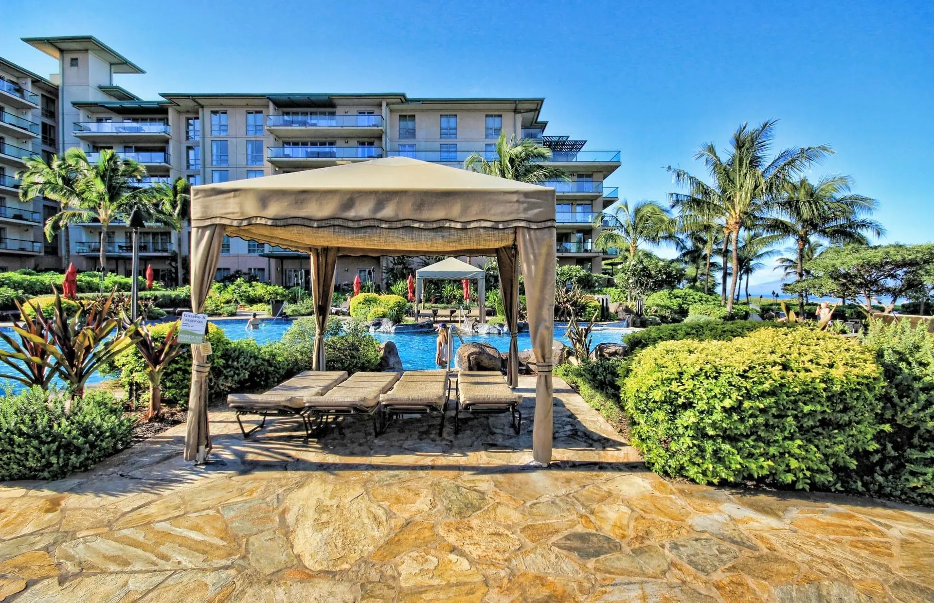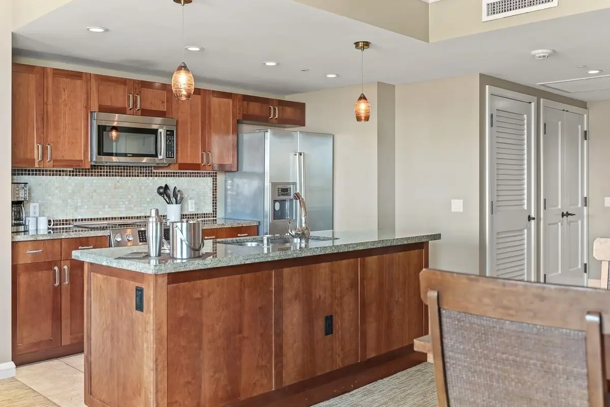 For your convenience, you’ll have access to the Honua Kai's fitness centers and spa, two restaurants, concierge and beach equipment rental services, multiple hot tubs, and a 3-acre network of aquatic fun that consists of swimming and wading pools, fountains for children, a sandy beach, and waterslide.