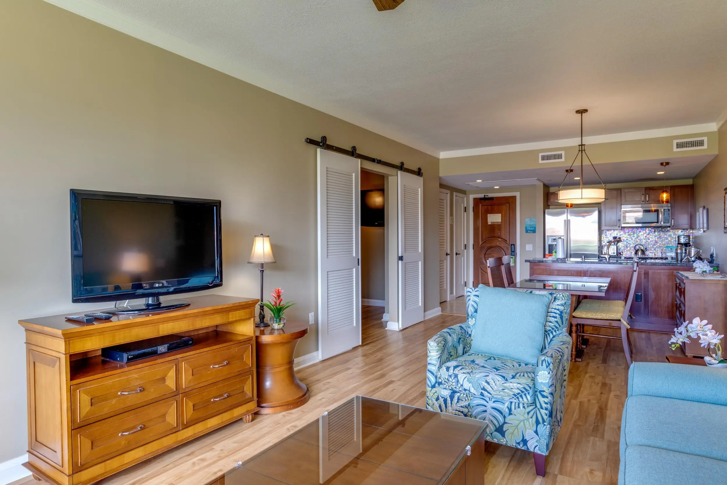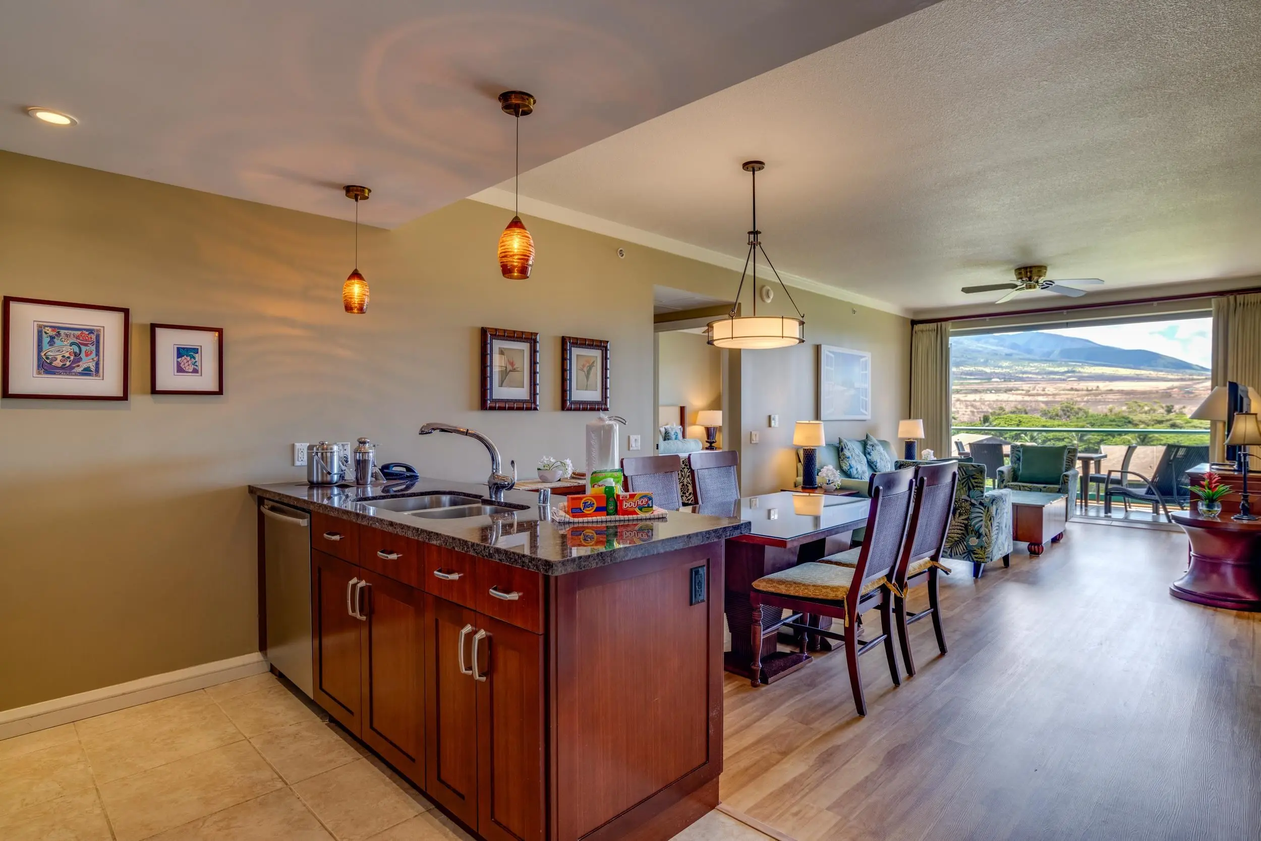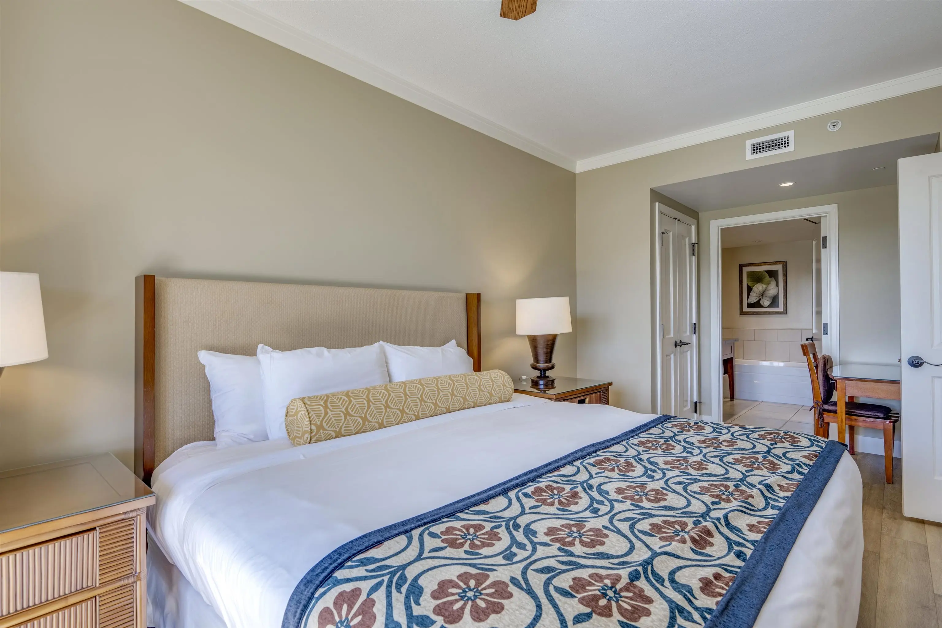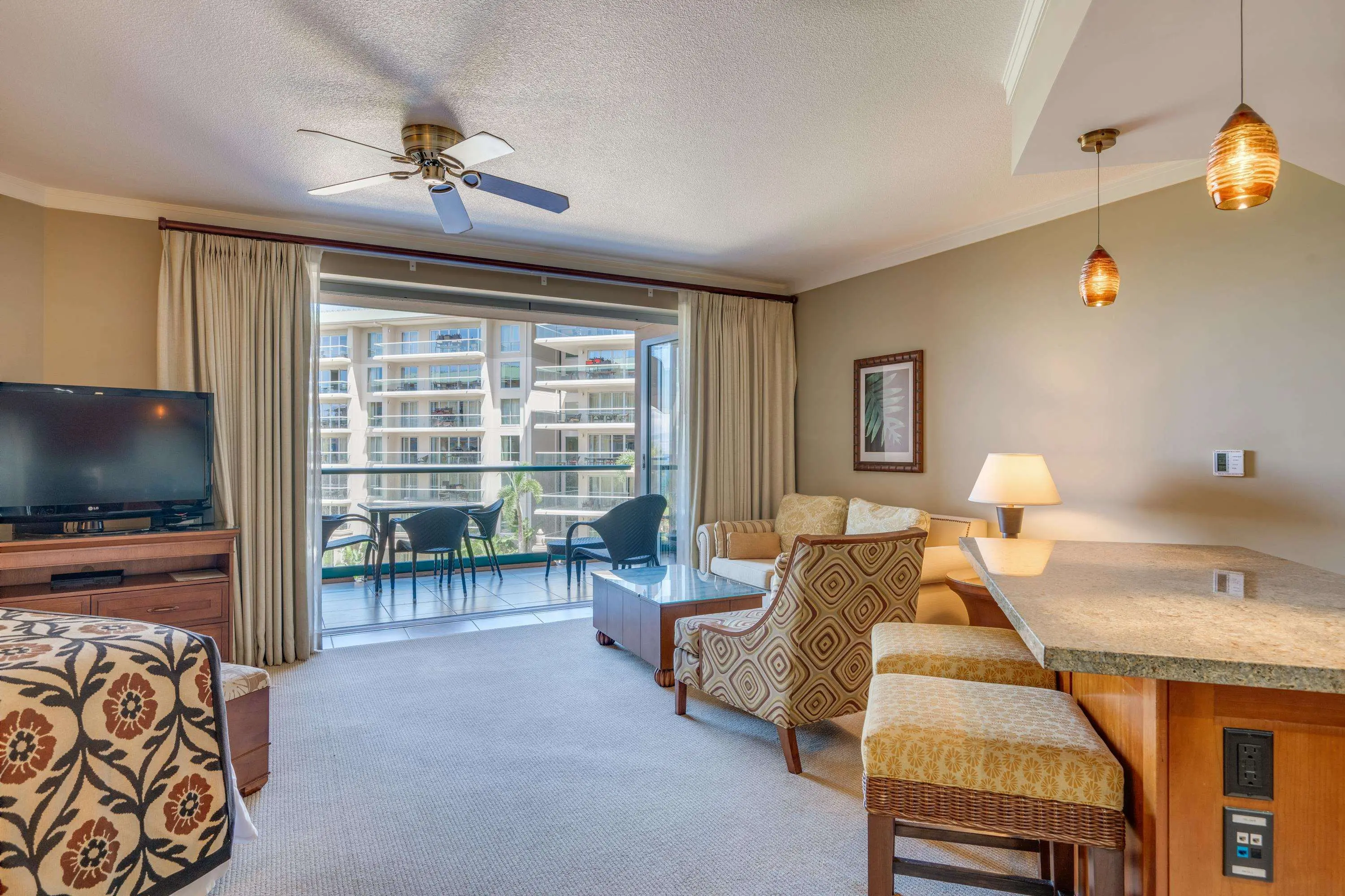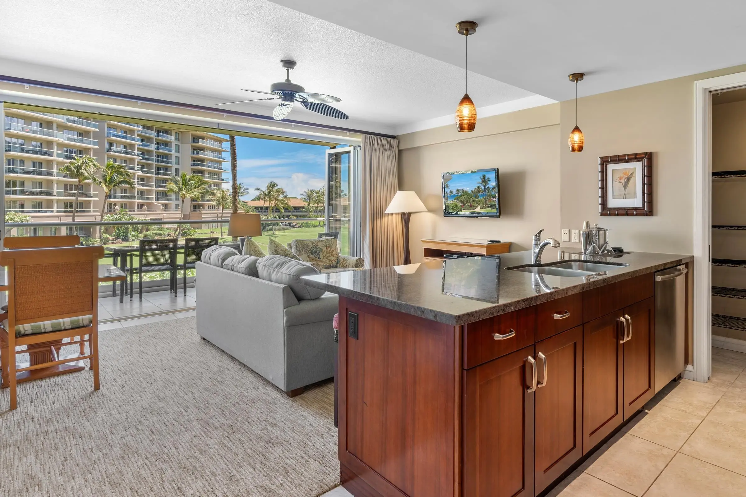 For your convenience, you’ll have access to the Honua Kai's fitness centers and spa, two restaurants, concierge and beach equipment rental services, multiple hot tubs, and a 3-acre network of aquatic fun that consists of swimming and wading pools, fountains for children, a sandy beach, and waterslide.