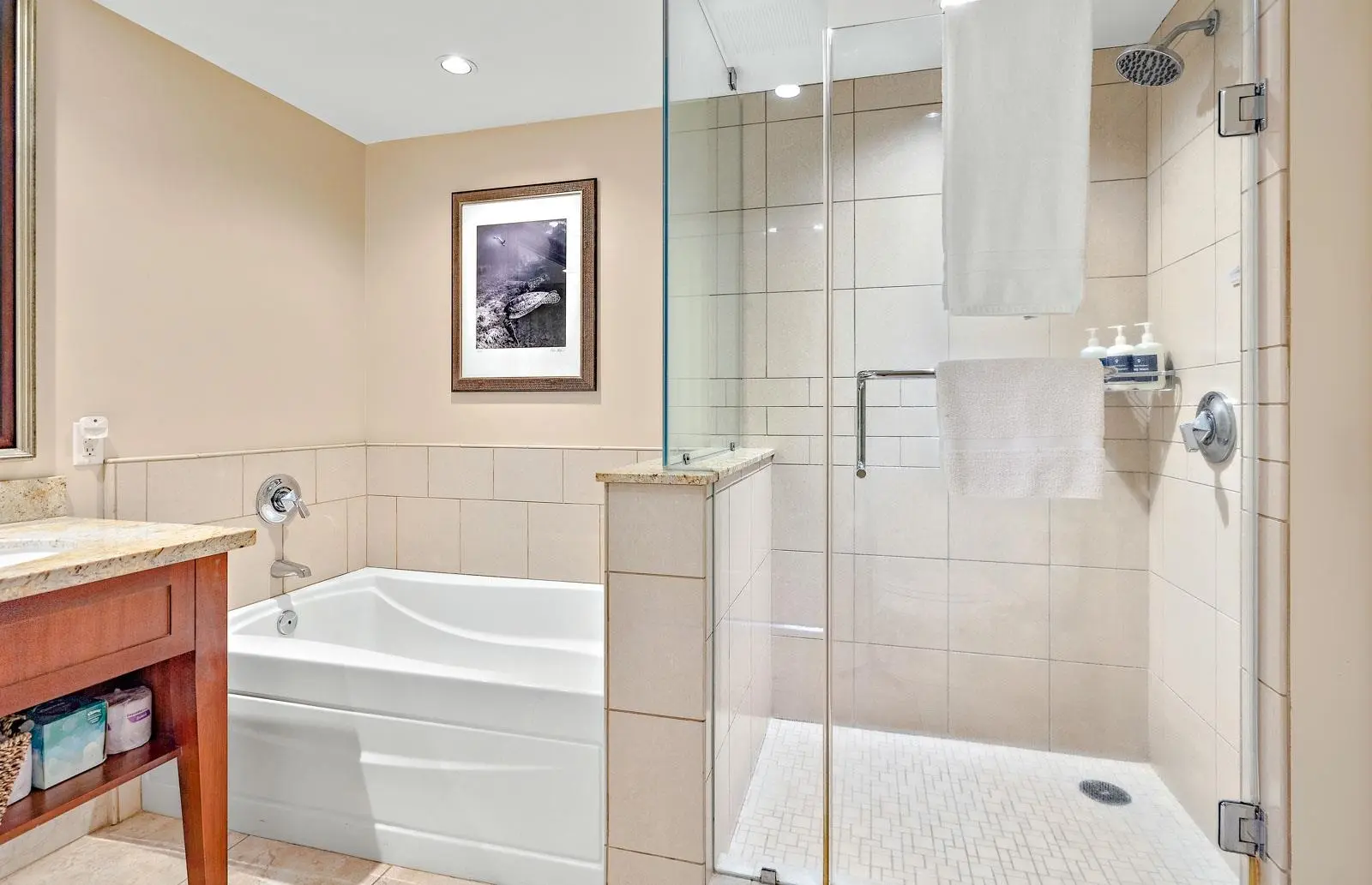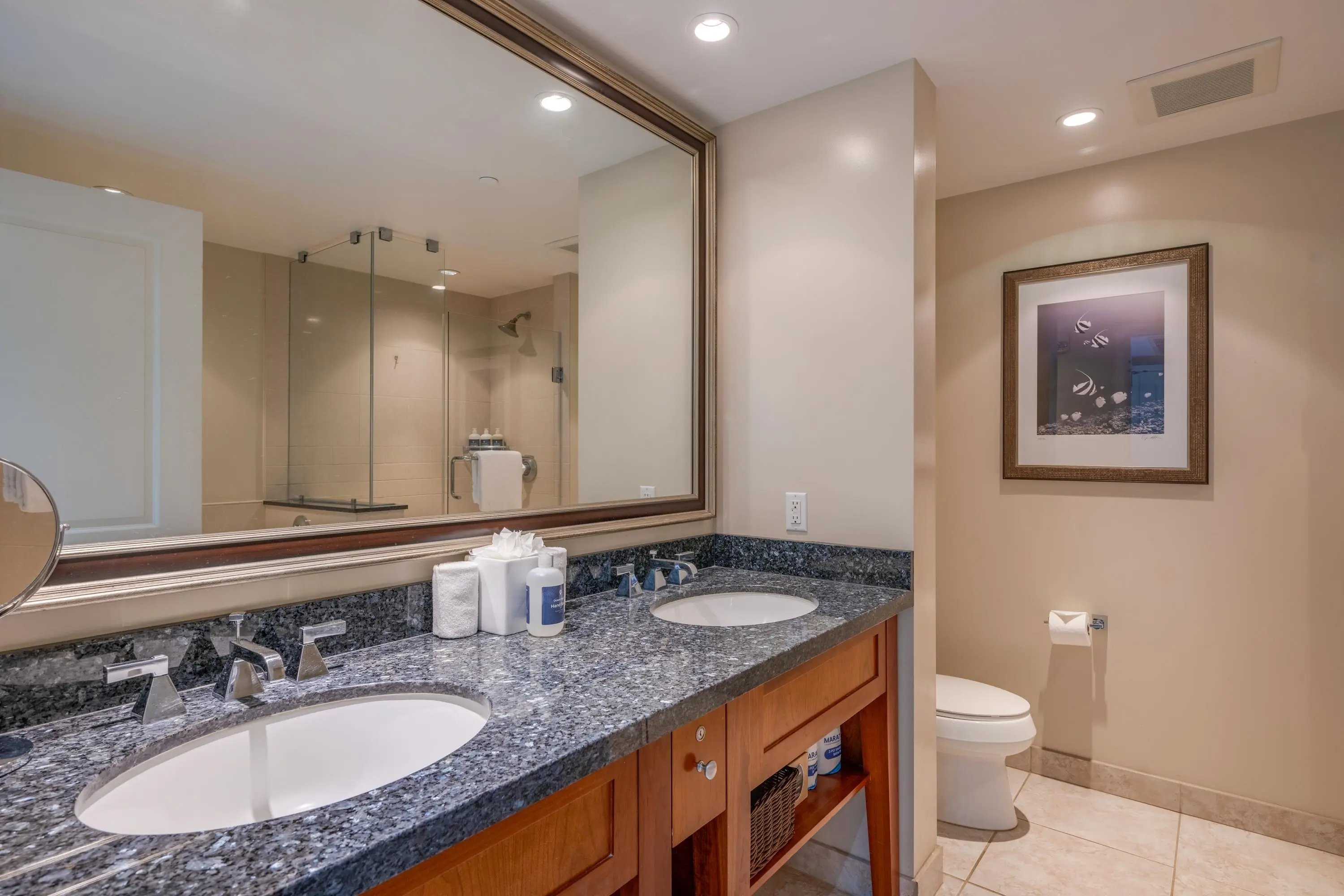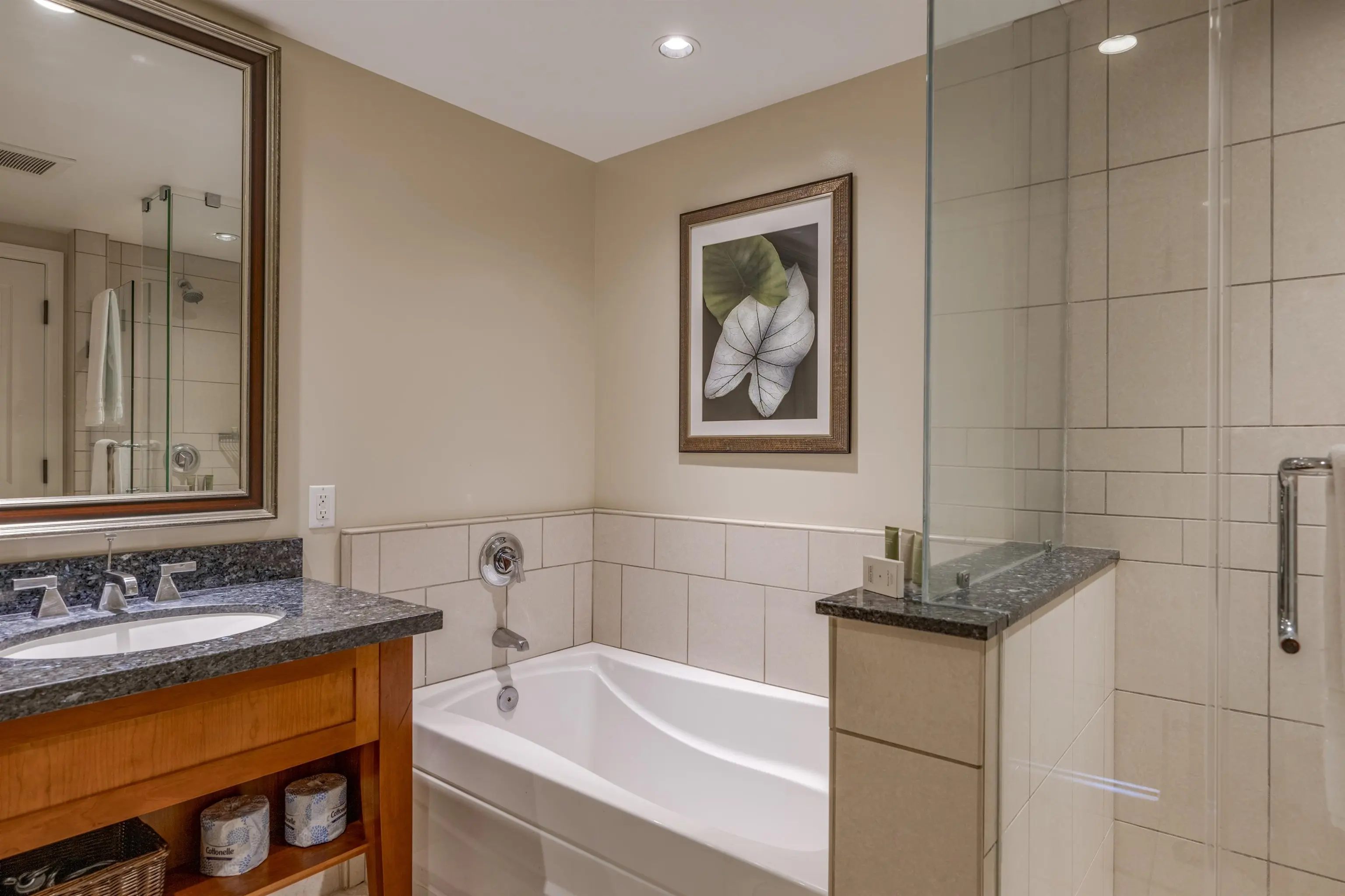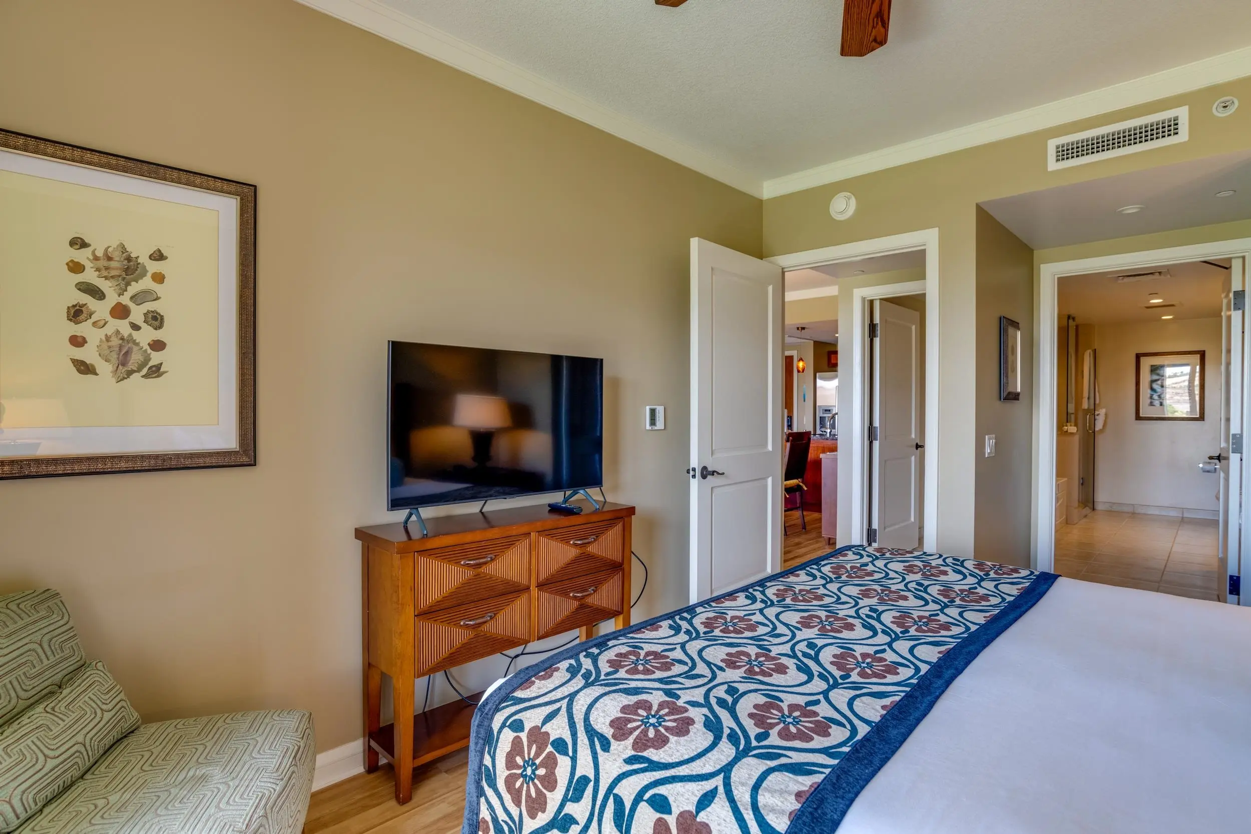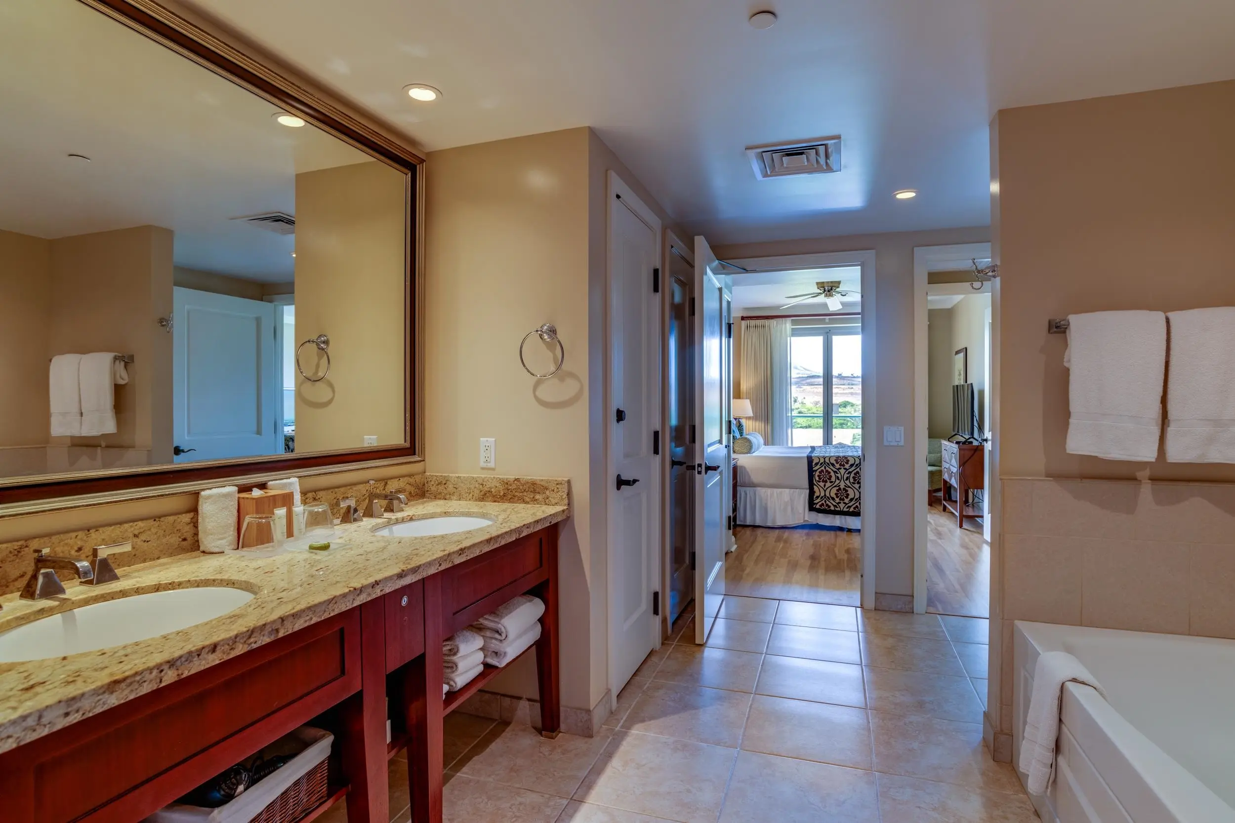 For your convenience, you’ll have access to the Honua Kai's fitness centers and spa, two restaurants, concierge and beach equipment rental services, multiple hot tubs, and a 3-acre network of aquatic fun that consists of swimming and wading pools, fountains for children, a sandy beach, and waterslide.