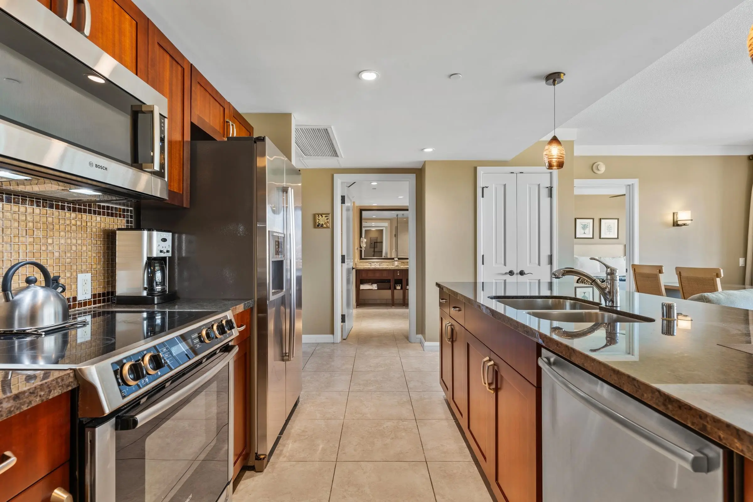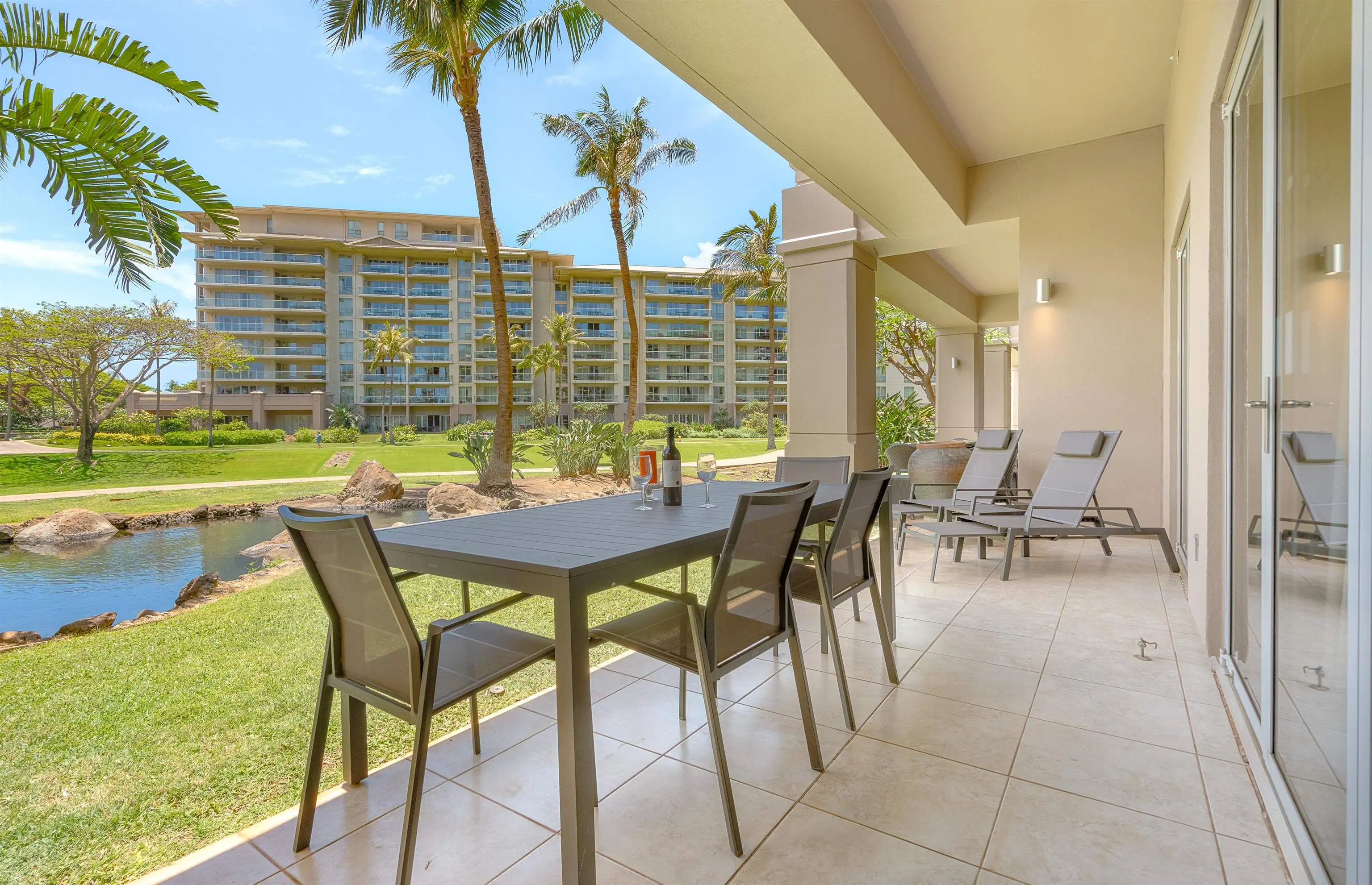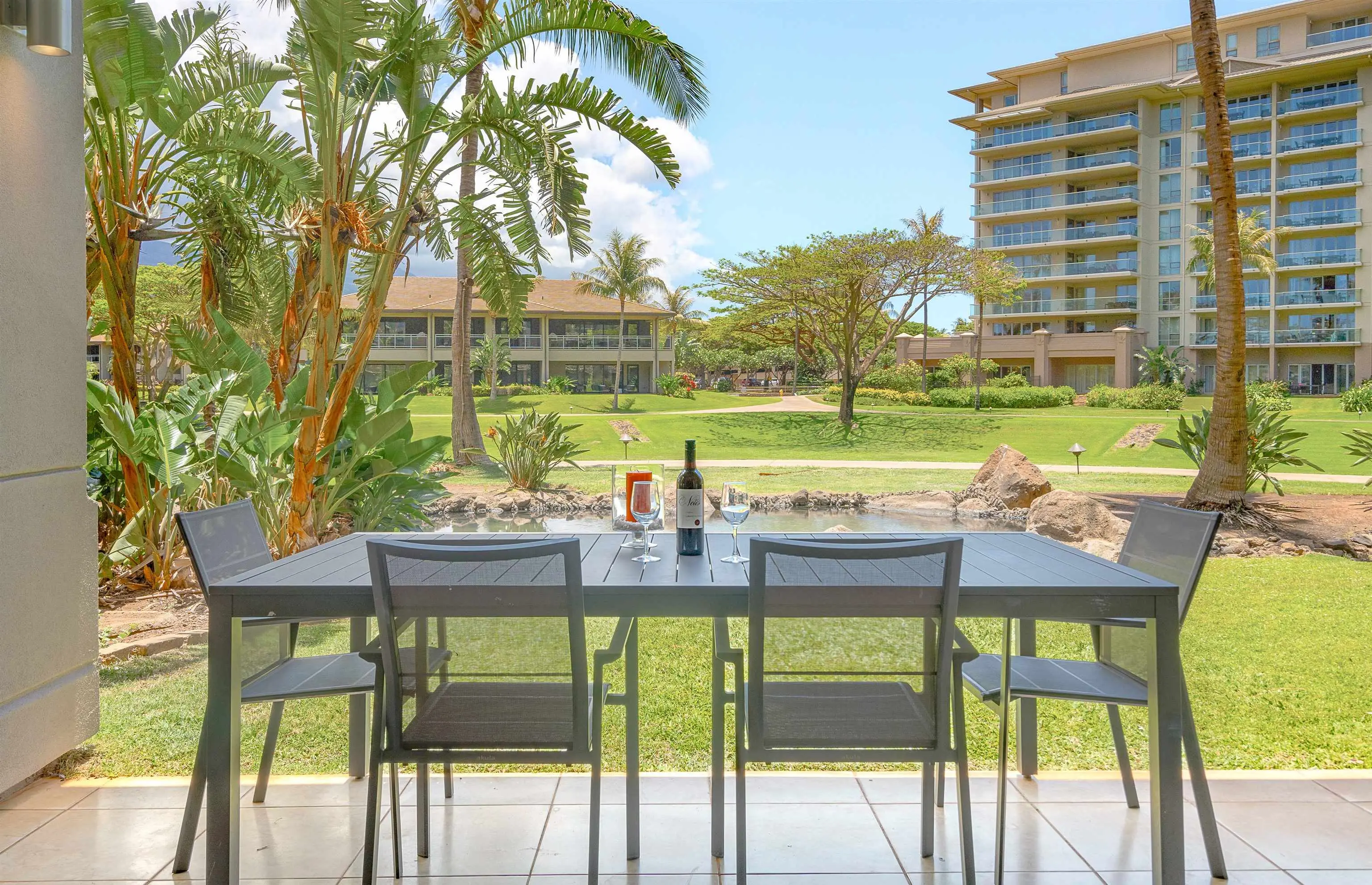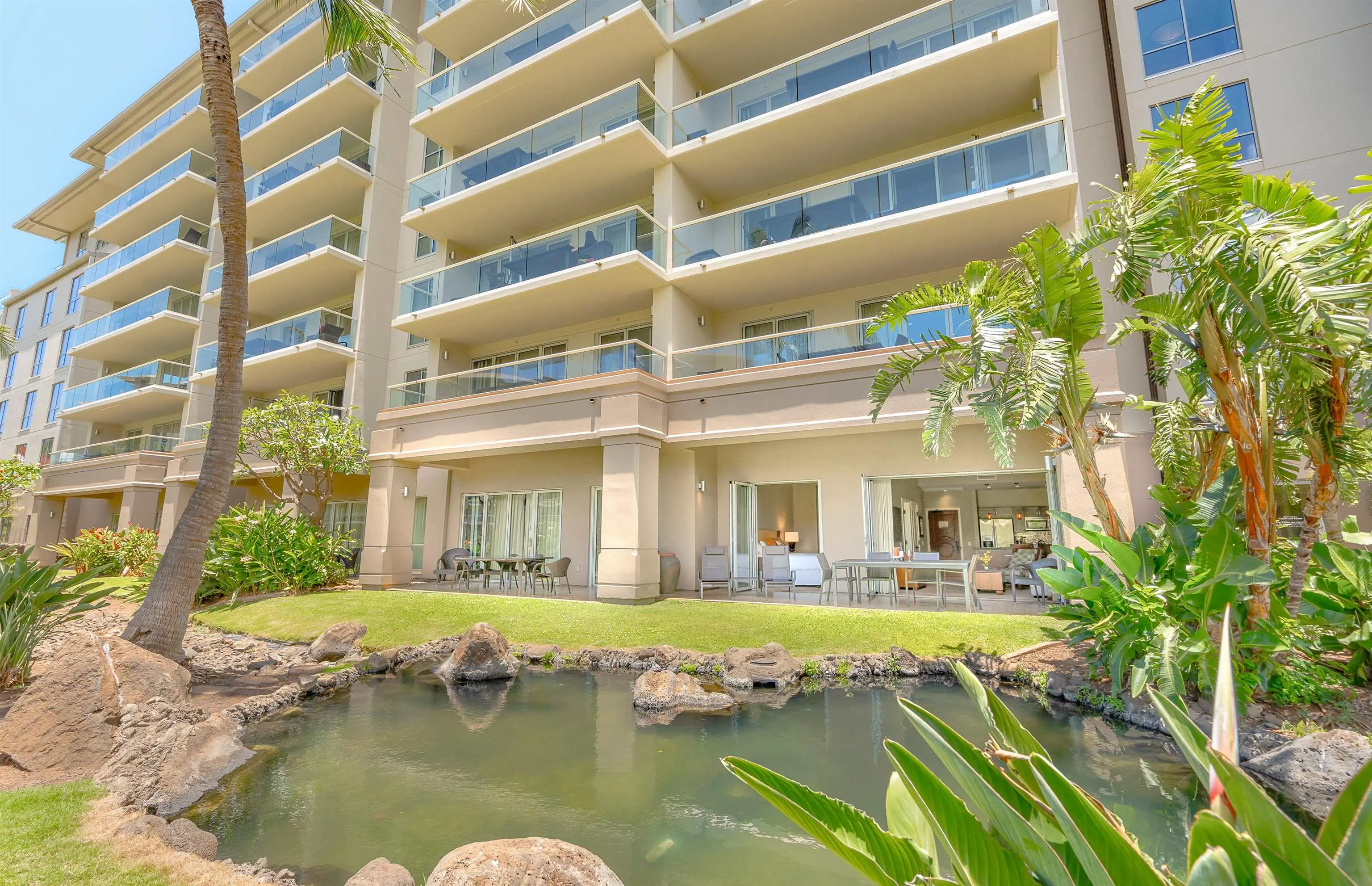 Each unit is air-conditioned, fully furnished, with private lanais, and complete with upscale gourmet kitchens that boast granite countertops and Bosch appliances. With linens and bath products provided, as well as laundry services, Wi-Fi, and coffee, you may never want to leave the privacy of your condo.