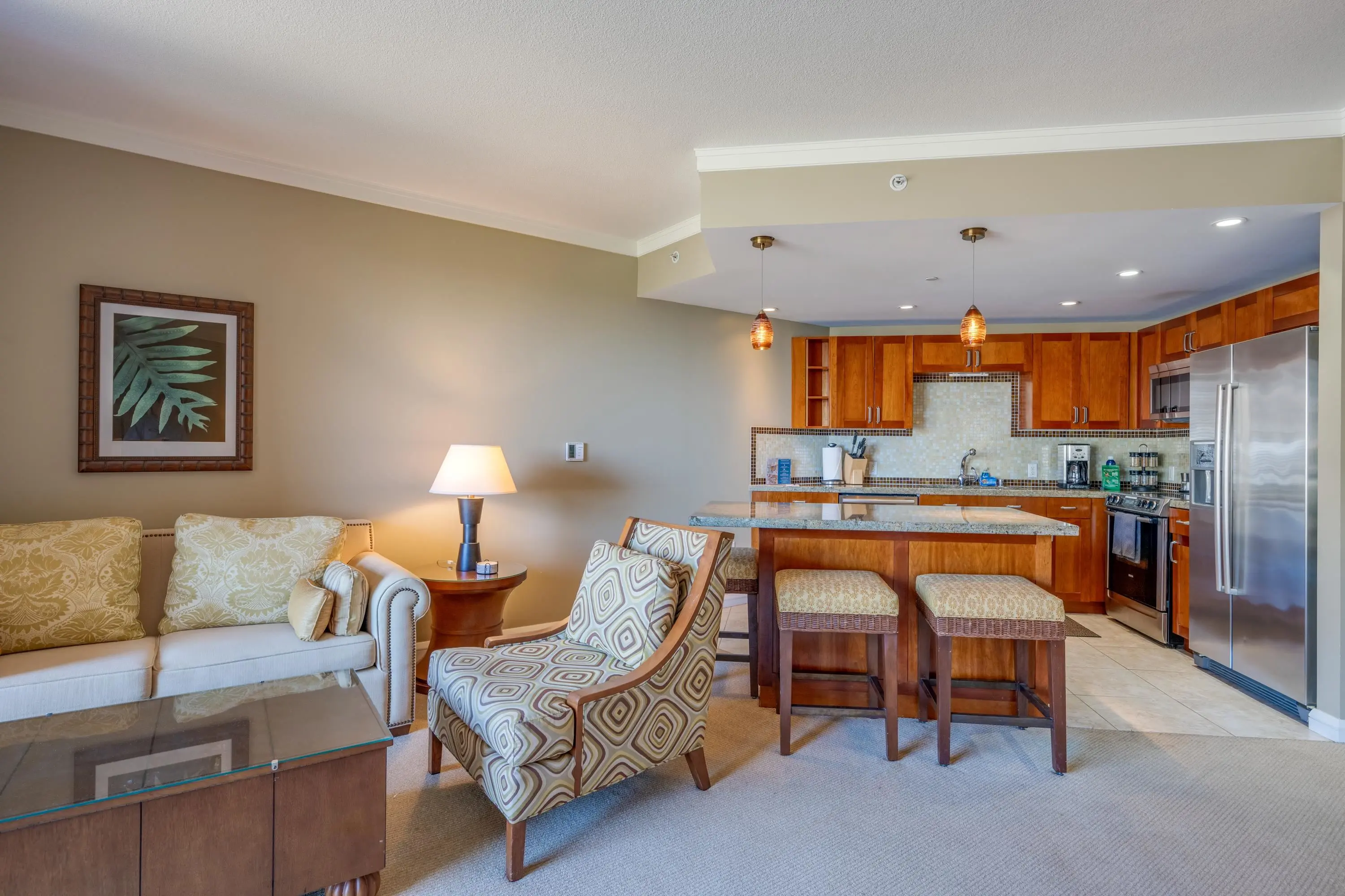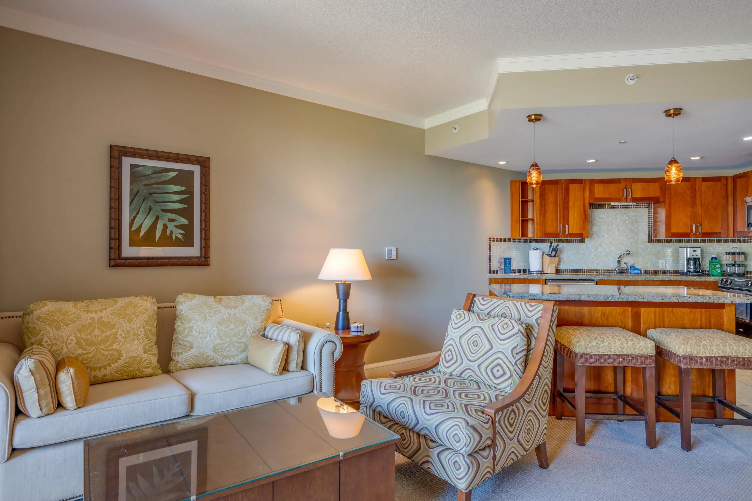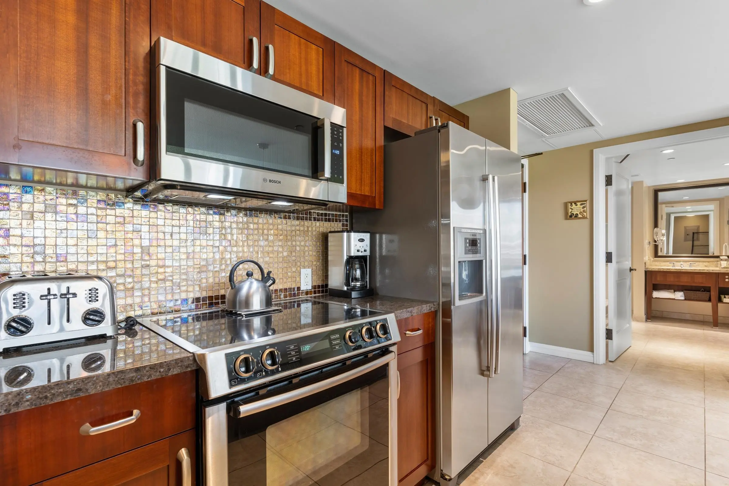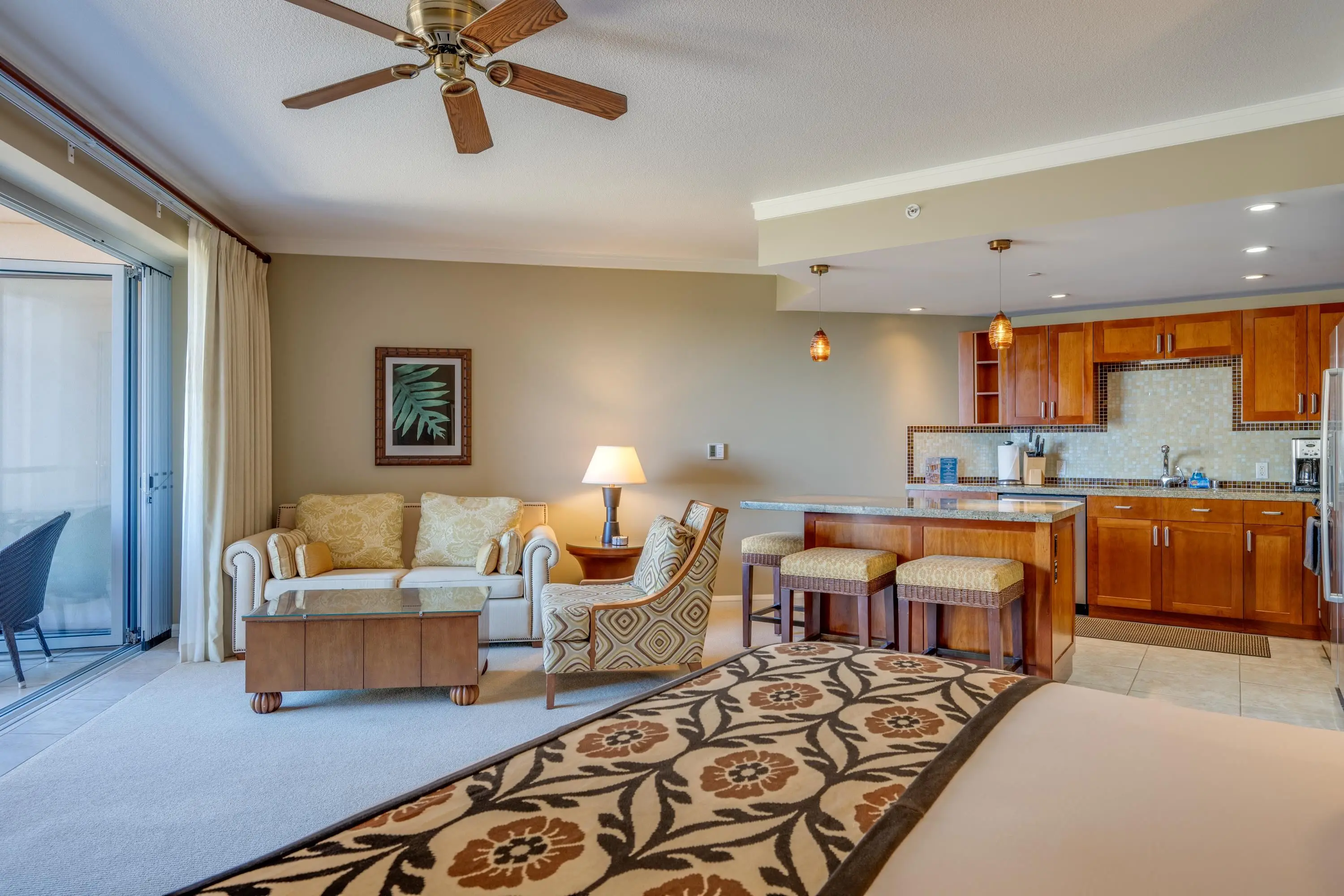 Each unit is air-conditioned, fully furnished, with private lanais, and complete with upscale gourmet kitchens that boast granite countertops and Bosch appliances. With linens and bath products provided, as well as laundry services, Wi-Fi, and coffee, you may never want to leave the privacy of your condo.