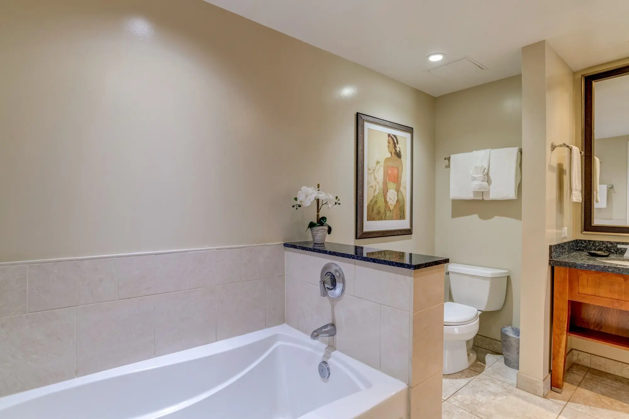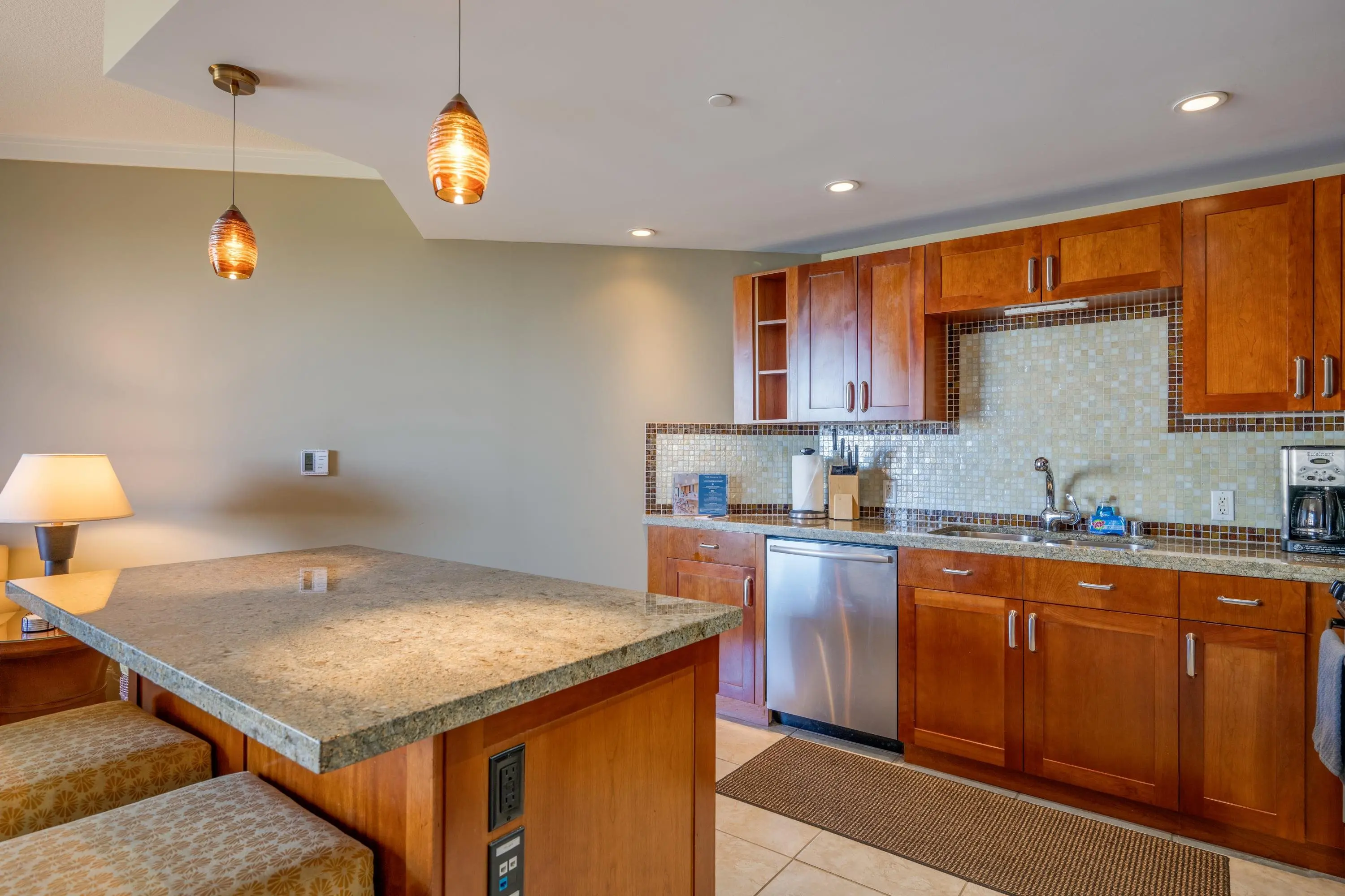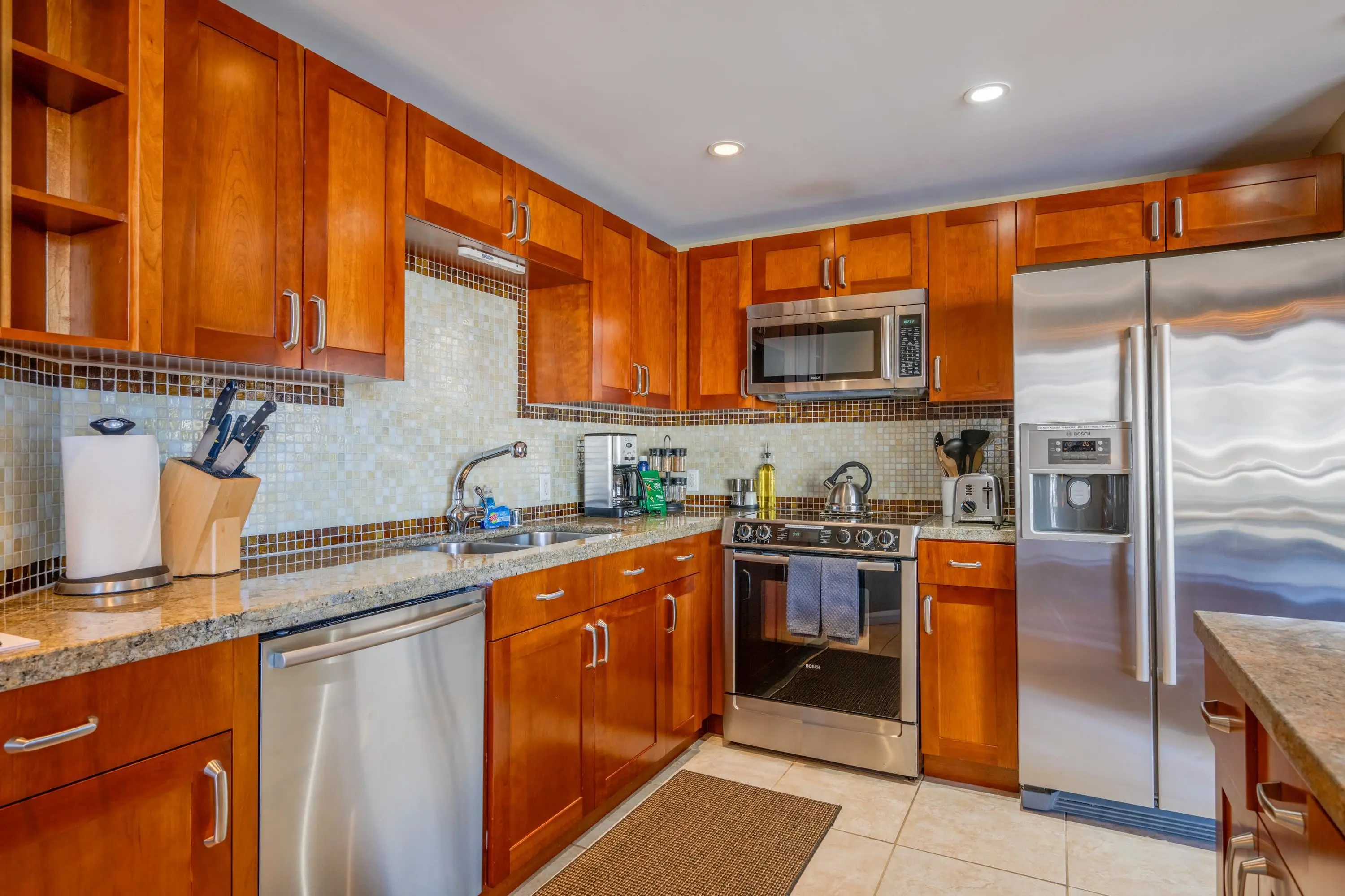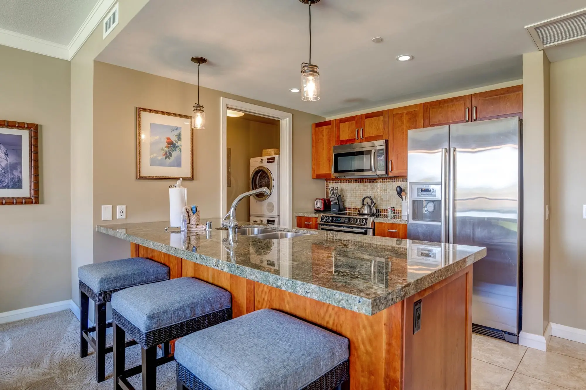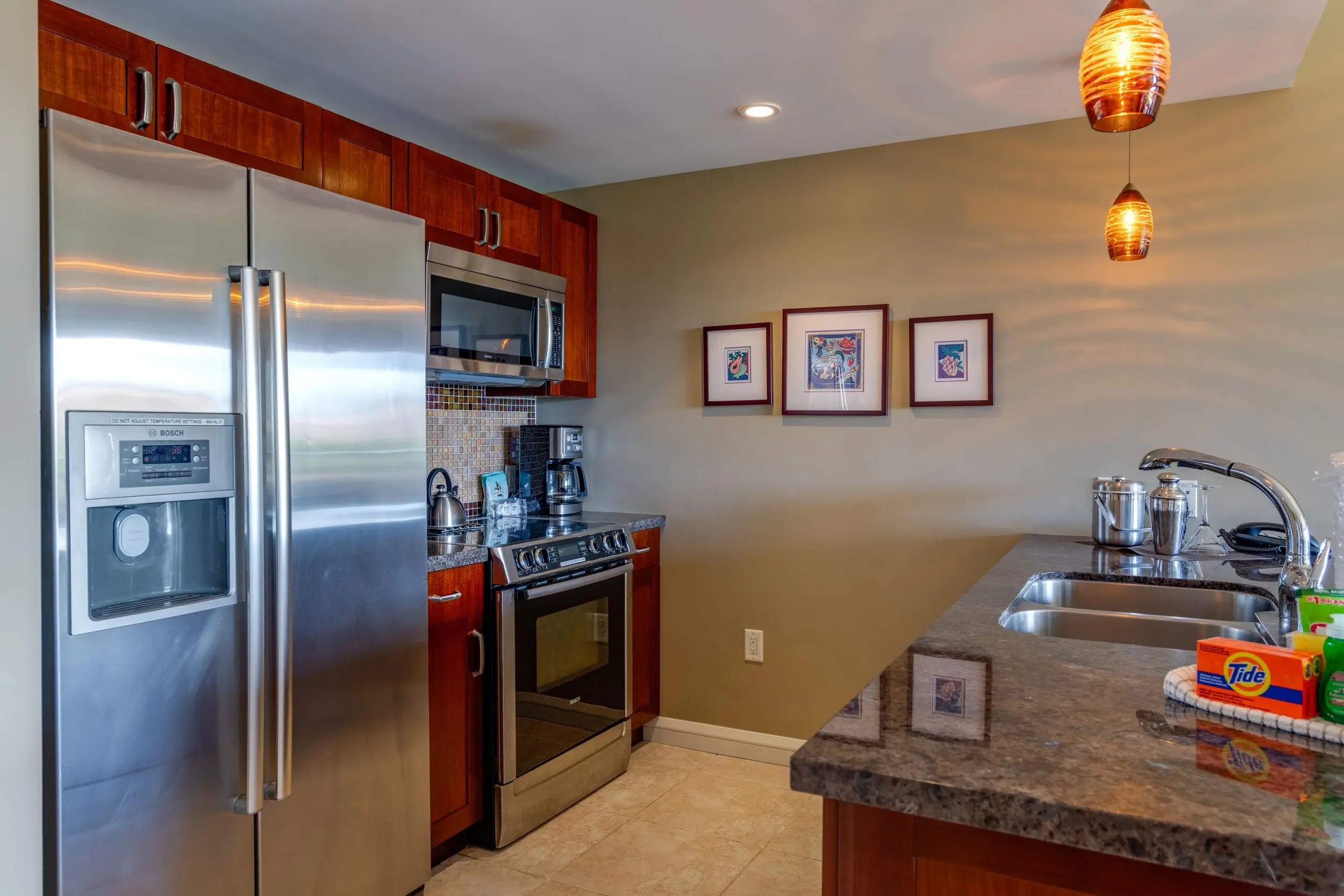 Each unit is air-conditioned, fully furnished, with private lanais, and complete with upscale gourmet kitchens that boast granite countertops and Bosch appliances. With linens and bath products provided, as well as laundry services, Wi-Fi, and coffee, you may never want to leave the privacy of your condo.