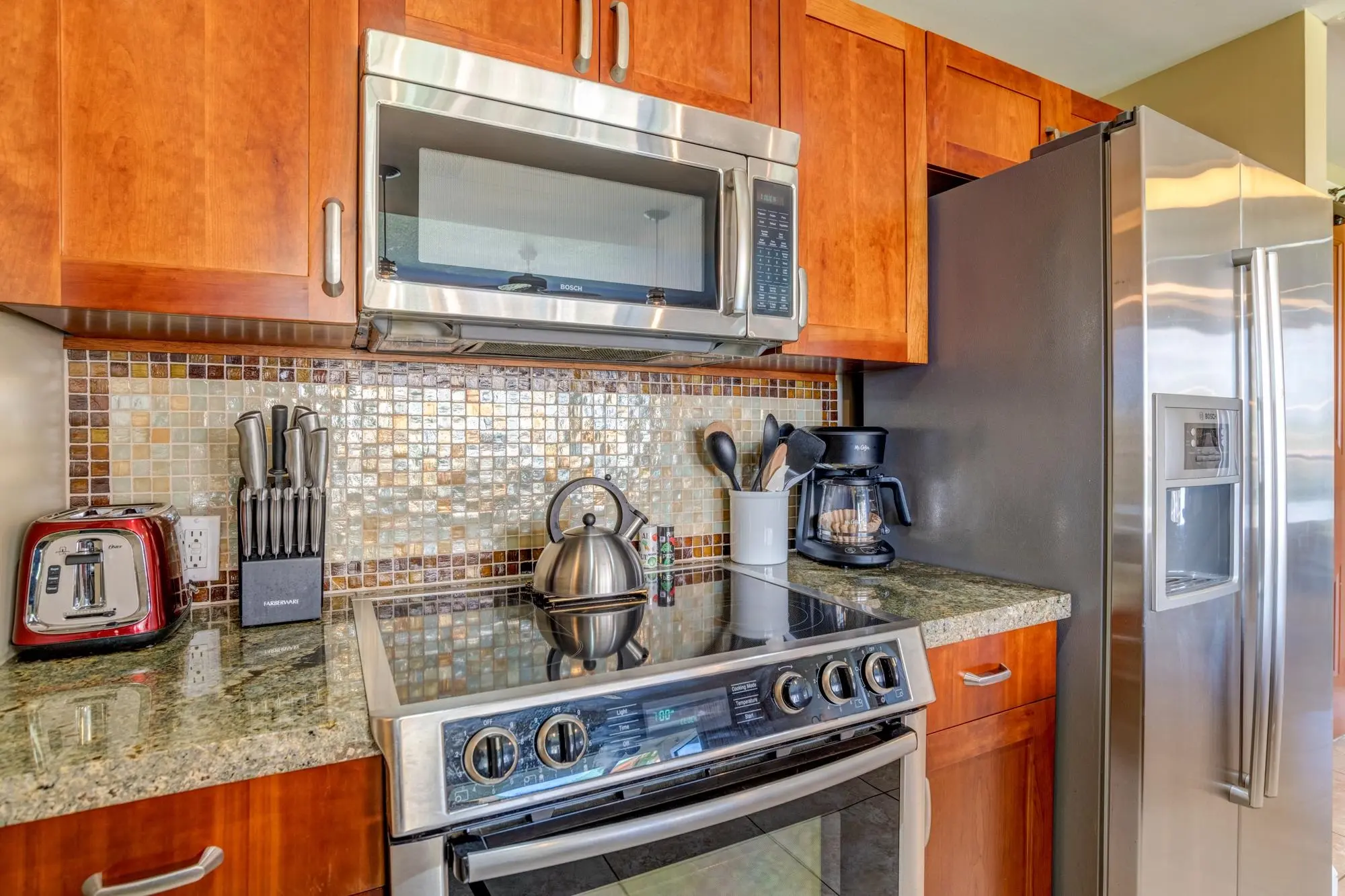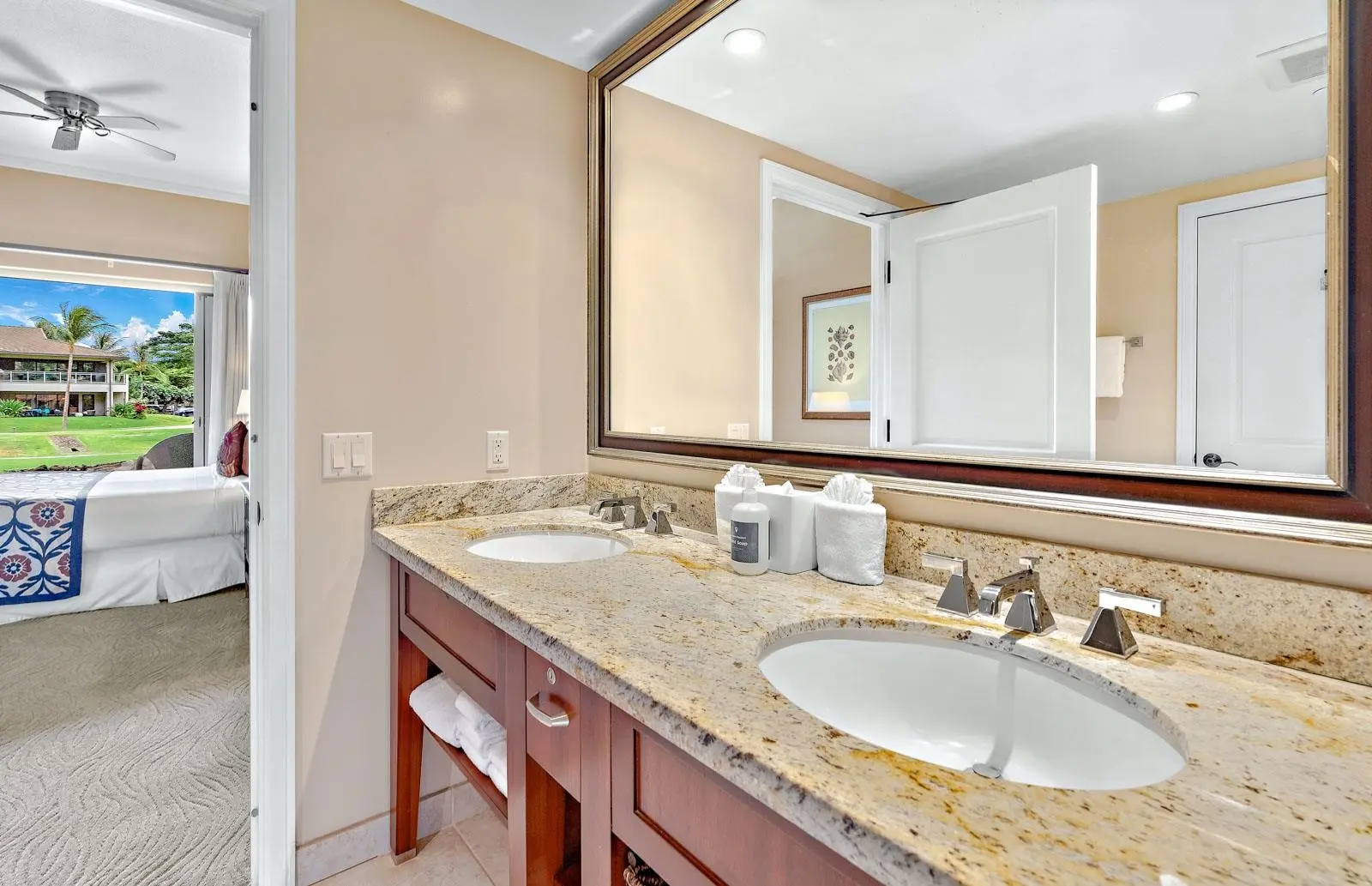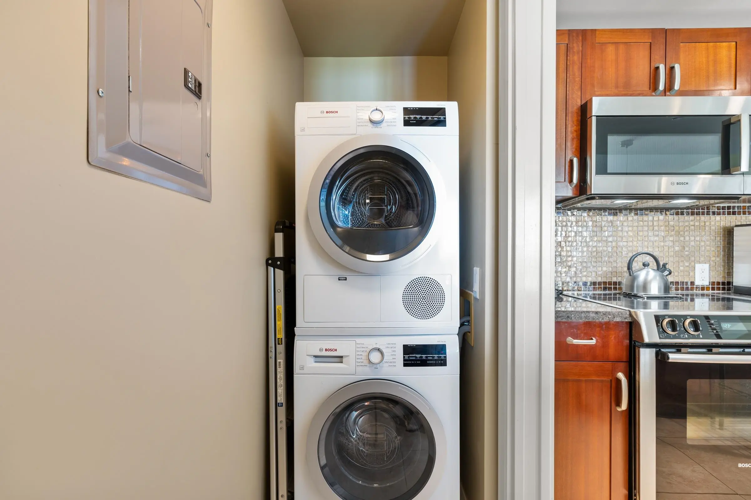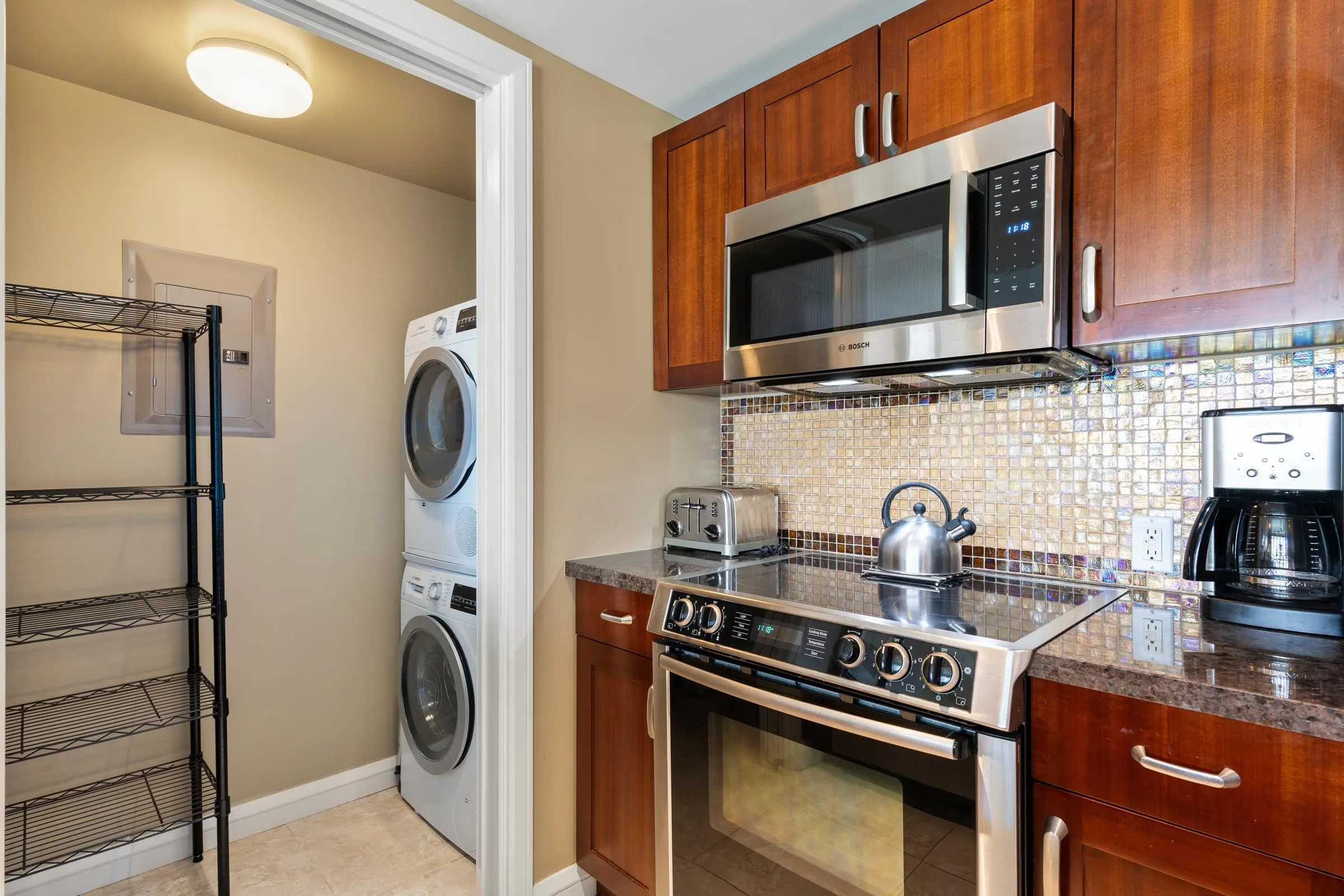 Each unit is air-conditioned, fully furnished, with private lanais, and complete with upscale gourmet kitchens that boast granite countertops and Bosch appliances. With linens and bath products provided, as well as laundry services, Wi-Fi, and coffee, you may never want to leave the privacy of your condo.