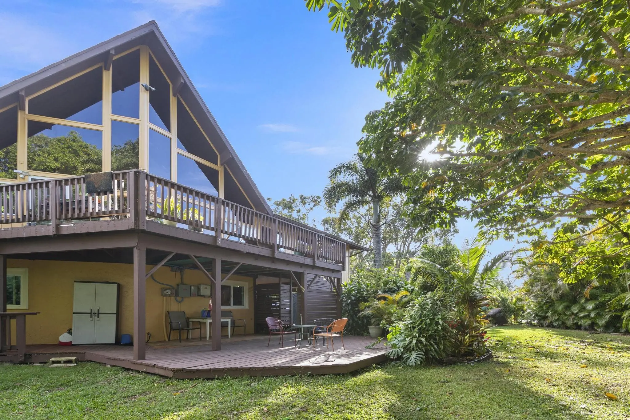 Enjoy this peaceful setting on Maui’s north shore. Instantly receive significant rental income! This 2-acre tropical oasis features a very private valley offering many mature fruit trees including lots of avocados, oranges, tangerines, lilikoi, lychee, bananas and flowers - an abundance of fruit to sell for more income. Located just 5 minutes from Ho’okipa Beach Park - a surfer’s paradise and close to schools, shops and restaurants within Haiku, Makawao and Paia towns. Much potential as family compound, retreat, farm, or all of the above. The A-framed Main house has a total of 7 Beds and 5 Baths, with a vaulted ceiling and loft. The extensive garage has been renovated and offers an entertainment area, laundry area, storage and meditation studio. The detached cottage’s upper floor has 1 Bed and 1 Bath with a cozy private lanai overlooking the serene valley below while the ground floor offers 757 s.f. of useful space to create your personal customized environment. Leased PV system keeps the power bill low. The 2 homes offer plenty of parking and an open grassy space to grow veggies or have a big sunny playground. So many possibilities in this wonderful very private protected spot. Everything is green and beautiful, a gardener’s dream come true. Contact your favorite Broker and book a private tour!