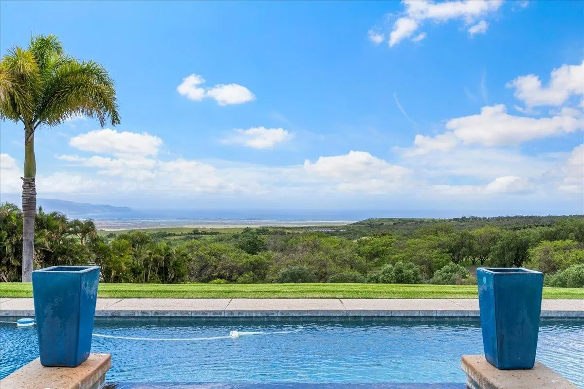Contemporary recently remodeled estate in exclusive Oma'opio Ridge. Picturesquely positioned in Kula on the lower slopes of Haleakala with idyllic location and elevation. This exceptionally manicured 5.01 apx acre property is offered completely remodeled and turnkey, boasting privacy, security, eco-friendly upgrades, and unforgettable bi-coastal views! Modern two story home and detached 3 car garage that features open flexible floor plan and 5,820 apx sqft of indoor/outdoor Hawaiian style living, plus a serene pool and spa! Property has been extensively remodeled throughout! Gourmet chefs kitchen featuring gorgeous new Carrera waterfall island, new iron cast pendant light fixture, new dishwasher, built in Bosch appliances, and Acacia hardwood floating shelves. The Ocean view Primary suite has modern custom sliding closet, new oversized chrome rainfall shower heads and hardware, new 84" custom glass door, new vanity, porcelain vessel sinks and chrome faucets, smart illumination mirror and Toto smart toilet. Luxurious new Acacia Hardwood flooring and porcelain tile throughout the spacious downstairs. Fully fenced estate is also upgraded with a new solar panel and keypad entry gate, established olive orchard, and a newly planted fruit tree variety orchard with garden beds. Benefit from the Eco-friendly elements including energy star appliances, upgraded AC, 42 panel PV system with 2.0 Tesla Power Wall, Covered Tesla Charging Carport and 2 additional Tesla Charging Stations in Garage. New security cameras and built in security systems. Water filtration system. Entire structure is freshly pressure washed and painted with low VOC paint inside and out. Unmatched elegance, cooler temperatures, and year round sunshine. Adjacent to all of Kula's array of shopping, dining, wineries, galleries, equestrian facilities, farmers market and natural beauty. This is the upcountry Maui home you have been looking for!