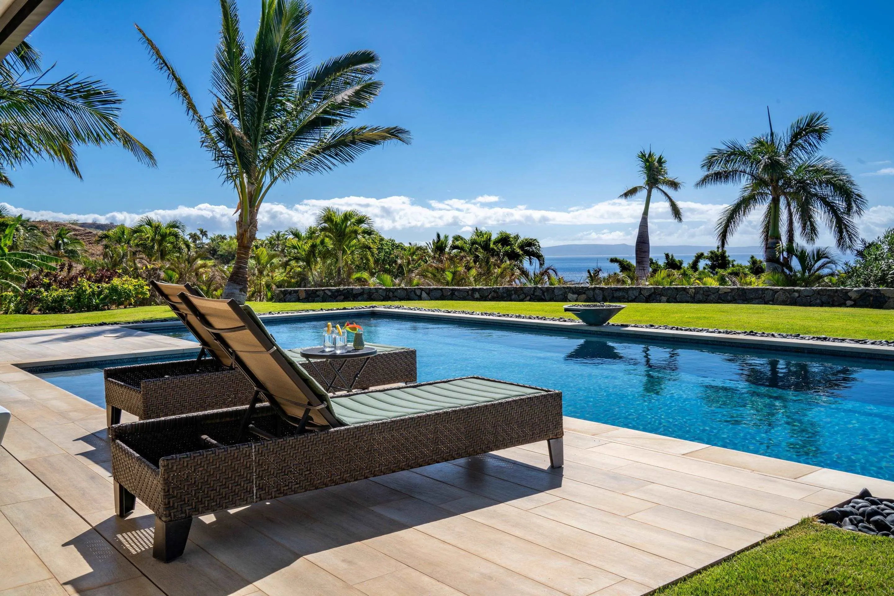 Experience modern luxury in this custom designed contemporary haven nestled in the prestigious Launiupoko neighborhood in the hills of the West Maui mountains. This newly constructed residence by Imaginite Builders is  994 sf, completed in 2021, is surrounded by 1.034-acres of land, offering privacy and tranquility. The property features a separate 315 sf casita by the pool, providing flexibility and a private retreat for guests or personal use as well as a 315 sf flex room and half bathroom bringing the usable space up to 1,624 sf. Another great feature that adds to the living area of the home is the massive 996 sf of lanai space with automatic sun shades that create an indoor-outdoor oasis. The 60 ft lap pool offers the perfect setting for relaxation and entertainment with a sun shelf, regulation lane lines and turn crosses embedded within the tile, firepit-waterfall bowls and a 7 ft deep end. This property is equipped with an oversized 2-car garage with an EV plug, an outfitted gym, high grade security cameras and lighting, automatic front gate, fully fenced acreage, and mature landscaping. This home is being sold fully furnished, all that's needed is a toothbrush to move in! Discover a seamless blend of modern design and island living, with an open-concept layout that invites natural light and indoor-outdoor flow. The gourmet kitchen features Subzero and Wolf appliances. Enjoy the serenity and security of the gated and fenced property with tropical landscaping, where you can savor the mesmerizing ocean views. Don't miss the opportunity to make this exceptional property your own. Schedule a showing today and elevate your island living experience at 151 Pua Nui Way.