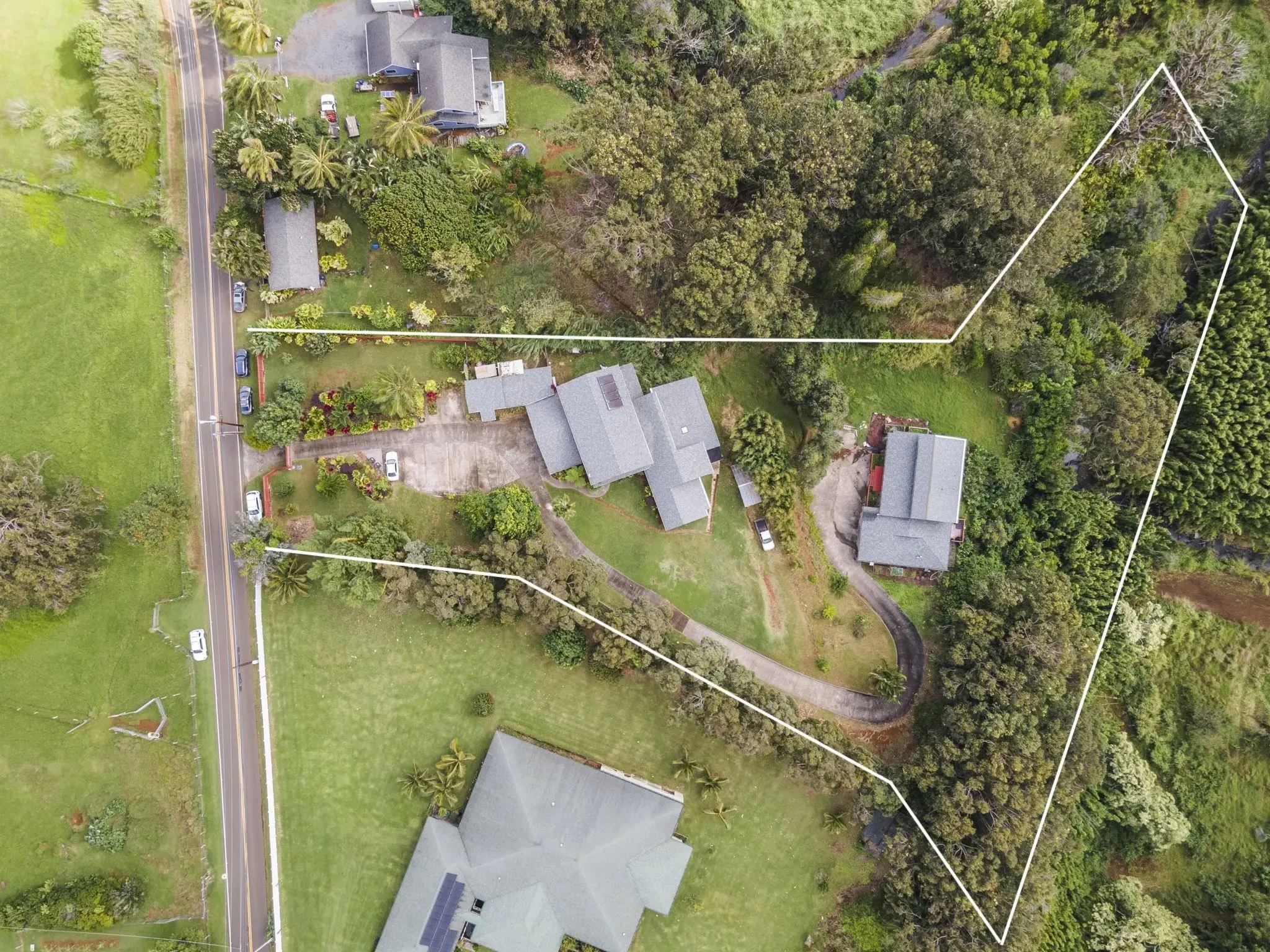 This is a truly unique opportunity in a highly desirable area of Haiku. Situated on 2.5 acres of pristine land lies 1515 Kaupakalua Rd, a special agriculturally-zoned property that boasts two large homes, majestic Haleakala & Ko'ola'u valley views with its own meadow + river flowing through. This property offers unrivaled potential as an investment opportunity, retreat, or family compound. Perched at the top of the property, lies the over 4,500 SF main home â surrounded by beautiful tropical foliage, the sleek entry gives way to open-concept living spaces, filled with natural light and equipped with high vaulted ceilings that invite you in. Truly limitless in potential, this home offers a flexible layout with a spacious 1,875 SF of living space on the lower level including 3 beds/2 baths , along with 1,250 SF of living space upstairs including an additional 3 beds /2 baths. On the left side of the home there is also a separate suite adjacent to the main living area offering a perfect space for visiting family or friends. At the end of the long winding driveway you will find the second home - A gorgeous 2 story residence offering nearly 2,200 SF of living space with 3 bedrooms and 2.5 bathrooms. Thoughtfully cared for, this home exemplifies true, serene Haiku living, with access to a back lanai + pathway that takes you to a secluded bamboo forest, enveloped with tropical flowers, and a gentle river. With serenity in mind, this home opens up to 20ft ceilings and a spacious, open-concept Great Room with a fireplace. Enjoy an opulent downstairs master bedroom and a spacious, private lanai that overlooks the valley below. To top it all off, the exceptional property is surrounded by an abundance of mature fruit trees such as avocado, lemon, mango, banana, and tangerine to name a few. Moreover, on both sides of the homes are vegetable and herb gardens, as well as a greenhouse. Located in the heart of Haiku, this property is just minutes from North Shoreâs best eateries, beaches and just a 30 minute drive to Makawao and Kahului. This is a truly unique opportunity offering endless possibilities.