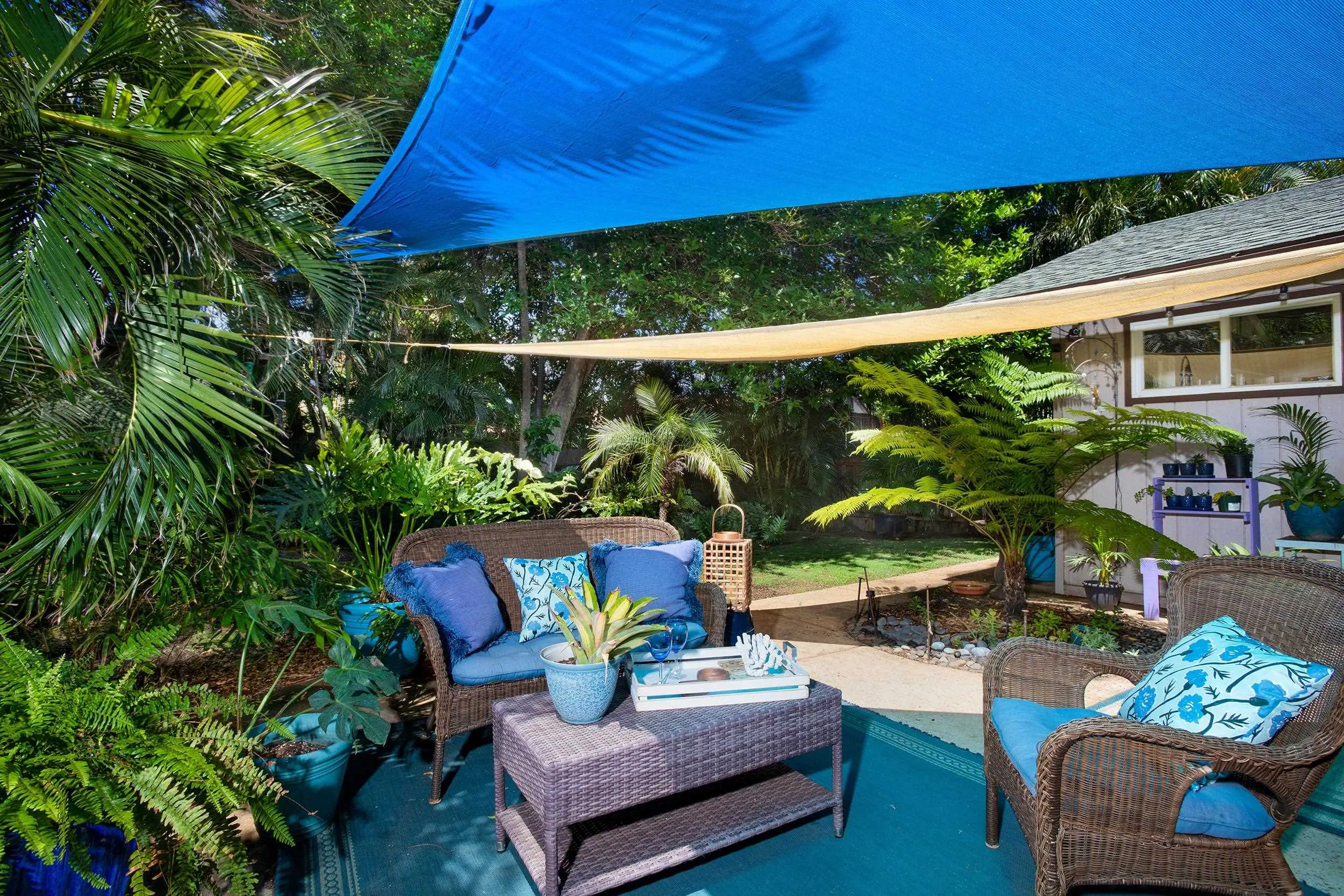 Welcome to this beautiful South Maui home! This desirable, updated 3-bedroom, 2-bathroom residence with an attached 1-bedroom, 1-bathroom cottage, offers a blend of convenience and flexibility. The cottage features its own separate entrance and a dedicated washer/dryer, making it ideal for guests, extended family or rental opportunities. Enter into the open and inviting living room where high ceilings and skylights showcase the elegant wood details. The combination of travertine, engineered hardwood flooring and split AC, provides style and comfort throughout the home. The spacious primary bedroom has an en suite bath, large closet and a sliding door that opens to a backyard patio—an ideal spot to enjoy your morning coffee. The charming cottage has a lanai, perfect for enjoying the outdoor space. Take advantage of the yard space, adorned with vibrant flowers and lush vegetation. A pond and with a water feature further enhances the pleasant ambiance. There is also a photovoltaic system for energy efficiency and a two-car garage for convenience. Take pleasure in the nearby beaches, including Sugar Beach, Charlie Young Beach, Keawakapu Beach, and Kamaole Beach 1, among others. Satisfy your culinary cravings with a visit to South Maui Gardens, a local gem offering food trucks, entertainment, and more—all just a short distance away. Golf enthusiasts will appreciate the proximity to South Maui’s renowned golf courses.