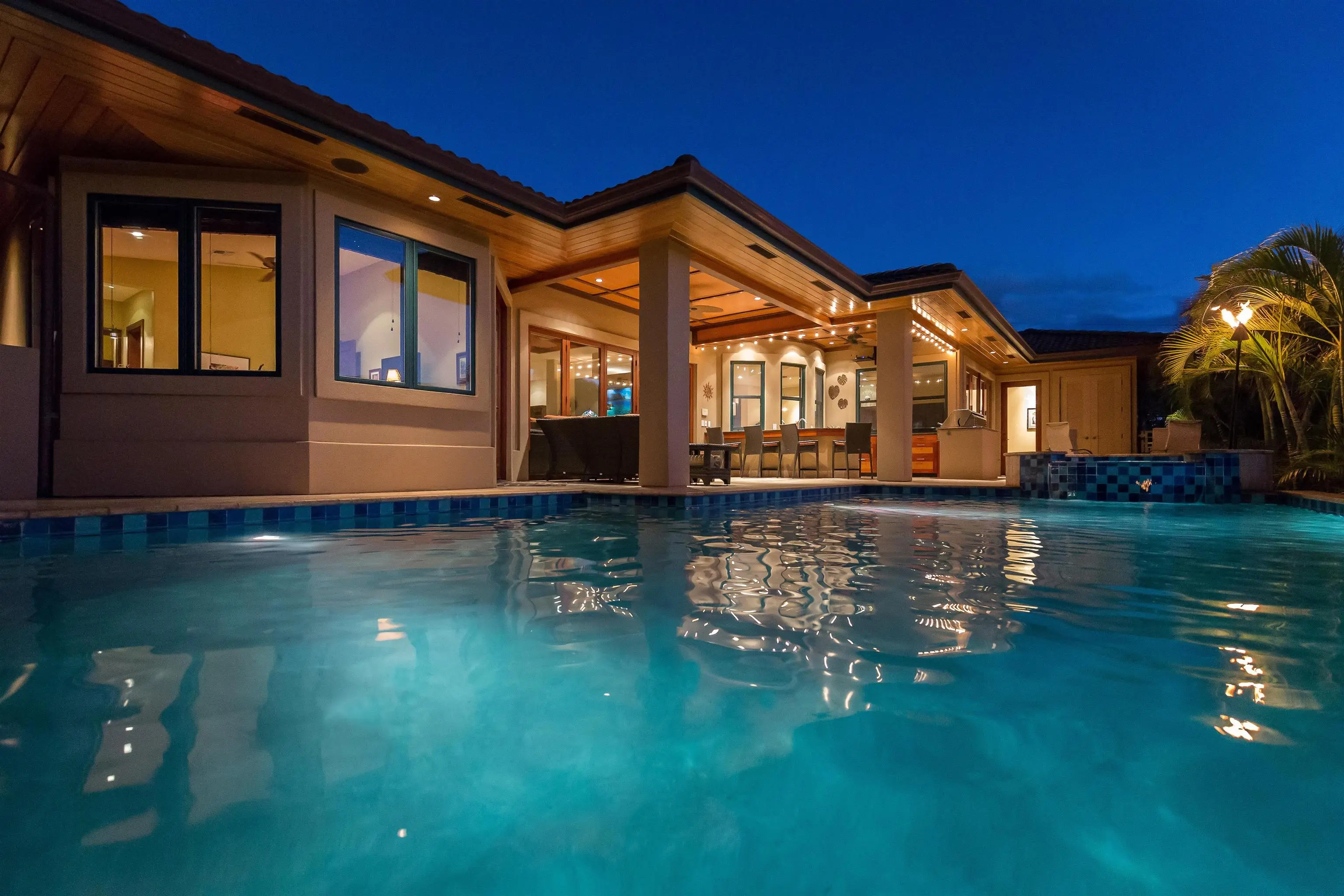 Breathtaking ocean views, this exquisite South Maui estate is perched at the cusp of Wailea and embodies the ideal blend of elegance, comfort and privacy. Live your best Maui life as you unwind in the private heated pool and spa, or entertain guests in the outdoor cabana complete with an open outdoor grilling area, kitchen and breakfast bar. Bask in refined island-style, luxury-living in this stunning four bedroom, four bathroom home, nestled on a gated cul-de-sac in the prestigious Kilohana community. Meticulously crafted high-end finishes include African ribbed mahogany cabinetry, elegant travertine floors, soaring 10-ft ceilings, and 8 ft exotic wooden doors. The gourmet kitchen is an entertainer’s dream boasting granite countertops and top-of-the-line appliances including a smart refrigerator, sleek electric cooktop, sub-zero wine chiller, double ovens, microwave, dishwasher and instant hot water. Luxury meets sustainability as the home also features a 36-panel owned PV system, 120-gallon solar hot water heater and whole-house water filtration system ensuring energy efficiency and eco-conscious living. Stay cool year-round with a newly upgraded central air conditioning system and enjoy the convenience of a central vacuum system. Bonus features throughout! Just moments to Keawakapu Beach, dining, and shopping, this home offers the ultimate in convenience and could be the perfect choice for your coastal island lifestyle. Professional photography and videography in the listing include footage from when the home was previously staged to showcase the intended use and true potential of the home - some features/fixtures that appear in the footage have been replaced/updated.