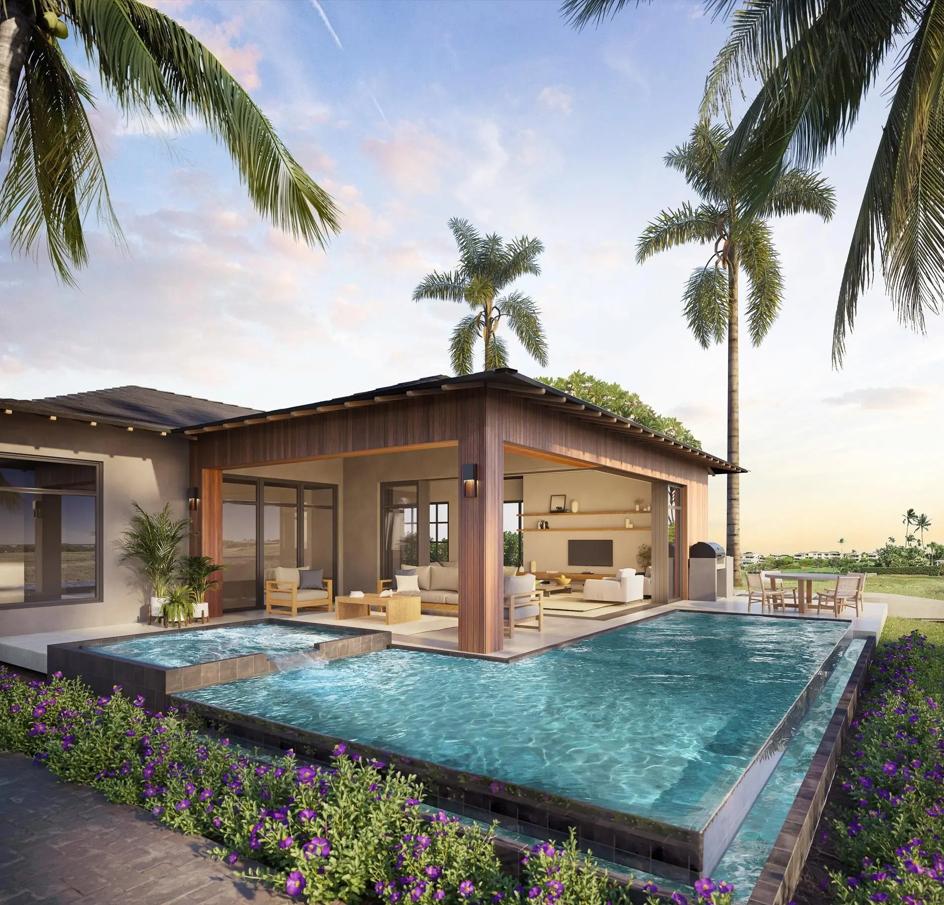 This 3-bedroom, 3.5-bathroom home features an open and airy floor plan of approximately ~3,103 square feet of interior space sitting on a ~13,386SF elevated ocean view lot, with distant views of Molokini and Kaho'olawe. A timeless color palette is surrounded by subtle textures and clean, contemporary lines while premium design elements such as quartz kitchen countertops and chrome fixtures elevate each home to a sophisticated place. Defined by a sliding window wall in the living room that leads to a spacious ~3,36SF covered Lanai and opens to a ~921SF uncovered Lanai, swimming pool and spa, this home embodies casual island elegance and seamless indoor/outdoor living. All punctuated by wide ocean views. This CPR'd 3-bedroom estate offers a spacious Primary Bedroom with double sliders to the lanai and pool also with ocean views. The en-suite bathroom features a distinct wet room with windowed shower and soaking tub and large walk in closet. The generous second and third bedrooms both have en-suite bathroom and private lanais for family members or guests. Clean lines and a bright, neutral color palette compose the sense of serenity found in the bathrooms, contrasting beautifully with the brilliant color and life found just outside. The oversized lot allow for a myriad of landscape options while the oversized two-car garage provides for plenty of storage for all your toys. A striking vanity with quartz countertops, Kohler undermount sinks, paired with porcelain tile floors and walls add a sublime touch of understated luxury to the everyday.