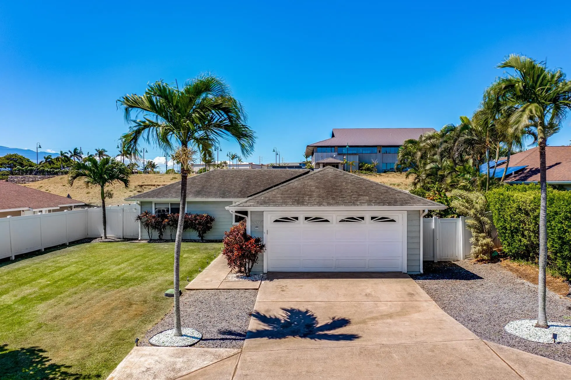 Welcome to Nanea at Kehalani, where you'll discover one of the best values in Wailuku! This move-in ready home is perfectly located in the heart of Wailuku Town, just a short walk from Kehalani Foodland, Long's Drugs, and the Maui Lani Village Center. Enjoy cool evening breezes in your private, fully enclosed back and side yards, ideal for entertaining. The home boasts an open floor plan with 3 bedrooms and 2 bathrooms, featuring high-end laminate flooring and tile throughout. Every room is equipped with split system AC, and the home is powered by 16 photovoltaic panels for enhanced energy efficiency. Additionally, the property includes a two-car garage, offering ample storage and convenience. Experience the finest of Wailuku living at Nanea at Kehalani!