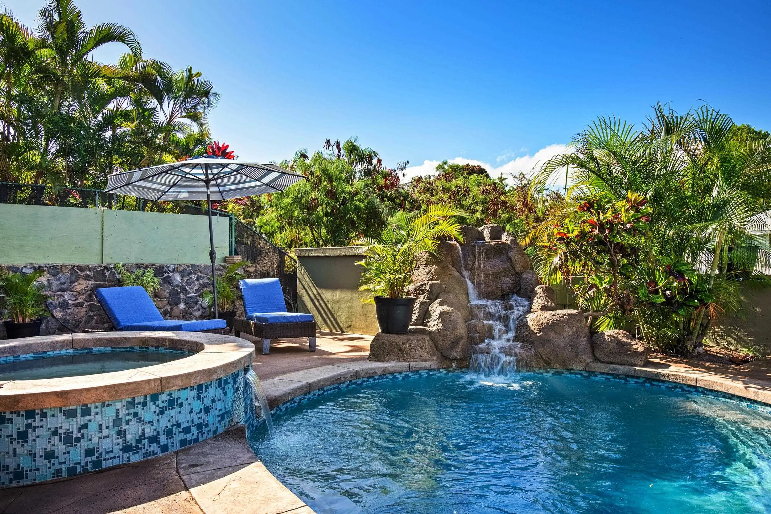 E Komo Mai – Welcome Home to Your South Maui Retreat. Discover resort-style island living at its finest in this beautifully remodeled 3-bedroom, 3-bath residence nestled at the end of a peaceful cul-de-sac in sunny Kihei. Thoughtfully designed with a split-level layout, this home offers a flexible floor plan perfect for entertaining and everyday living. The upper level features the main living area, while the lower level includes an additional bedroom, a family room and a bonus room currently used as an office—easily convertible to a fourth bedroom. Indoor and outdoor living blend effortlessly on both levels, with multiple lanais offering stunning views of Haleakala and the West Maui Mountains and beaches are just moments away. The crown jewel of this property is its private outdoor oasis, complete with a sparkling pool, tranquil waterfall, and a rejuvenating hot tub. The spacious outdoor kitchen is a host’s dream, featuring a BBQ grill, stove, sink, and refrigerator—ideal for sunset gatherings and weekend get-togethers. Sustainability meets convenience with 46 owned photovoltaic solar panels and an EV hookup in the spacious 2-car garage, offering both eco-conscious living and long-term savings. This exceptional home celebrates the Maui lifestyle—inviting you to relax, entertain, and create unforgettable moments. Just minutes from world-famous Kamaole Beach Park, this private retreat is your opportunity to live the Maui dream.