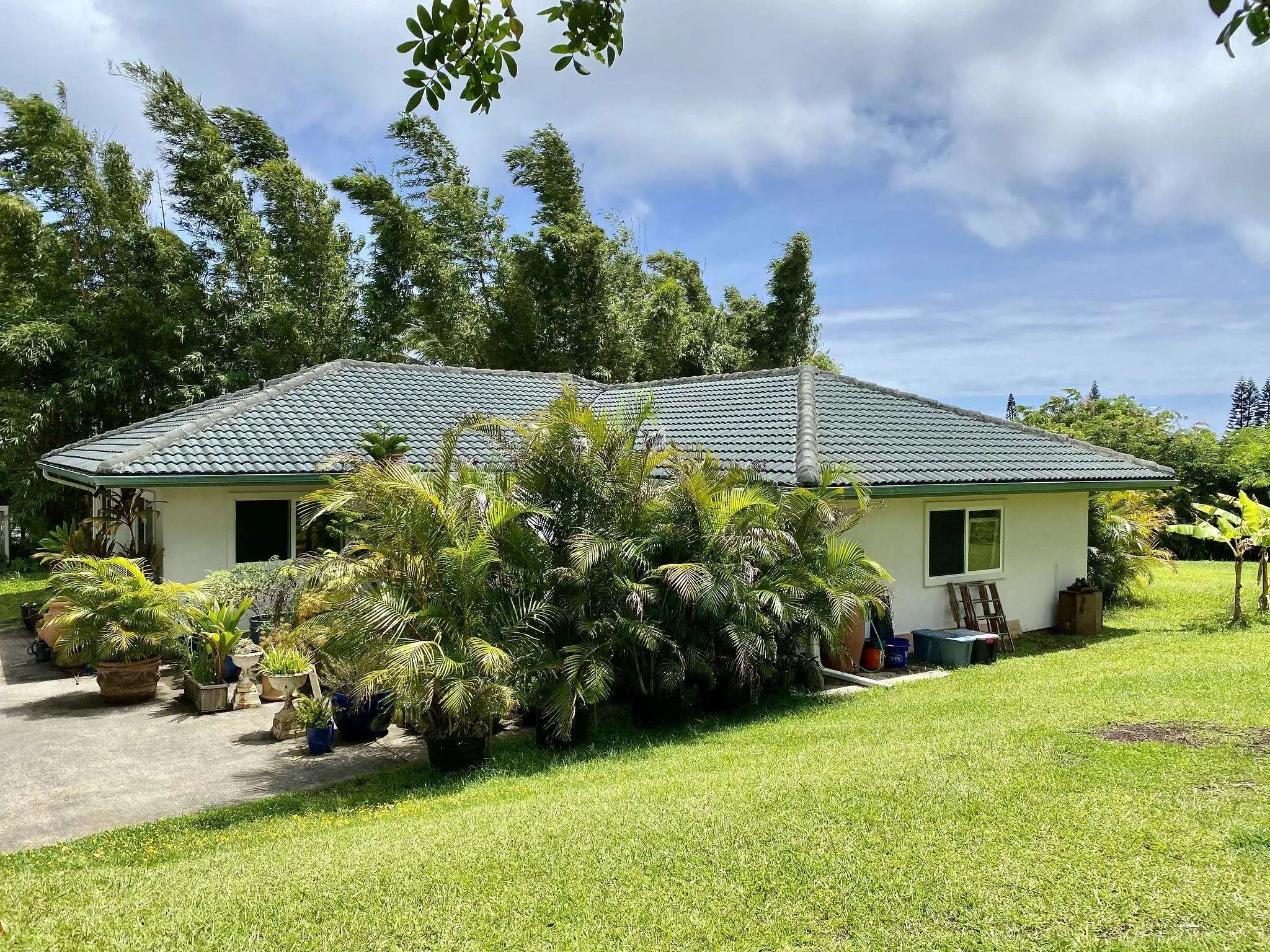 Haiku sweet spot! Lovely single level cottage with land in a great neighborhood, below the Hana Hwy in Peahi. Itâs not easy to find something this fantastic in the countryside. The 2bed/1bath home is like a sanctuary with lots of privacy and natural beauty. Soak in the outdoor tub under the gazebo surrounded by greenery. 9' ceilings, built in bookshelves, screened in lanai, air conditioning, gas range. Sellers have customized the kitchen/dining area with a beautiful stained glass feature window. Do you like the furnishings? They can also be purchased separately to save yourself the trouble. Move right in! The property is large, with .7 level acres to call your own, and 3 storage sheds including a workshop.Tile roof, stucco exterior for durability. Gardeners will love the tropical flowers, fruit trees, raised beds, and water barrels. This CPR cottage shares a water meter and septic system with the neighboring main house, but has its own driveway and rock walled entrance. An ocean view can be seen from the yard, with some tree trimming. The subdivision has a nice consistent quality of well built upscale homes, but NO HOA or dues. You canât go wrong with this location.