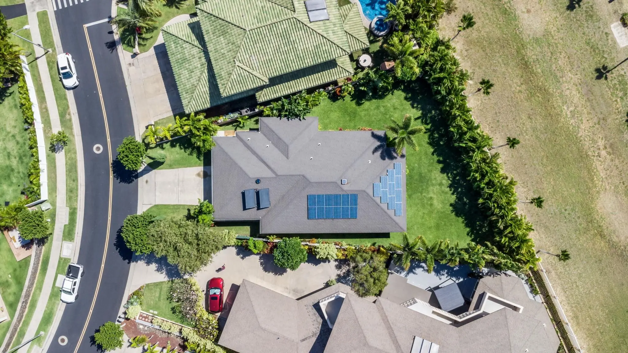 Spectacular single level living in the Islands at Maui Lani, a highly desirable master planned gated community in central Maui situated along the Dunes golf course. Favored for its close proximity to all of Maui's major amenities such as Hospital, Airport, public works, Costco, and a wide range of top shopping and dining options all within minutes away. This property is in the sweet spot of the neighborhood backing up to an expansive green belt along the perimeter for maximum privacy and an easy to access location. MASSIVE manicured yard with recently refreshed full irrigation system with amazing outdoor space for entertaining, a potential future pool addition or for the buyer who is looking for their own private oasis. This well maintained home boasts a recently updated central AC system, a fully paid leased PV solar system until 2035, and energy efficient solar hot water heating. This highly desirable well thought out 4 bedroom, 3.5 bath single level floor plan contains two master on-suites for maximum comfort for family and guests as well as a bonus bath off the spacious 2 car garage that is currently situated as additional entertainment space. This is the one you have been waiting for! Schedule your private showing today, this won't last long!