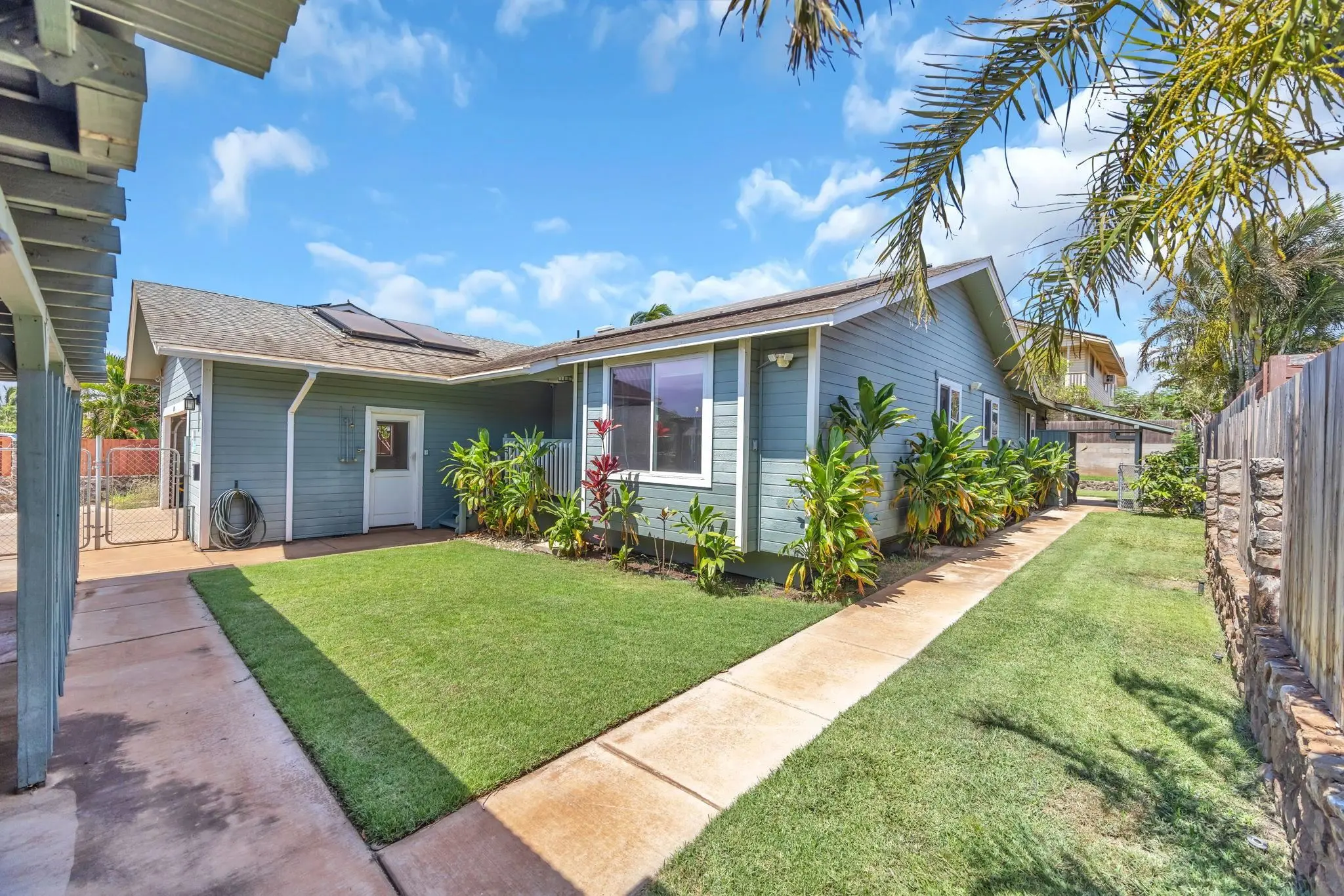Charming Hale Piilani home in North Kihei offers the perfect blend of comfort and convenience. The single-level layout ensures easy accessibility, while the well-maintained interiors are ready to move in. The 4-bedroom 3 bath home is currently configured as a 3-bedroom 2 bath main house, boasts central air conditioning, ensuring a cool retreat during warm Hawaiian days. The ohana unit with one bedroom one bath, with its own separate entrance, provides flexibility for extended family or rental opportunities. Step inside to discover vaulted ceilings that enhance the spacious feel of the open-concept kitchen and living area, perfect for entertaining or relaxing with family. The primary bedroom with an en-suite bath is perfect for added privacy. Outside, the enclosed yard is well-maintained and offers a private oasis. The property also features a 2-car garage and additional covered storage, catering to all your storage needs. An owned photovoltaic system and a sub-meter for the ohana's electricity make this home not only eco-friendly but also cost-efficient. This property is a true gem in a sought-after location on a quite private cul de sac. Don't miss your chance to make this welcoming home your own!