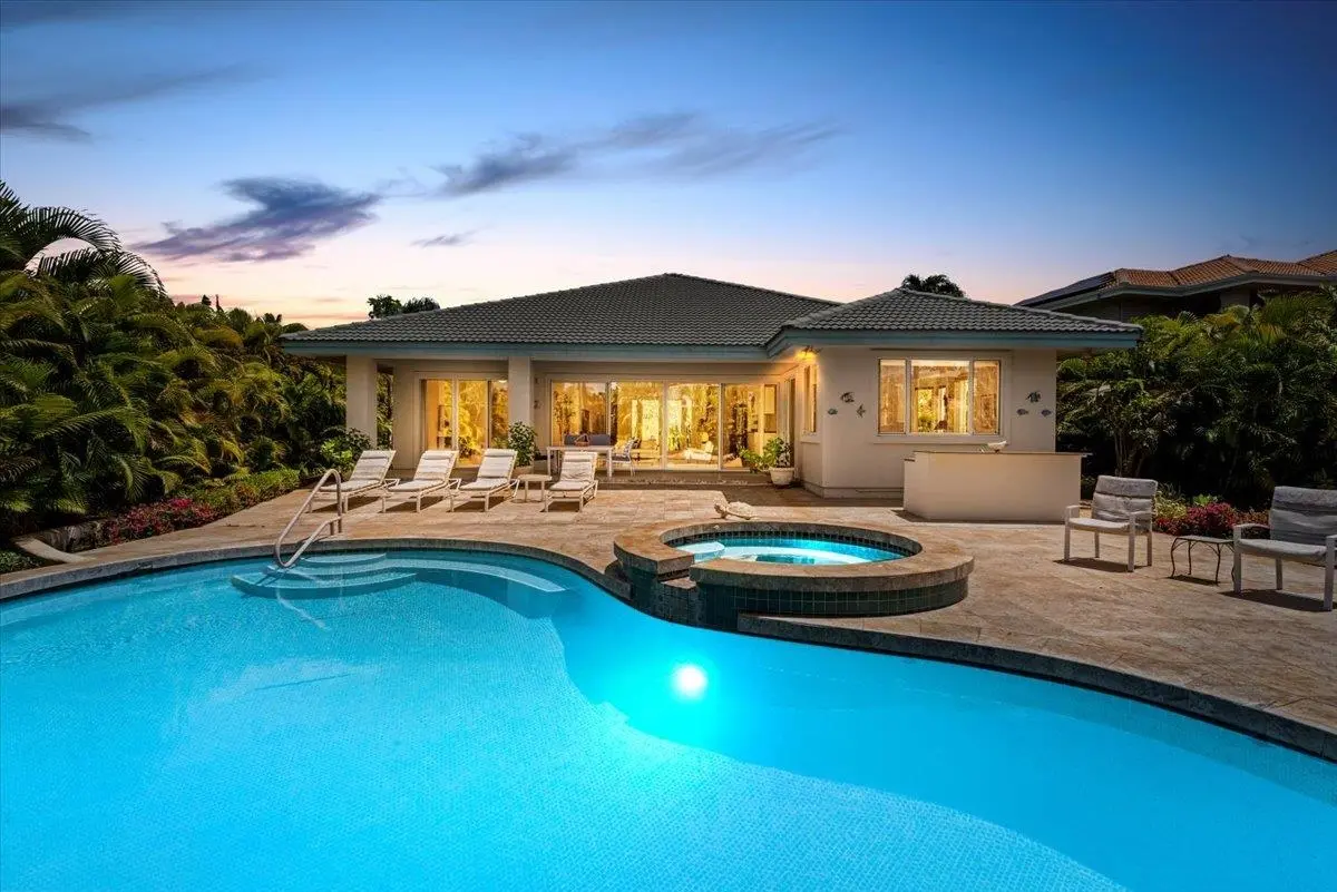 Welcome to the highly sought out neighborhood of Wailea Pualani! This stunning property offers a perfect blend of luxury, functionality, and the ultimate island lifestyle. Boasting 2 bedrooms and 2 bathrooms with an additional den/office easily converted into a 3rd bedroom, this spacious home caters to all your needs. The expansive 10-foot high vaulted ceilings create an open and airy atmosphere, while large windows bathe the interior with abundant natural light, creating a serene and inviting ambiance. Step outside to your private backyard paradise, complete with a pool and hot tub, perfect for unwinding after a day of exploring the nearby beaches and golf courses. The outside bar area is an ideal spot for entertaining guests and soaking in the tropical surroundings. With over 2600 square feet of living space and generously sized bedrooms, comfort is assured. The 2-car garage provides ample parking and extra storage space, ensuring a clutter-free environment. Located in a gated community, you can revel in the tranquility and security of your new home. Embrace the Wailea lifestyle, where the allure of Maui's breathtaking beaches and world-class golf courses are just moments away. This home is a rare gem, offering the perfect opportunity to indulge in the finest aspects of Maui living. Don't miss the chance to make this slice of paradise your own!