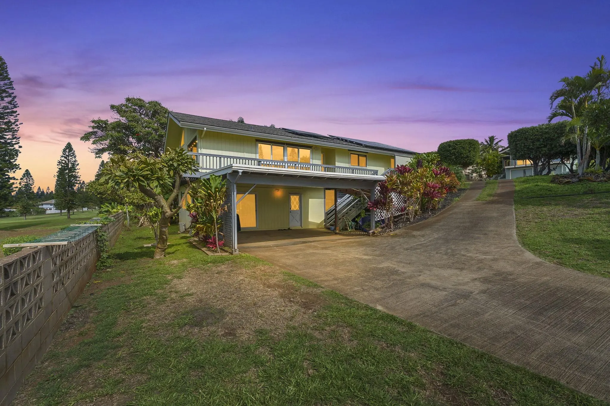 Nestled at a comfortable 1100 ft elevation you will find this Pukalani gem featuring breathtaking 180 degree bi-coastal views. Enjoy morning sips of coffee while admiring the first rays of sunlight greet the West Maui Mountains. After a long day, sit back and unwind watching the sun disappear into the Pacific Ocean. You won't want to miss this well maintained 3 bedroom, 3 bath, approximately 2,104sqft home with a flexible downstairs room featuring an en suite bathroom. Perfectly situated overlooking the 16th hole of the famous Pukalani Country Club, come and see this home today.