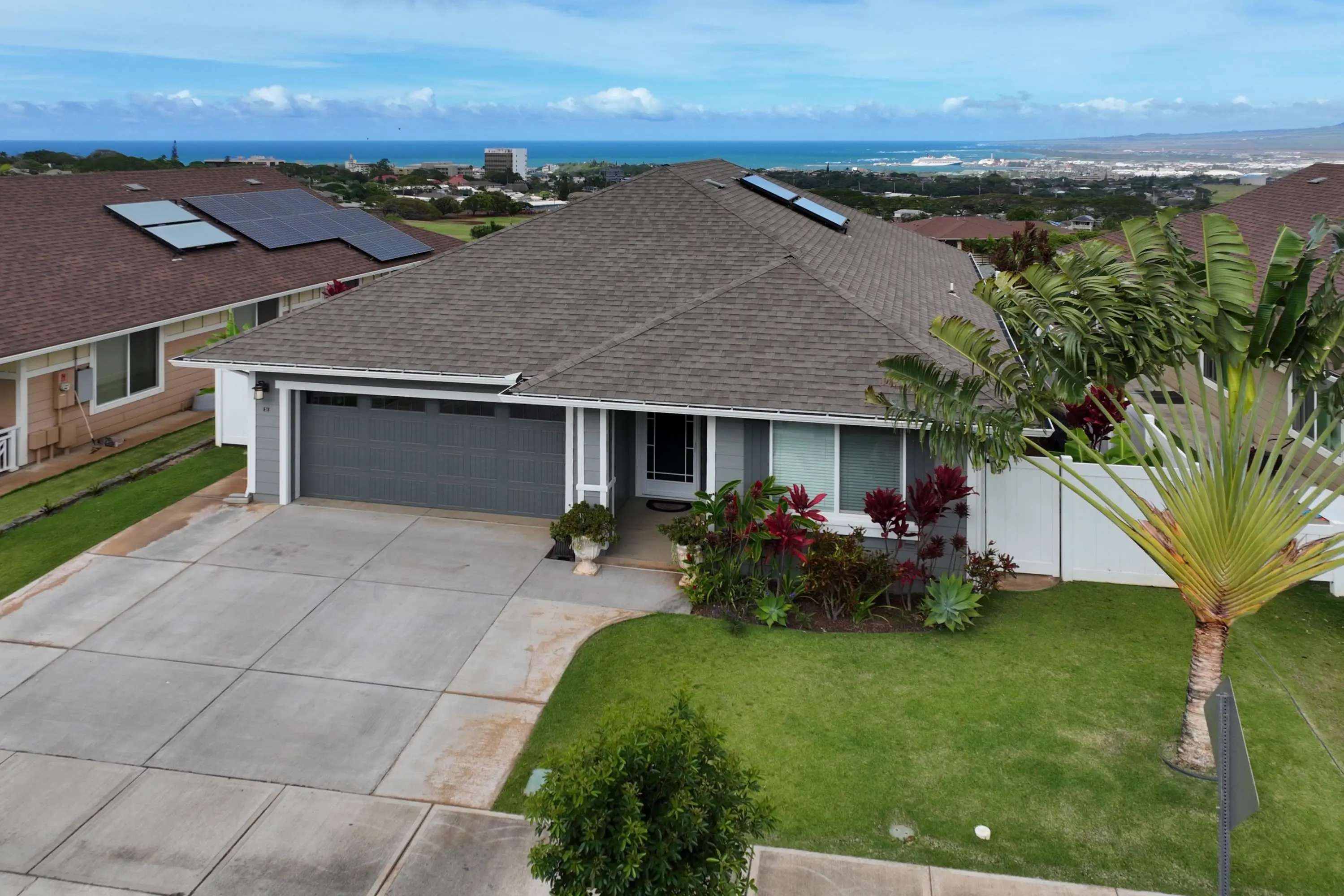 VIEWS! VIEWS!! Introducing an exceptional opportunity to own a slice of paradise in Wailuku. Nestled along the front row of Ke Alohilani is this stunning single-level home; three spacious bedrooms and two beautifully appointed bathrooms, all within 1,519 sqft of meticulously maintained living space that exudes the charm of a model home. Step inside to discover a bright and inviting interior, enhanced by brand new split AC units all new luxury plank wood flooring and modern appliances, including a refrigerator and dishwasher purchased in April 2025. The freshly painted exterior and thoughtfully landscaped yard create an appealing first impression that welcomes you home. Prepare to be captivated by the unobstructed views of the ocean, Haleakala, West Maui mountains and the vibrant city below—perfect for those tranquil mornings or sunset gatherings. The fully fenced yard offers both privacy and security, while the covered lanai beckons you to entertain friends and family amid the beauty of the Hawaiian landscape. With all furnishings and wall art negotiable, you have the chance to personalize this beautiful space to match your style. And with immediate occupancy available, you can start enjoying your new life in this serene setting without delay. Don’t let this incredible opportunity pass you by to experience the magic of island living!