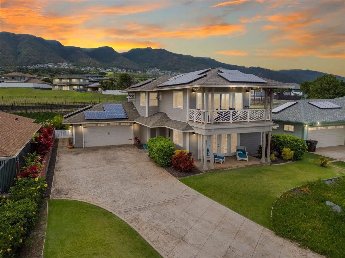 Experience Waikapu Living, in the beautiful and highly sought after Waiolani Mauka Subdivision. The best of all worlds, peaceful country living with all the conveniences of Central Maui. This executive home features a great room, kitchen, primary bedroom and one of two large Lanais on the second floor with breathtaking ocean and mountain views. Offering two additional bedrooms and a cozy additional family room downstairs, the home is bright and airy with 9’ ceilings encompassing nearly 2,000 square feet of luxurious living space. Including a one bedroom one bath attached PERMITTED ohana. The ohana comes with it's own electric meter, washer and dryer, split AC unit, hot water heater and private side entrance. Embrace sustainable living with a fully owned 34-panel PV system complemented by 2 Tabuchi back-up batteries and dedicated EV charger ensuring energy efficiency and independence. Stay comfortable year-round with 3 split AC units thoughtfully installed throughout the home. Custom built deck and backyard bar with a hot tub for outdoor enjoyment. Don't miss this opportunity, schedule your private tour with your favorite realtor today!