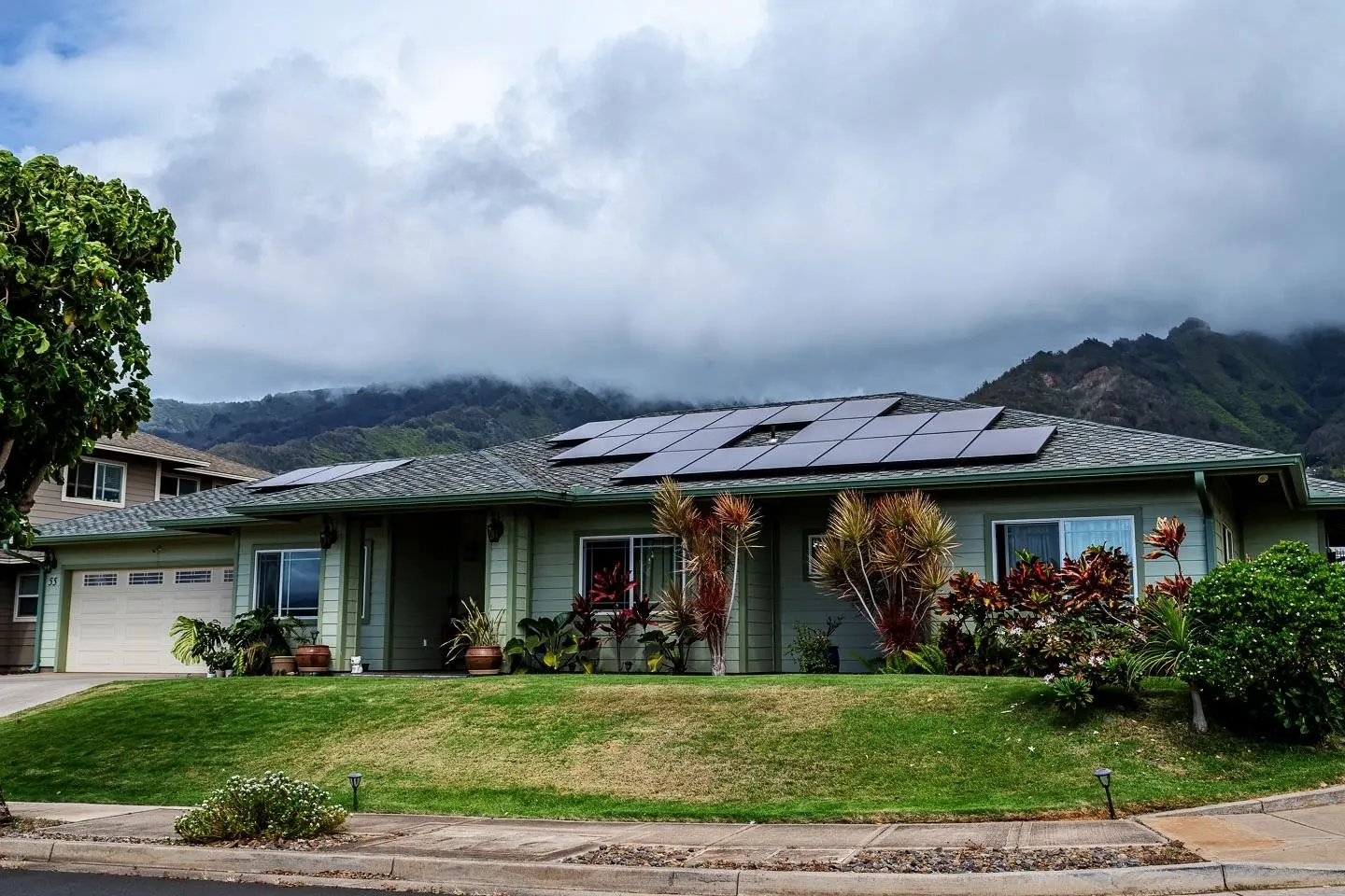 Rare offering in Waikapu, Waiolani Mauka subdivision. Newer custom single level home built in 2017. High 9' ceilings, stainless steel appliances and recessed lighting. Large garage, plus laundry room and patios, adds up to more than 2600 sf under the roof. Mitsubishi split air in living room and ceiling fans throughout help to keep the home at a comfortable temperature Pre-paid 25 year leased photovoltaic installed in 2021 with Tesla Powerwall . Grass in front and low-maintenance synthetic turf in the rear patio area. $52/month HOA fee.