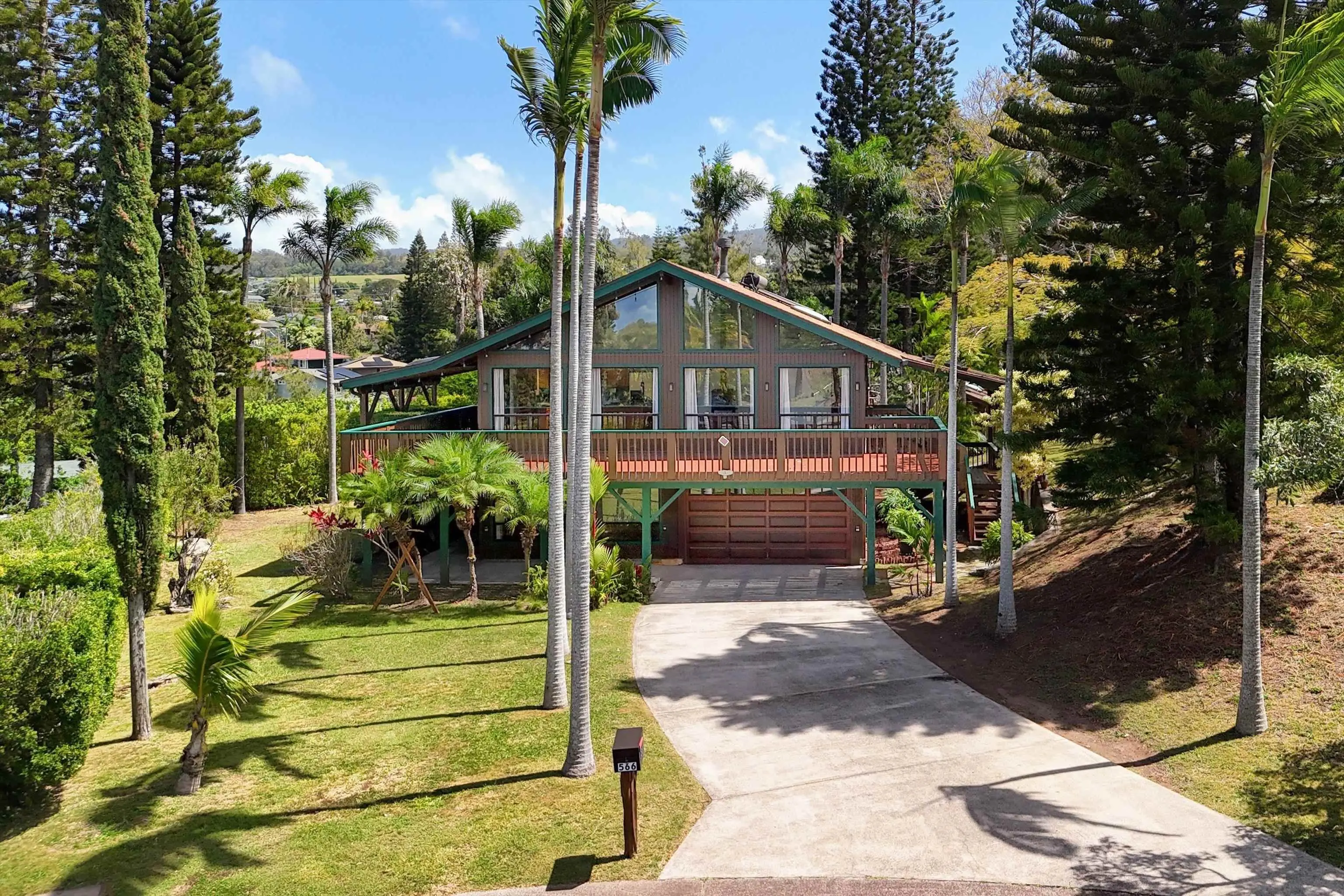 Welcome to 566 Hoene Street in Makawao, situated on a quiet cul-de-sac featuring a custom-built home on a 3/4-acre terraced lot in the Maui Uplands subdivision. This 2-story home has 5-bedrooms and 3 beautifully renovated full baths. There is ample privacy between the upstairs and the downstairs area which has its own electric meter and a separate entrance which makes this space great for potential rental income. Each space offers a sense of seclusion and comfort, ideal for extended family. The backyard is spacious, planted with a variety of trees and offers a park like atmosphere, ideal for kids to play, pets to roam or family gatherings. The neighborhood offers access to a private pool and tennis courts, enhancing the recreational options available within walking distance. Located just minutes from the heart of Makawao towns quaint shops, restaurants, public and private school, a public library, supermarkets and a farmers’ market are all within minutes of this property. Here, you’ll experience a perfect blend of convenience and the relaxed upcountry lifestyle that Makawao is known for. EZ to show!