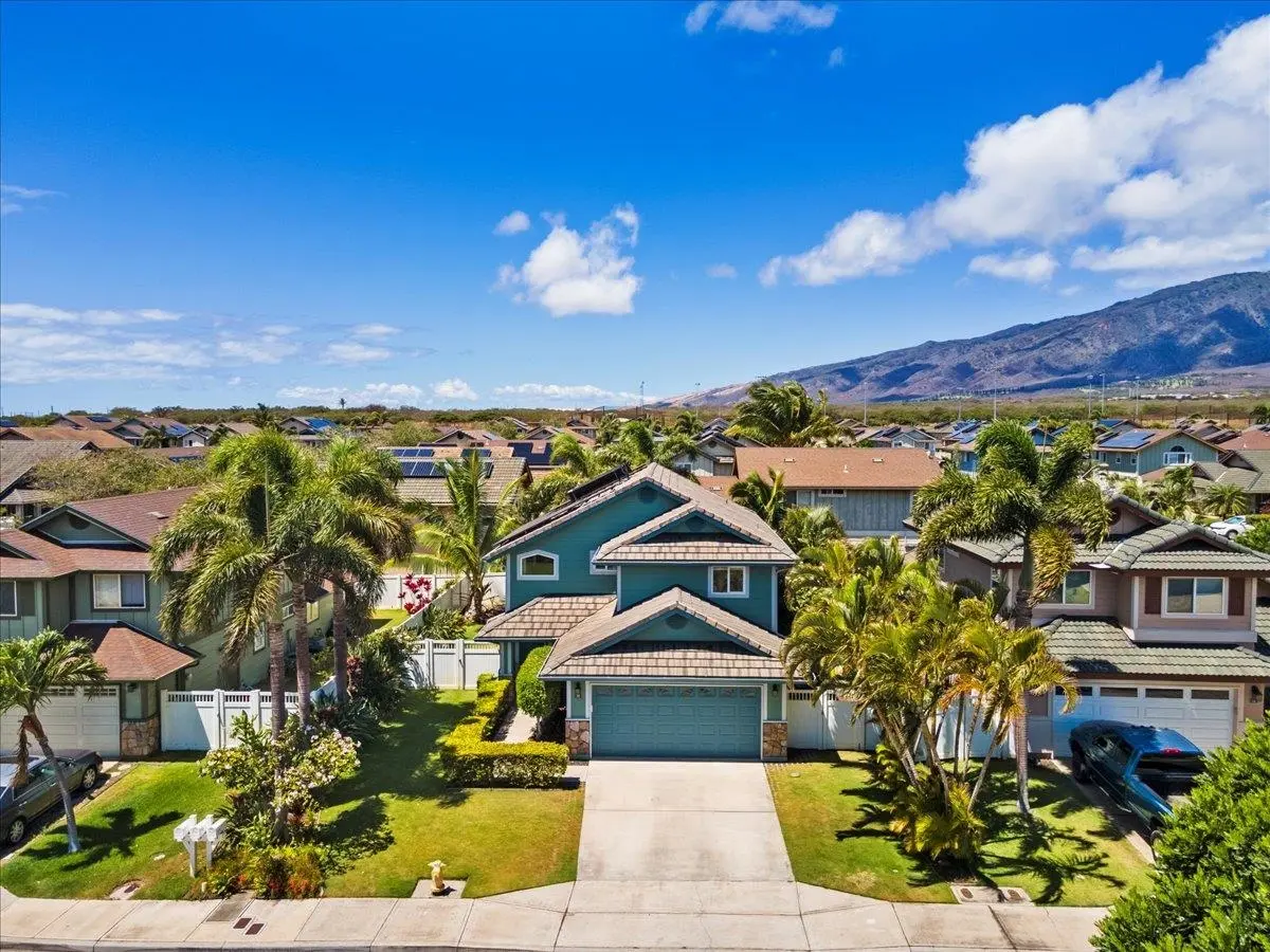 Now offering a $20,000 Seller Credit with new price adjustment! Don’t miss this incredible opportunity to own a beautifully maintained 4-bedroom, 3-bath contemporary home with Brand NEW central Air Conditioning, Owned photovoltaic system with warranty (lease paid at closing), Monier Lifetile roofing and located in the highly sought-after Legends at Maui Lani community. This property boasts stunning views of Haleakala and the West Maui Mountains. From the moment you enter, you’ll be captivated by the soaring ceilings and expansive windows that fill the spacious great room with natural light. With over 2,000 square feet under roof, this two-story residence offers generous living space ideal for multigenerational families, remote work, or growing households. The thoughtful floor plan features a full bedroom and bathroom on the ground floor—perfect for guests or extended ohana. The open-concept kitchen and dining areas flow seamlessly into the living room, creating a warm and welcoming space for entertaining. Upstairs, the large primary suite boasts his-and-hers closets and an ensuite bathroom with dual vanities. Two additional bedrooms and another full bathroom complete the upper level. The fully fenced backyard offers privacy and is adorned with tropical, low-maintenance landscaping and an irrigation system. Recent upgrades include brand-new central air conditioning, a new solar hot water system, and fresh interior and exterior paint. Ideally located adjacent to the Dunes at Maui Lani Golf Course and within minutes of Maui Memorial Hospital, Kahului Airport, shopping centers, dining, and schools. Enjoy walkable access to Pomaika‘i Elementary School and the 65-acre Central Maui Regional Sports Complex, featuring baseball and softball fields, soccer fields, and more. Limited 4-bedroom homes of this size and layout available in Central Maui.