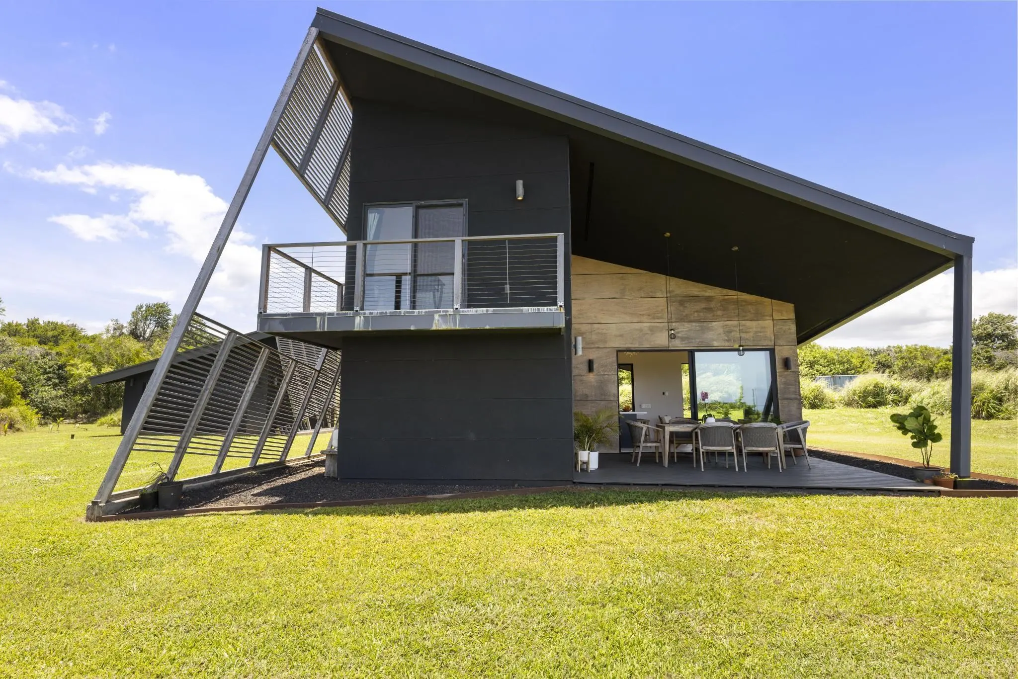 Experience the ultimate in tropical luxury with this stunning Maui sanctuary, located in the highly sought-after gated neighborhood of Kauhikoa Farms on Maui’s North Shore. Designed by award winning Spiegel Aihara Workshop and recently showcased in Architectural Record this architectural masterpiece is a fusion of modern elegance and natural beauty. Meticulously crafted living space, includes soaring diagonal 9 - 20 foot ceilings, two charming lofts and a large office which can easily live as a second bedroom, this home offers versatility and sophistication. The gourmet chef kitchen, featuring high-end Bosch refrigerator, a Kucht professional range, custom Bellmont cabinets, and Calacatta marble countertops is a culinary enthusiast's dream. Entertain with ease in the open-concept layout, where oversized windows flood the space with natural light, seamlessly merging indoor and outdoor living. Step outside to expansive outdoor living area, surrounded by 1.47 acres of lush greenery, complete with coconut and banana trees, providing the ultimate privacy and serenity. Sold fully furnished with custom furnishings designed exclusively for this home. All you need to do is pack your suitcase and move in! A detached two-car garage offers extra storage for all your water sports gear. This home offers unparalleled luxury and privacy with added convenience of being less than 5 minutes to Haiku Town and 15 minutes to Hookipa Beach Park. This property is unit B of a 2 unit ag CPR. Don't wait! Schedule your showing of this stunning Maui property today!