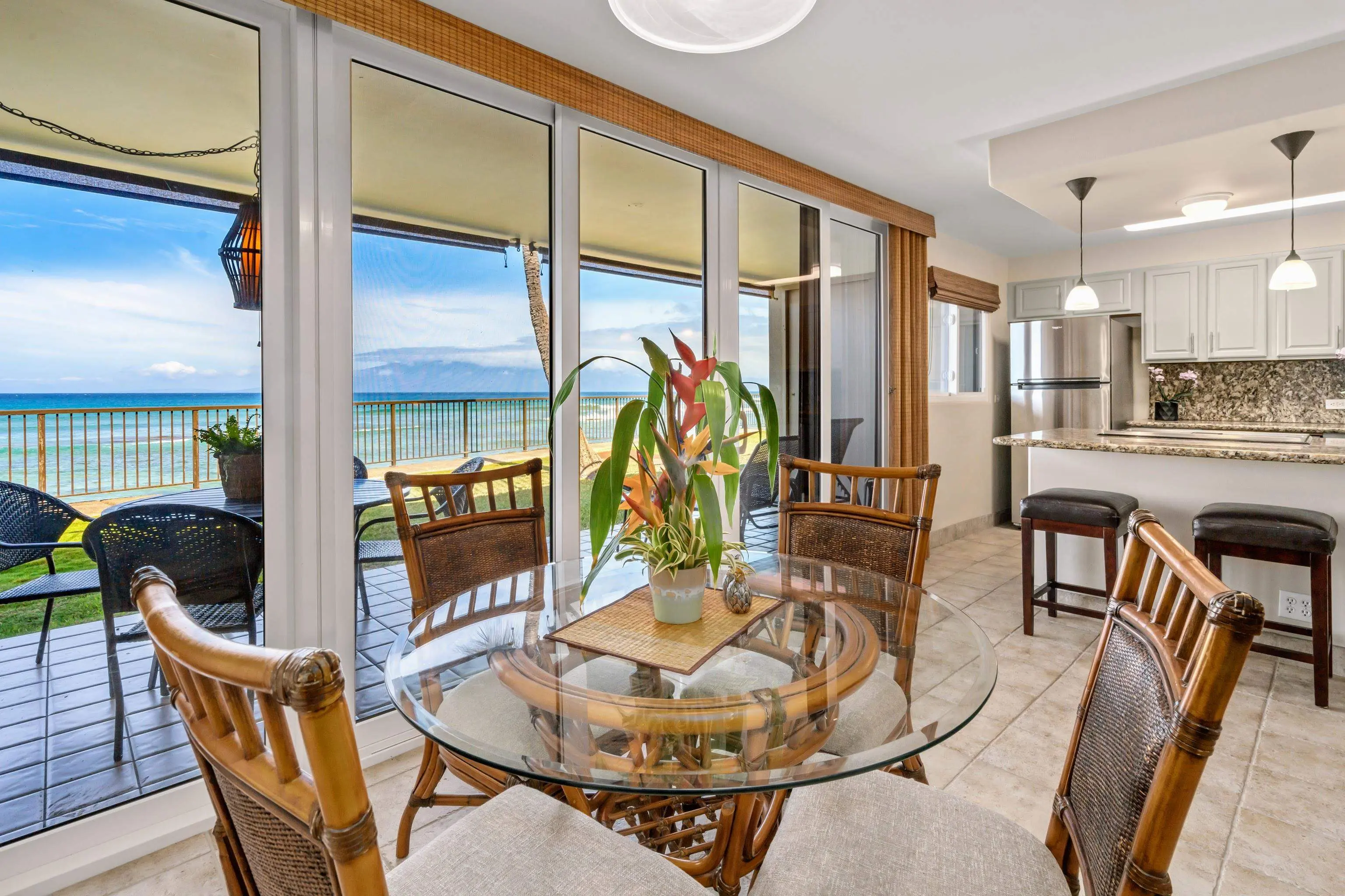 Enjoy the intoxicating sounds of the waves and the breathtaking ocean view from this Honokowai 2 bedroom, 2 bathroom ground floor condo. This end unit is located in The Cottages, one of just four single-level units on the ocean side of the pool, a few yards away from the fully intact seawall â so only one neighbor and no-one above â just a spacious sundeck. The condo is beautifully appointed with granite countertops and backsplash in the kitchen, updated appliances, and tile floors throughout. The private, covered lanai and its direct ocean view has a distinctly Hawaiiana feel. Hale Ono Loa is a favorite choice for many vacationers, year after year. The property features a large pool, beautiful landscaping, shuffleboard and dedicated BBQ area. The HOA fee includes electric, water, trash collection, landscaping, cable and internet. Spend your days snorkeling with our resident family of turtles or viewing the humpbacks from the comfort of your lanai, then relax in the evening with a cool beverage enjoying postcard-worthy sunsets. It's simply just breathtaking!