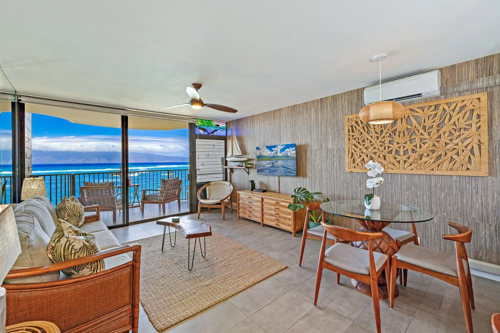 Kahana Reef #303, a direct oceanfront property, presents mesmerizing views of the Pacific Ocean, making it an ideal spot for whale watching and relishing the splendor of unforgettable sunsets. Undergoing a renovation in 2021, #303 boasts unified flooring throughout, new plumbing, a stunning waterfall-edge quartz countertop, 2 split AC systems, and an open bathroom layout. The interior design effortlessly blends Hawaiian aesthetics with a trendy beach-inspired style, creating a comfortable and inviting atmosphere. In addition to its breathtaking natural surroundings, this property offers a range of recreational possibilities. Situated within a low-density complex, it guarantees a serene and calming atmosphere, adding to the allure of this coastal gem.