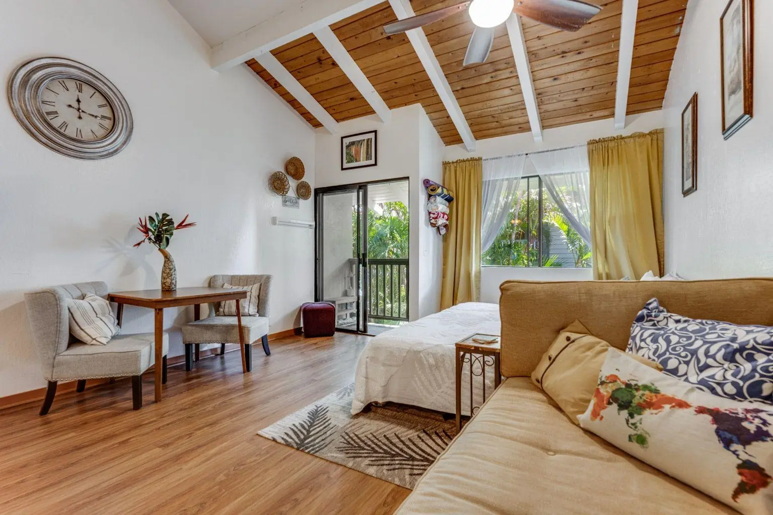 Welcome to this peaceful slice of paradise located in the serene Kanoe Apartments complex, conveniently situated one block behind Cove Beach and Kalama Park in Kihei. Unit 203 is located on the 2nd floor with beautiful, vaulted ceilings to expand the space. The condo was remodeled with vinyl plank flooring and all new Whirlpool kitchen appliances in 2021. In addition, the condo includes ceiling fans and 2 portable AC units located in the living room and bedroom. This condo is clean and has been well maintained. Kanoe Apartments is a small 18-unit complex. The complex has a private in-ground pool on site for peaceful relaxation, as well as a communal barbeque and storage space for bikes/surfboards/etc. The condo is deeded with one parking space. In addition to its close proximity to the beach, the condo is also within a few minutes walking distance to a large variety of shops and restaurants. Contact your favorite realtor for a showing!