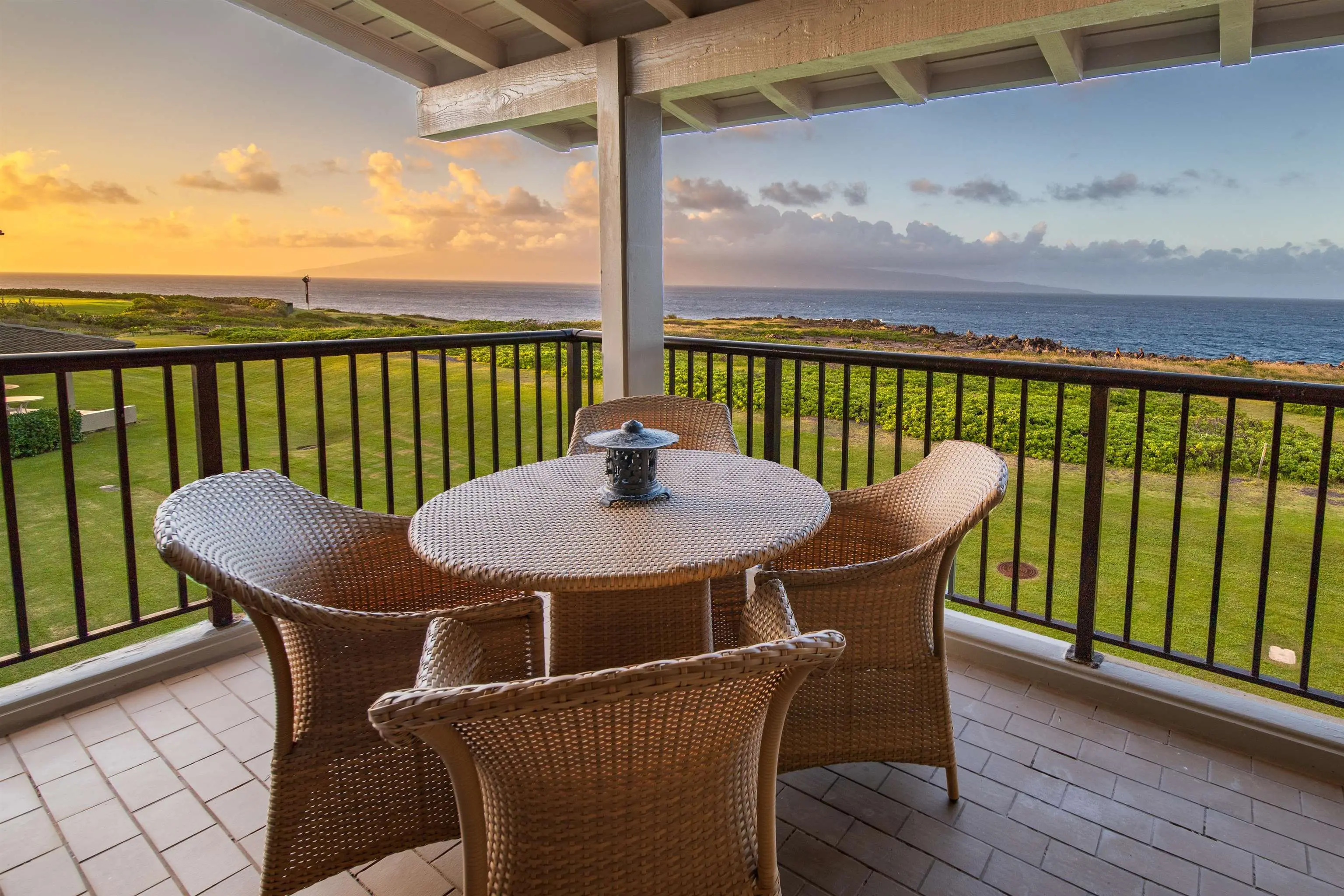 This is a rare offering of an oceanfront Bay Villa located along the spectacular Kapalua coast. The bridge level townhouse floor plan is coveted, as it offers ocean views from both the downstairs kitchen, living room and lanai, as well as from the spacious bedroom suite and upstairs lanai. Positioned on the West side of the building, this location is sheltered from the prevailing trade winds while also featuring views of the Pailolo Channel and the neighbor island of Molokai. The orientation to the West provides the perfect vantage point to experience Maui’s incredible sunsets. The covered lanai downstairs overlooks Hawea Point, which is under the stewardship of the Hawai’i Land Trust and is home to the endangered seabird, the ’Ua’u Kani. In the winter and spring, this is an incredible spot for whale watching. Beautifully renovated, the owners added special touches to the kitchen, with custom cabinetry and a wine fridge, pampas reed resin windows for privacy, enclosed the loft and converted the half bath to a full bath. The gated Bay Villas community is situated along the Kapalua Coastal trail and has direct beach access to Oneloa Bay, as well as two tennis/pickleball courts, and three swimming pools. See Associated Documents for the Floor Plan.