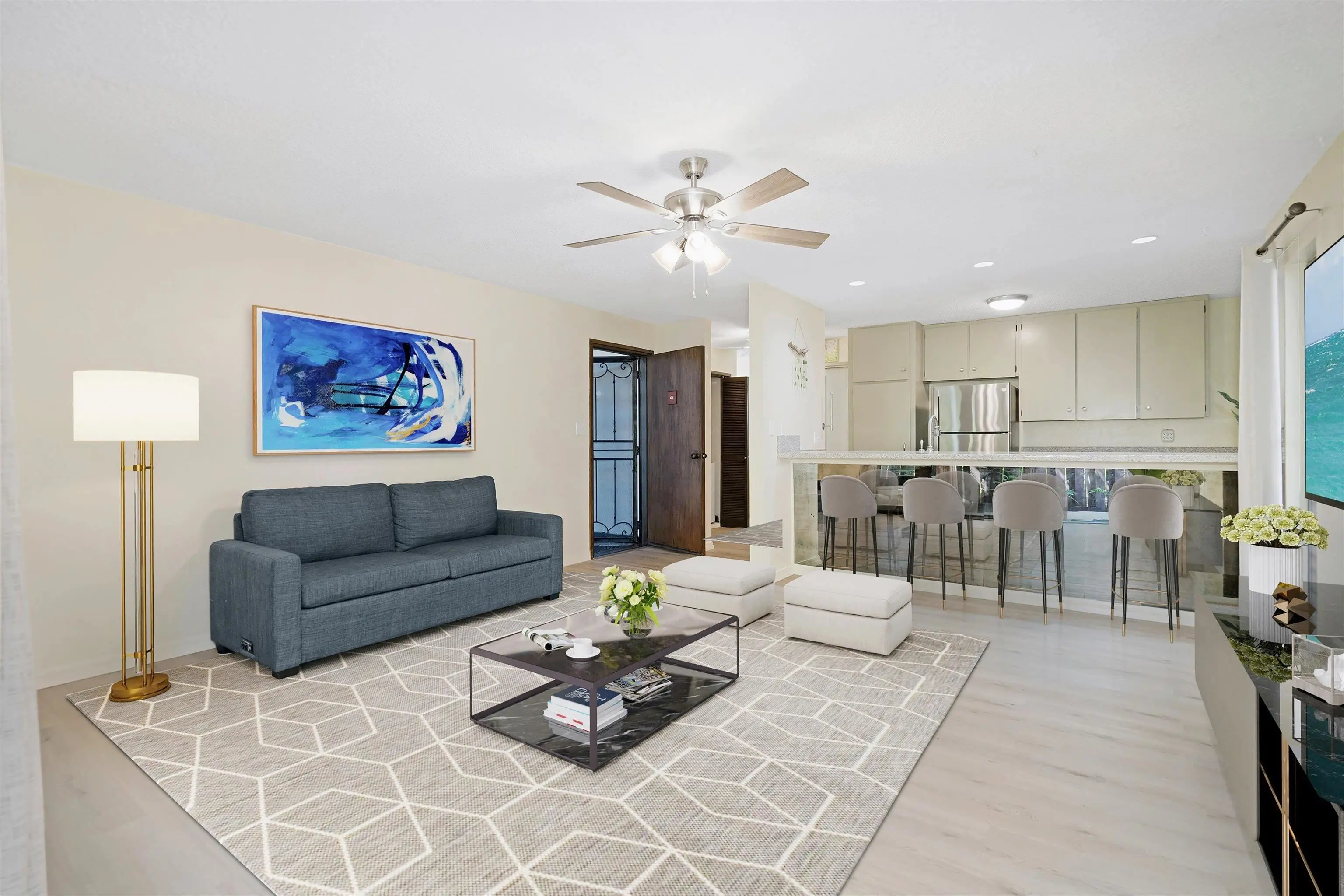 Welcome to your dream getaway! This beautifully renovated ground-floor condo offers the perfect blend of comfort and convenience. Enjoy the serene garden views from your lanai, with the ocean just across the street. The unit features brand-new appliances and stylish updates, making it move-in or rental-ready. Located in a sought-after community, this condo is short-term rentable, providing an excellent investment opportunity or a personal retreat. You’ll be just moments from restaurants, shopping, and local attractions, with the airport a convenient 20-minute drive away. Call your favorite realtor today! Living Room photos have been digitally staged.