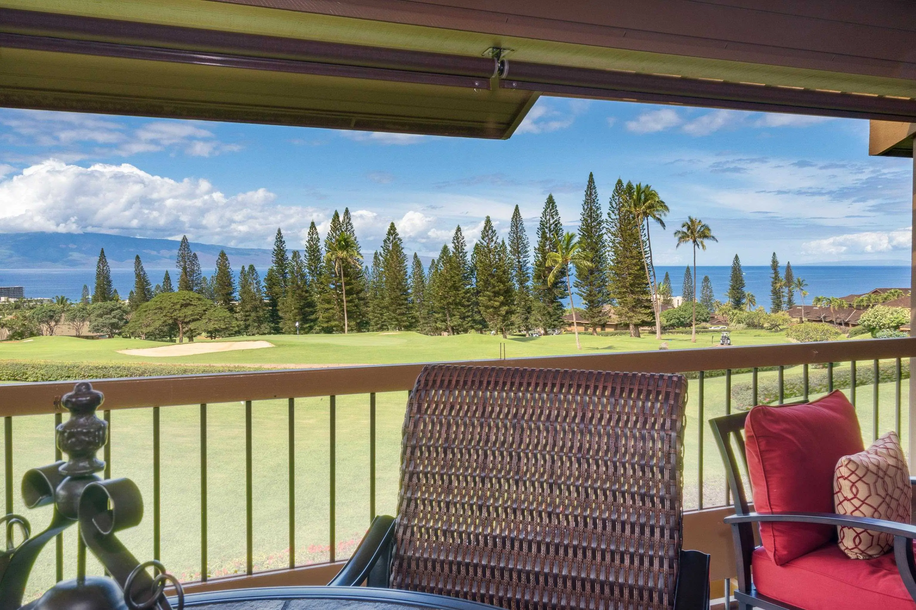 Searching for a hidden treasure in West Maui? Look no furtherâ¦The Masters at Kaâanapali Hillside features homes with a rare Hawaiian elegance. This listing has been beautifully and tastefully remodeled, is a sought-after top floor unit with one of the most spectacular settings in the Masters. Stunning panoramic ocean views, with Lanai and Molokai as the backdrop, and incredible whale watching, sunsets and star-gazing right from your own private lanai overlooking the 9th green of the Kaâanapali Royal Golf Course offer a one-of-a-kind opportunity to a lucky buyer. Nestled in 38 acres of tropical landscaping and manicured grounds, itâs a private sanctuary within easy walking distance of Black Rock and Whalerâs Village. Conveniently positioned close to one of the 2 pools, 2 hot tubs, 4 sport courts and the entrance to the community, the unit itself is secluded and tranquil with easy access from your private, covered parking spot. The friendly office staff, maintenance and security teams provide excellent service and keep the property in outstanding condition. Along with distinguished furnishings, including art and decor from the local islands, this home includes a generously-stocked kitchen and entry closet full of sports and activity equipment. Itâs turnkey - move-in and vacation ready - in one of West Mauiâs most popular and pet-friendly developments. With 2 bedrooms and 2 full bathrooms, thereâs 1512 sq ft of luxurious living with vaulted ceilings and 4 skylights which add a feeling of spaciousness throughout the home. The large primary bedroom includes an office desk set up, king bed plus two separate, private closets with plenty of storage. The spacious ensuite primary bath contains beautiful travertine, a walk-in shower, a jetted soaking tub, custom and private vanities with granite countertops. The guest bedroom with queen bed includes a beautiful, custom built Cherry closet system with drawers, shelves, armoires and lighting. Thereâs also a wonderfully updated full bathroom, just outside the bedroom entrance, with maple vanity and granite countertop. The gorgeous kitchen and entry, with inlaid maple and tiger wood flooring, custom white oak cabinets, granite countertops and stainless steel appliances complements the open-concept dining and living rooms. The living room sliding doors open up to reveal true indoor/outdoor living on the beautifully tiled, spacious lanai. Donât wait â call your favorite Realtor today to schedule a private showing, Easy to show on short notice.