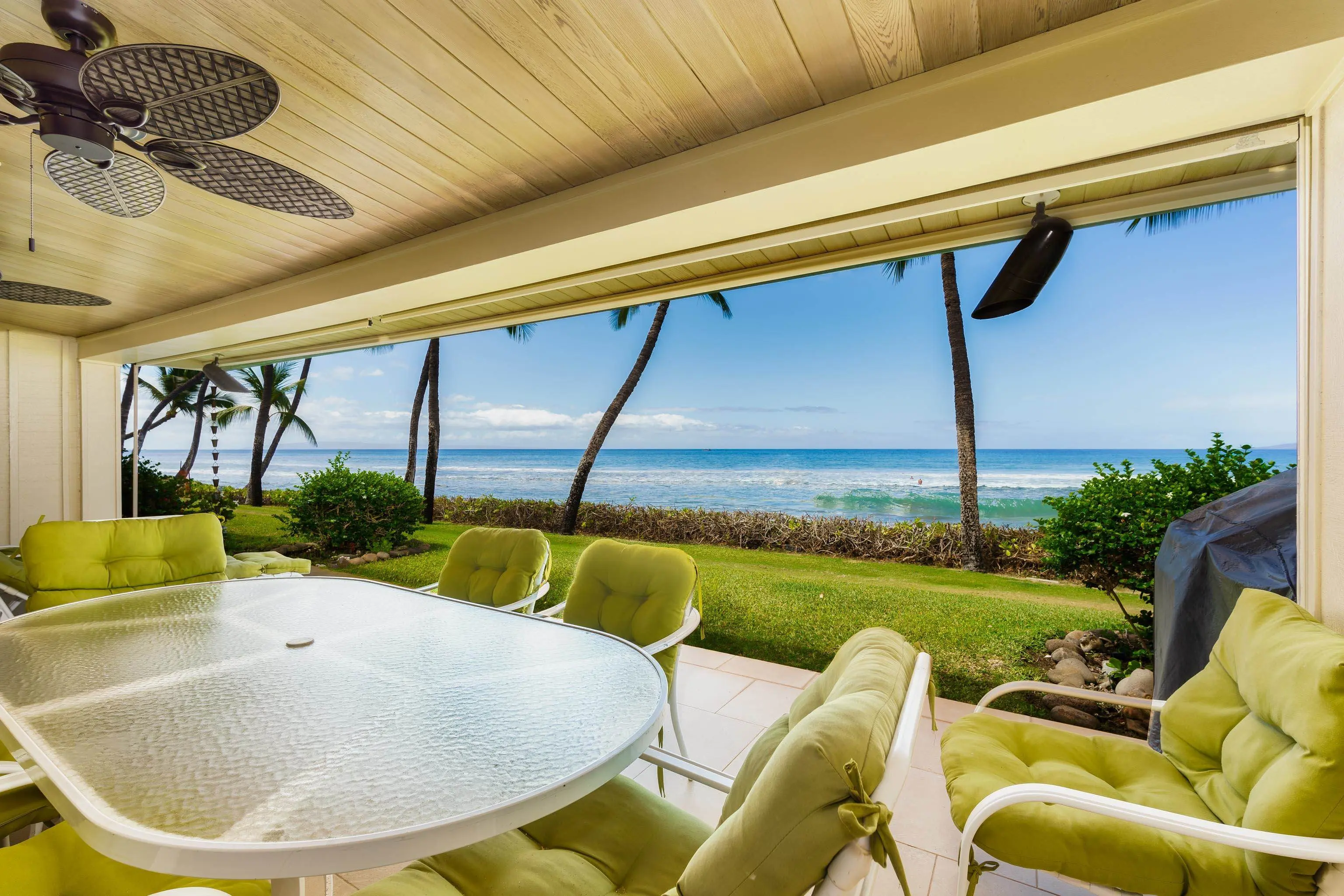 Spectacular oceanfront four-bedroom four-bath in a great location close to beach access and all the amenities of Puamana. This is Maui oceanfront living at its best on the sunshine coast of Lahaina. Relax on your lanai or private upstairs deck enjoying the sound of the surf while watching surfers, whales, turtles, sailboats, and spectacular sunsets. The living room is open concept with kitchen, dining and living room open to the spacious lanai and expansive ocean views. Upstairs there are two master suites one with deck on the ocean and a private office. The third master suite is downstairs with the guest bedroom, fourth full bath, and sitting area. Puamanaâs amenities include 30 acres of palm tree filled greenbelts, gated entrance, 3 pools, one directly oceanfront, tennis court, oceanfront gym, surf, sand and a romantic historic Clubhouse. Puamana at the end of Front Street is private and quiet yet close enough to easily enjoy the fun and adventures of Lahaina Town, world class golf, unique shopping, fabulous dining experiences and the resort amenities of Kaanapali and Kapalua. Call to schedule a showing or FaceTime walkthrough today.