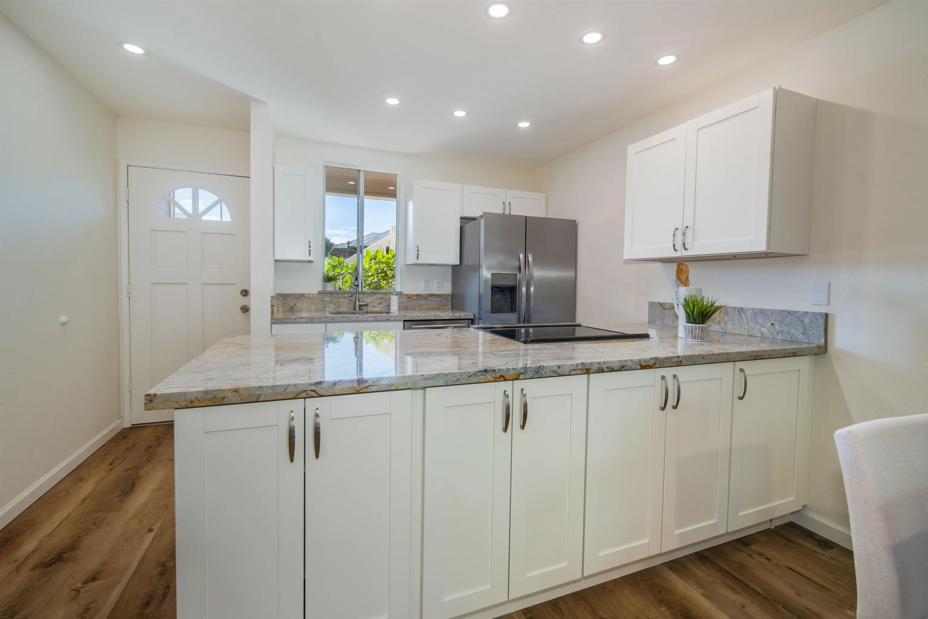 Welcome to this charming 2-bedroom, 2-bathroom Kihei Beach Style Condo. This renovated gem boasts an array of delightful features that make it the perfect island retreat. As you step inside, you'll immediately notice the tasteful upgrades that have transformed this condo into a contemporary haven. The kitchen showcases sleek granite countertops, equipped with brand-new appliances. The LPV (Luxury Vinyl Plank) flooring flows seamlessly throughout the living spaces, offering both durability and a pleasing aesthetic. One of the standout features of this condo is the abundance of natural light that floods the living area. Brand new sliding door and windows have been thoughtfully installed, allowing for a constant connection to the beautiful outdoor surroundings and providing a refreshing breeze. The open layout creates a sense of spaciousness, making it a welcoming space for relaxation and entertainment. Step outside to discover the delightful backyard â a cute little oasis of serenity. Whether it's for sipping your morning coffee, enjoying a BBQ with friends and family, this space provides the perfect balance of privacy and comfort. The two bedrooms are elegantly appointed, offering a peaceful retreat after a day of beachcombing and island adventures. The bathrooms, both tastefully upgraded, feature contemporary fixtures and finishes that add a touch of luxury to your daily routine. This Kihei Beach Style Condo offers not only the convenience of modern living but also the quintessential island charm that makes Maui so alluring. From the granite countertops to the inviting backyard, every detail has been carefully designed to provide the perfect balance between comfort and style.