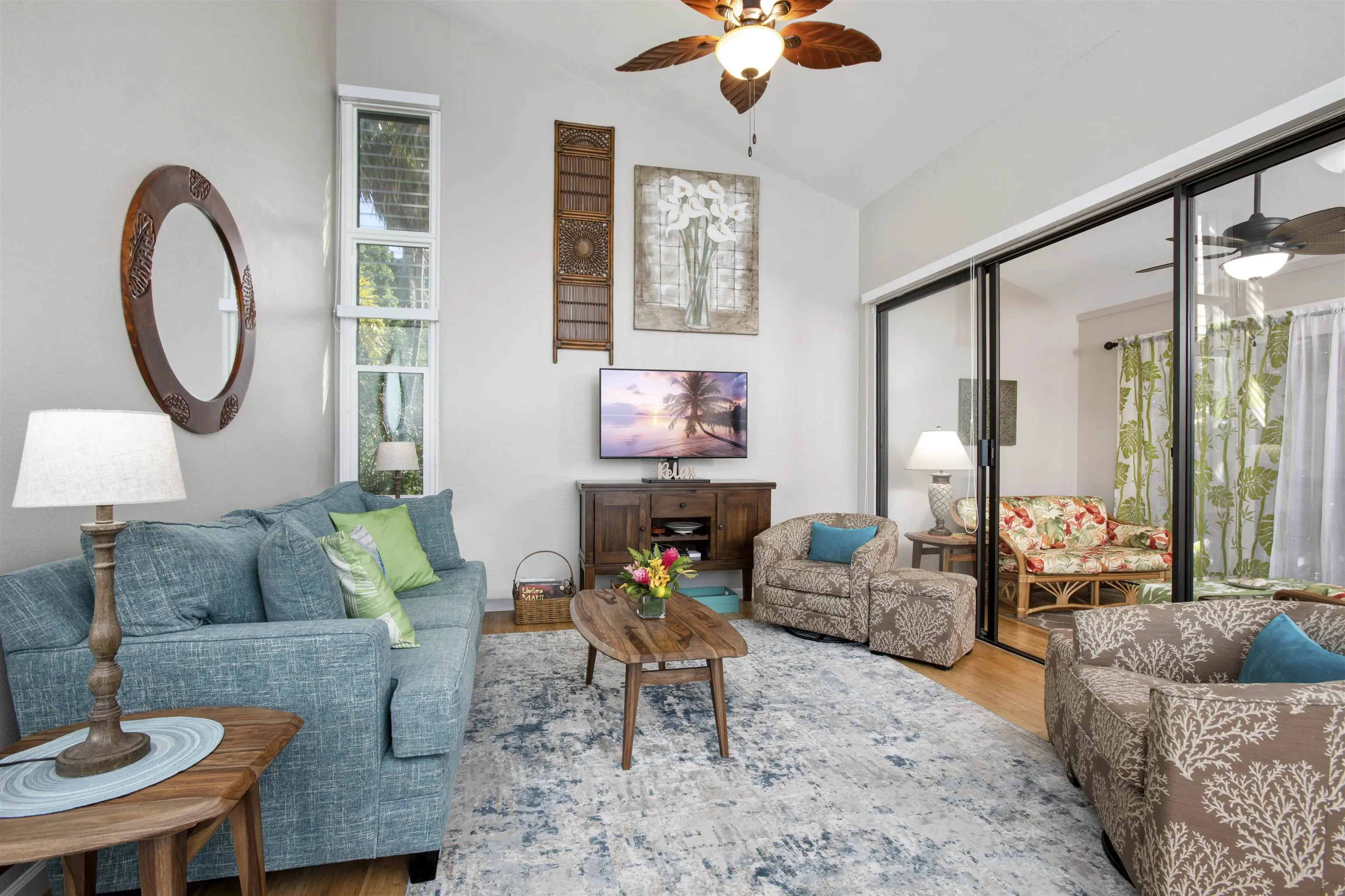 Welcome to your slice of paradise in Wailea Ekahi! This charming and meticulously updated 1-bedroom, 1-bath condo that comfortably sleeps 4 in the highly sought-after Wailea Ekahi community offers the perfect blend of comfort, style, and convenience, with 35 acres of lush, immaculately landscaped gardens, top-notch amenities with 4 pools (1 heated), an oceanfront pavilion with direct ocean access to Keawakapu Beach, a fitness gym, board storage, tennis/pickle ball courts, bbq areas, walking paths, benches/picnic areas, car wash areas, security, and ample parking. Thoughtfully designed and maintained, the condo features high cathedral ceilings, windows in every room to bring in light and the surrounding gardens, new furniture throughout, two brand-new mini-split air conditioning units, a complete repainting, new fabric light-filtering blinds for privacy and carved wooden palm leaf fans with remotes and lights in all the rooms for year-round comfort. The fully enclosed lanai extends your living space and creates a peaceful indoor-outdoor vibe, ideal for enjoying your morning coffee or unwinding after a day at the beach. The condo comes fully furnished with tasteful, island-inspired decor-ready for you to move in or continue as a vacation rental. With future rentals already on the books, this is a turn-key opportunity whether you're seeking a full-time residence, a vacation escape, or an investment property. Wailea Ekahi is adjacent to the Shops of Wailea, world class golf, and several 5-star luxury resorts with amazing restaurants. The complex has easy water entry access for swimming, snorkeling, paddleboarding, scuba, and much more, as well as close proximity to community events, numerous happy hours, as well as the Wailea walking path, and beach walks in sand for miles in both directions. Don't miss your chance to own this beautiful retreat!