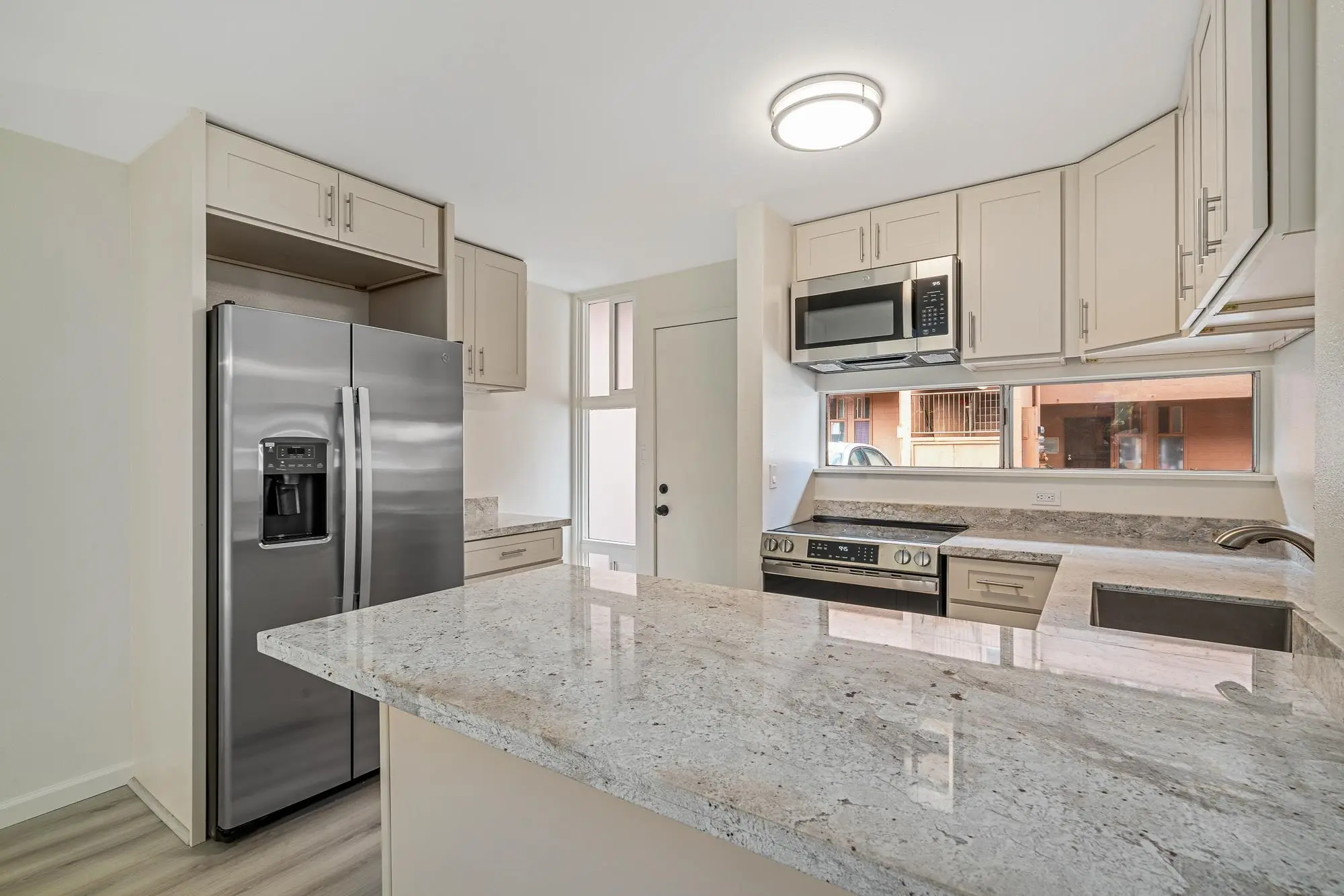This fully remodeled air conditioned leasehold 2-bedroom, 1 bath ground floor NO STAIRS condo offers the perfect blend of comfort, convenience, and coastal living. Perfect rental income property. Enjoy the comfortable flow of a modern design with ample natural light streaming through large windows. The kitchen boasts granite countertops, new appliances situated to maximize space, perfect for preparing delicious meals after a day at the beach. Experience the island breeze with brand-new windows and screens, offering a blend of fresh air and tranquility. A dedicated parking space is conveniently located right nearby, making it easy to come and go as you please.Just a short distance to Honokowai Park, Times Supermarket, and 5A Storage. Everything you need is at your fingertips! A nearby bus stop provides easy access to the rest of the island, making this a perfect spot for those who prefer to leave the car behind or a great income property. Don’t miss this opportunity to own a slice of paradise! Schedule your showing today and experience the best of island living!