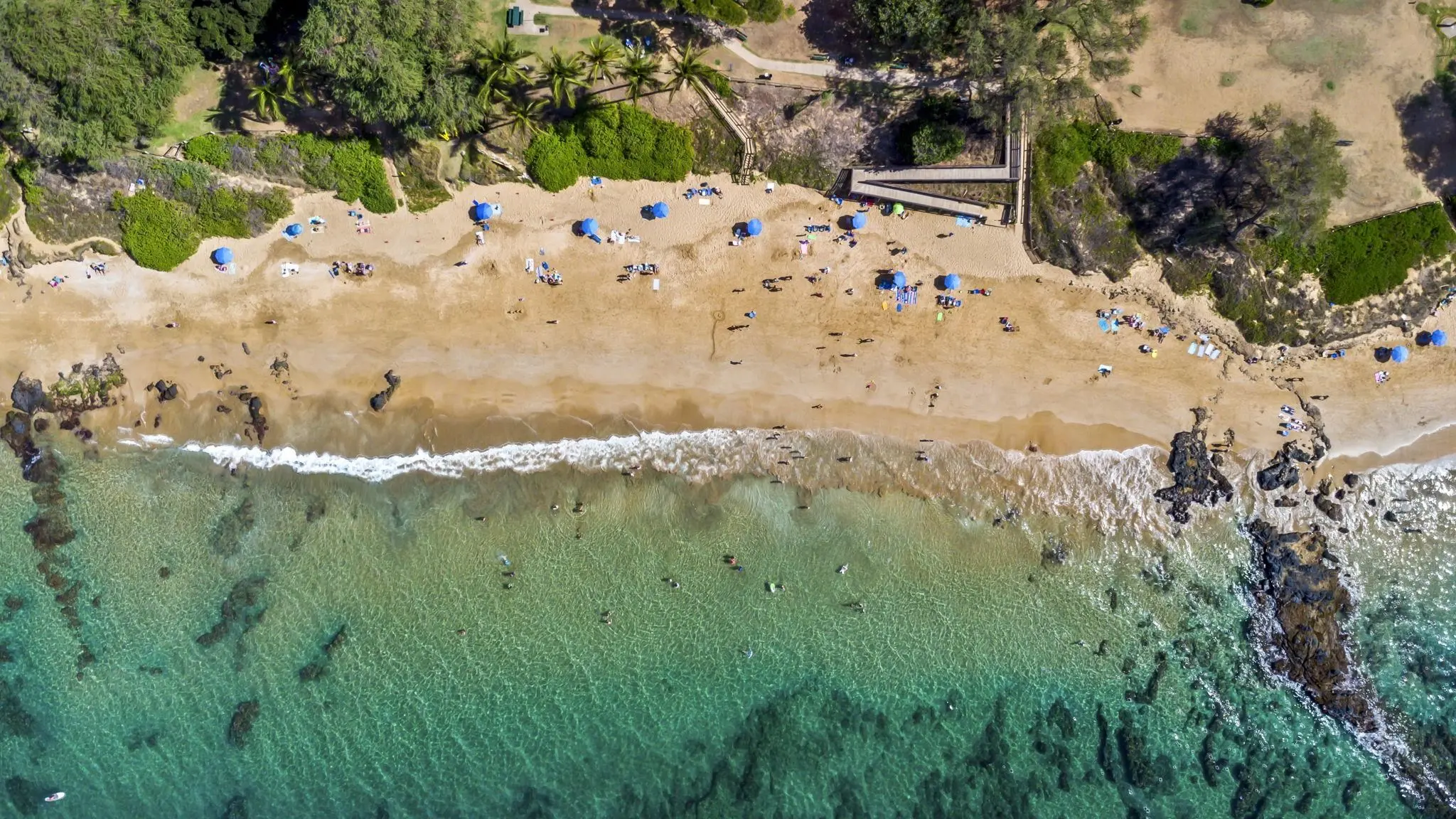 Kamaole Beach II, or Kam II as the locals call it, has an on-duty lifeguard and volleyball equipment. If you visit during low tide, be sure to take a walk heading south down the beach towards Wailea. Eventually, you’ll reach the tide pool area, where you’ll likely find sea creatures, including starfish and crabs.