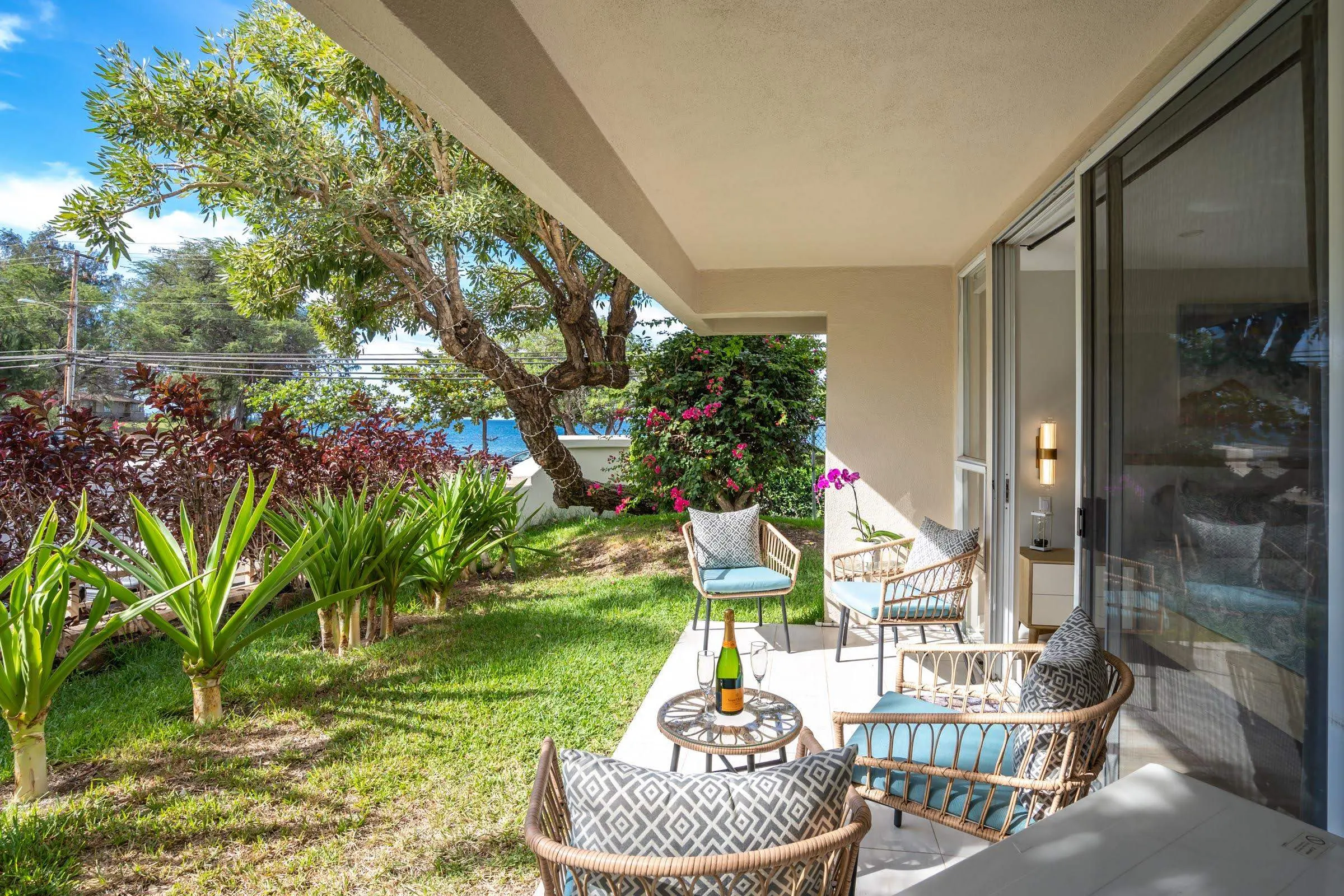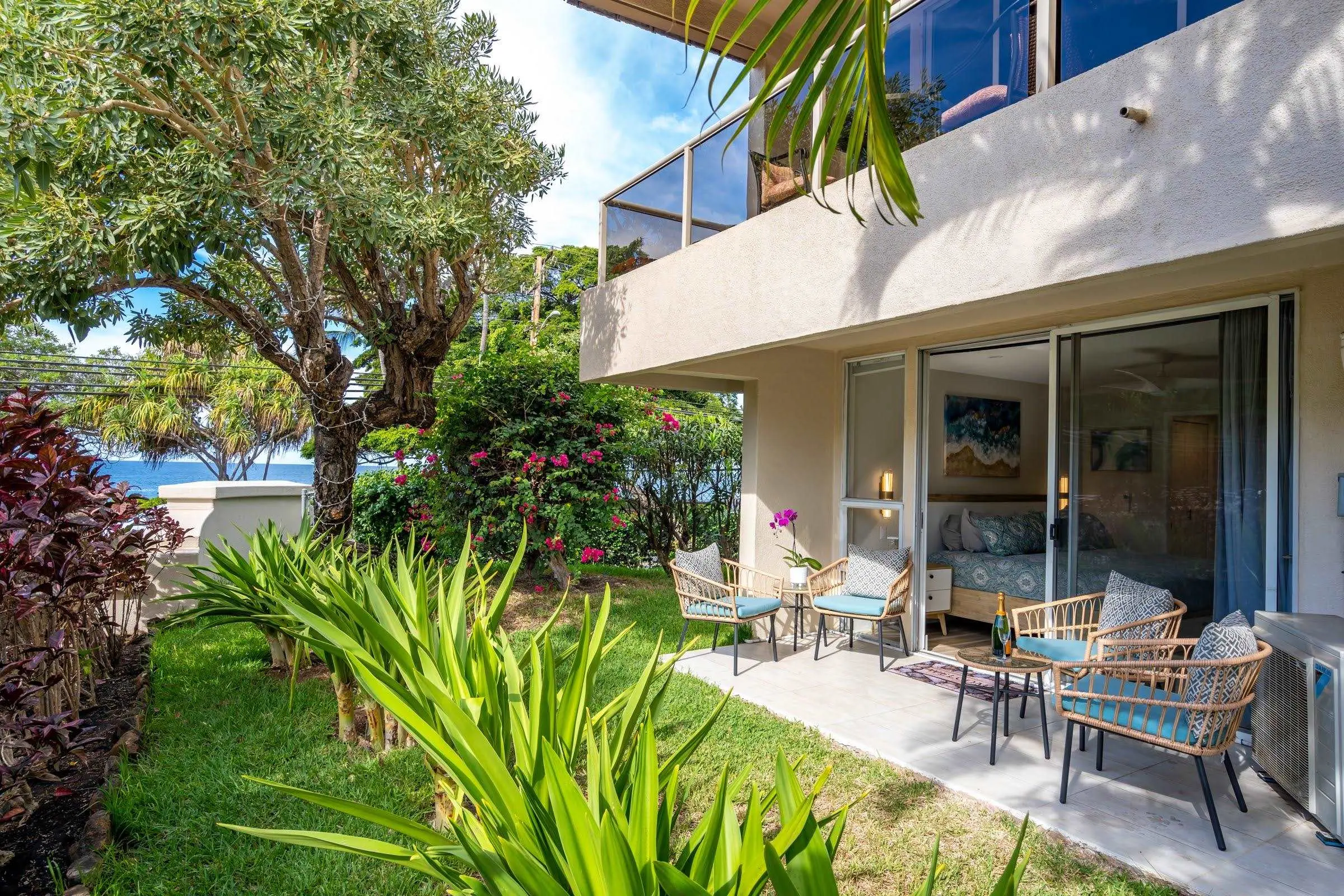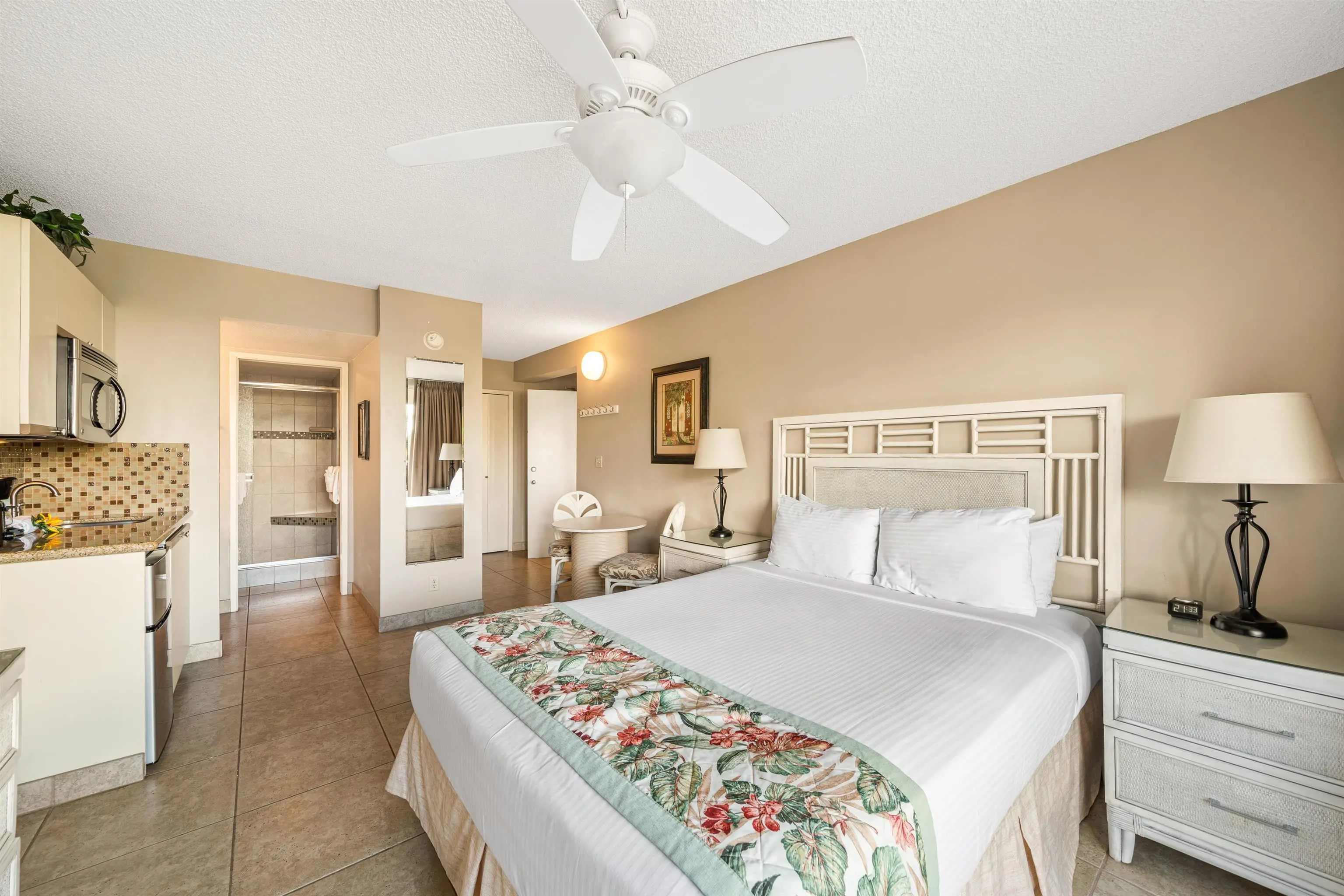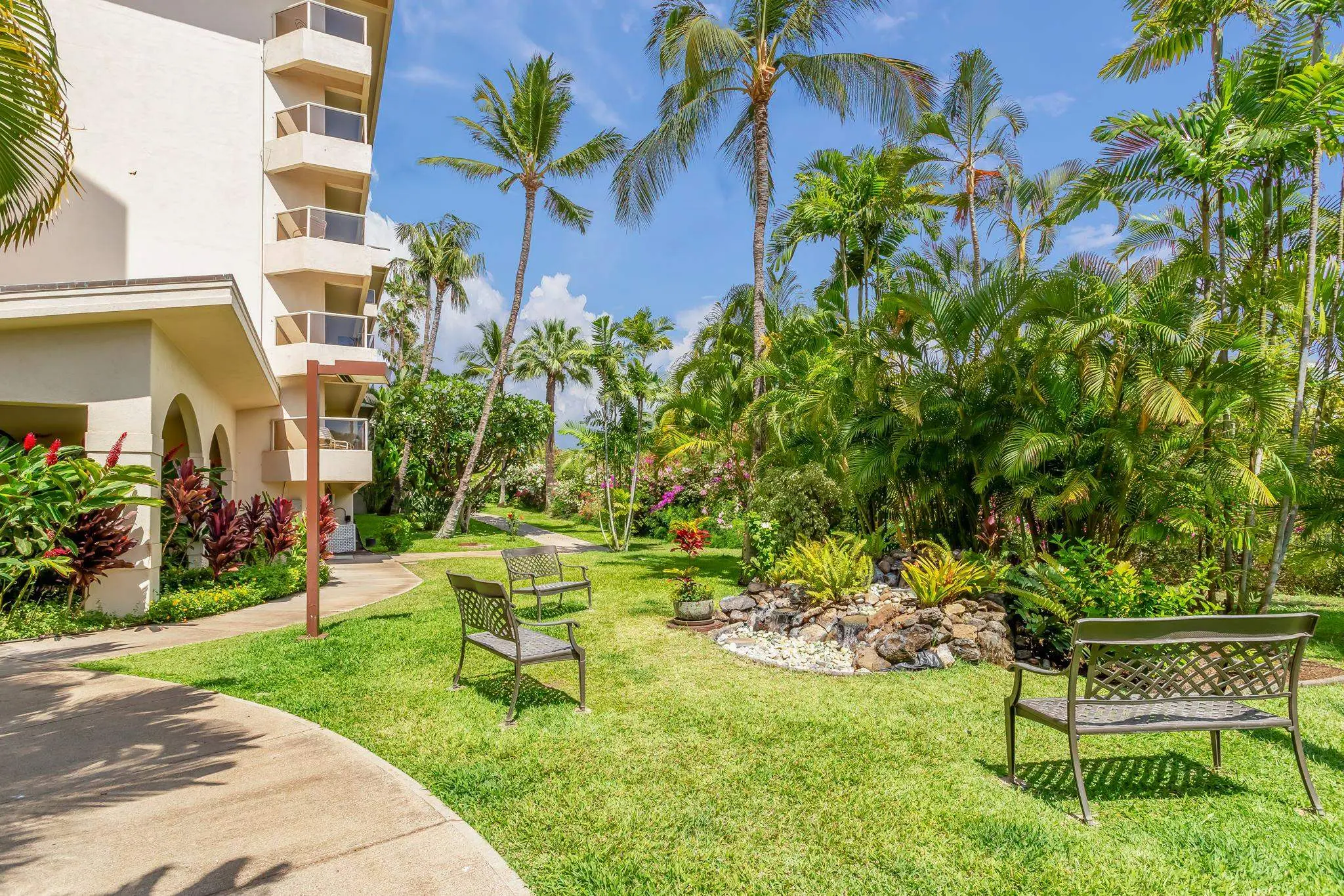 With a total of 256 units, floor plan options range from 1, 2, and 3 bedroom units. Each condo is fully furnished with a private lanai. Enjoy a stylishly designed space with bamboo and travertine flooring, tropical décor, and views of the ocean or lush tropical gardens.