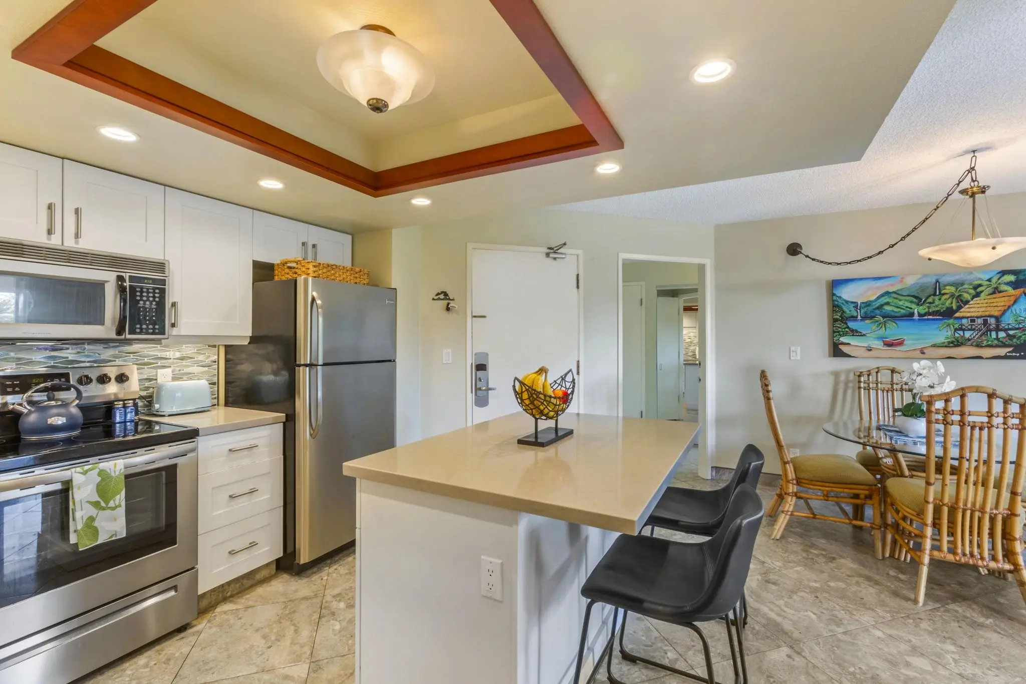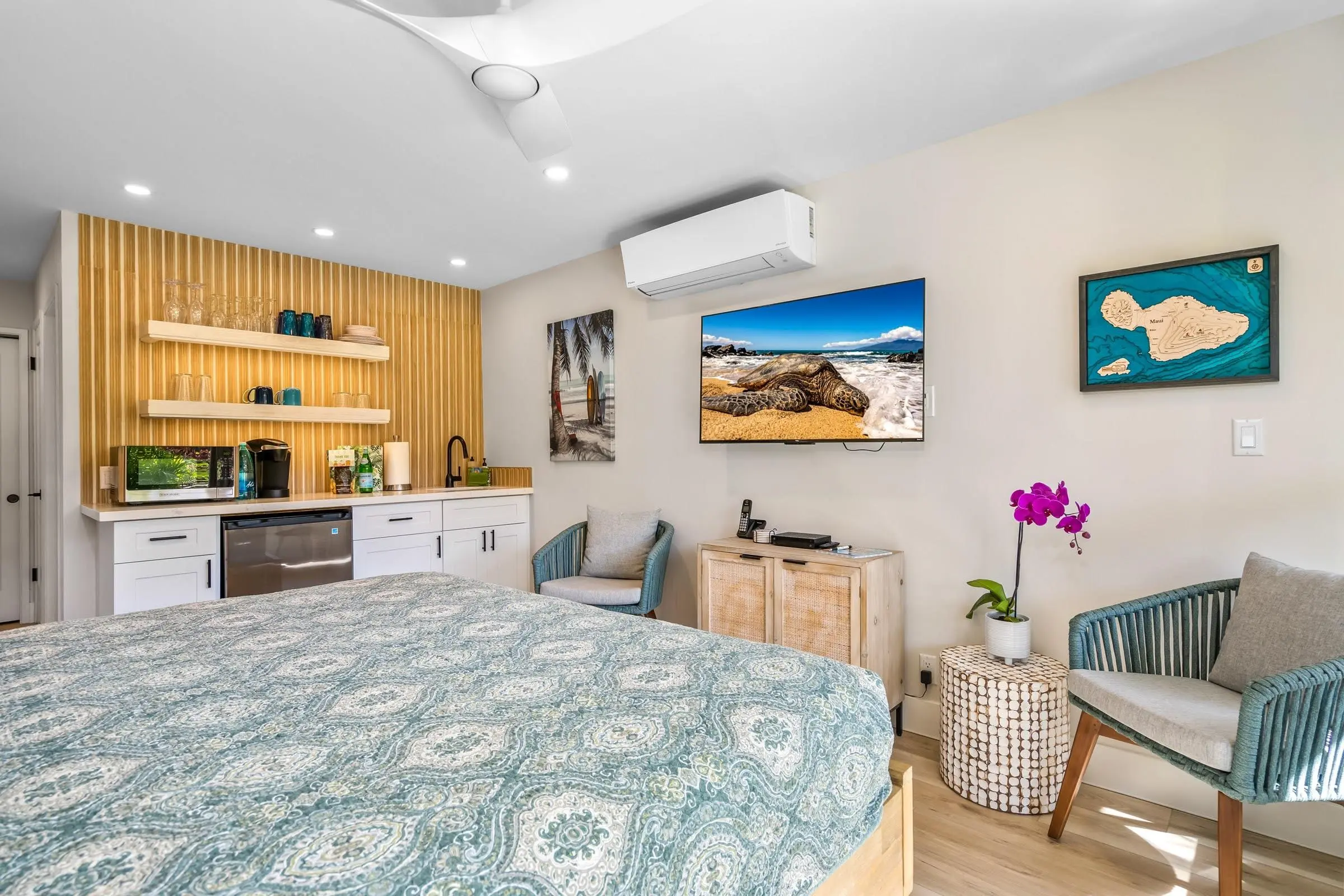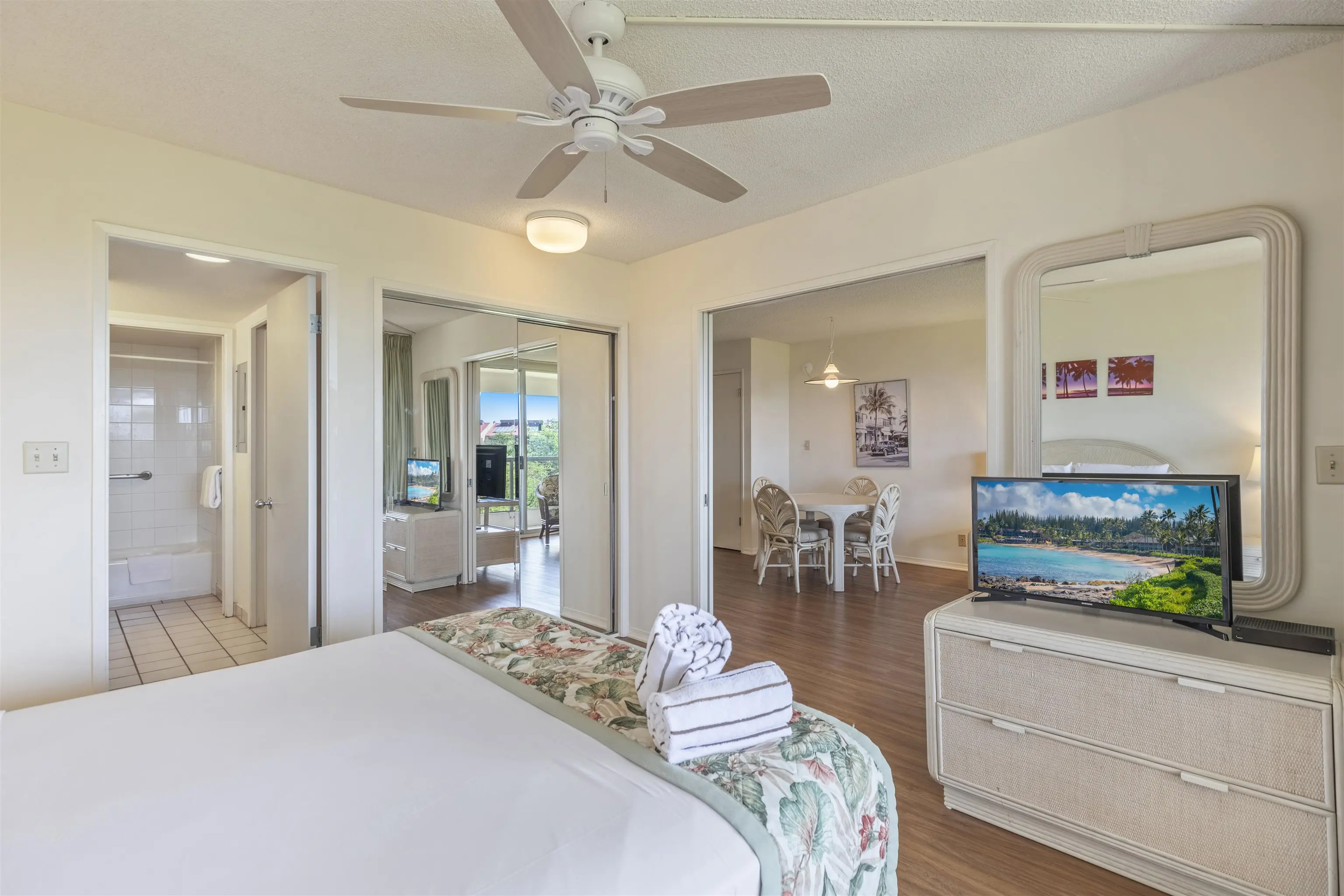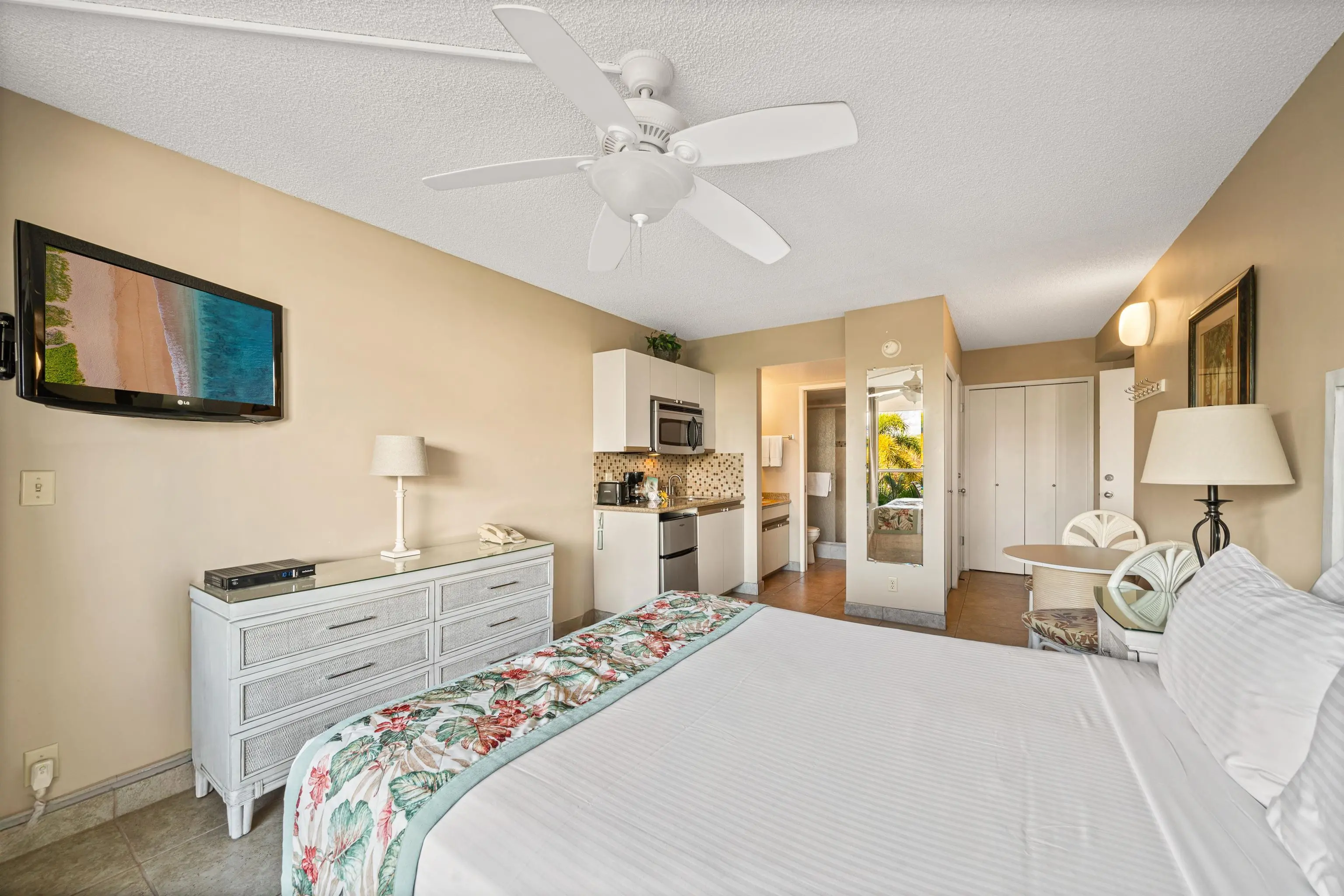 With a total of 256 units, floor plan options range from 1, 2, and 3 bedroom units. Each condo is fully furnished with a private lanai. Enjoy a stylishly designed space with bamboo and travertine flooring, tropical décor, and views of the ocean or lush tropical gardens.