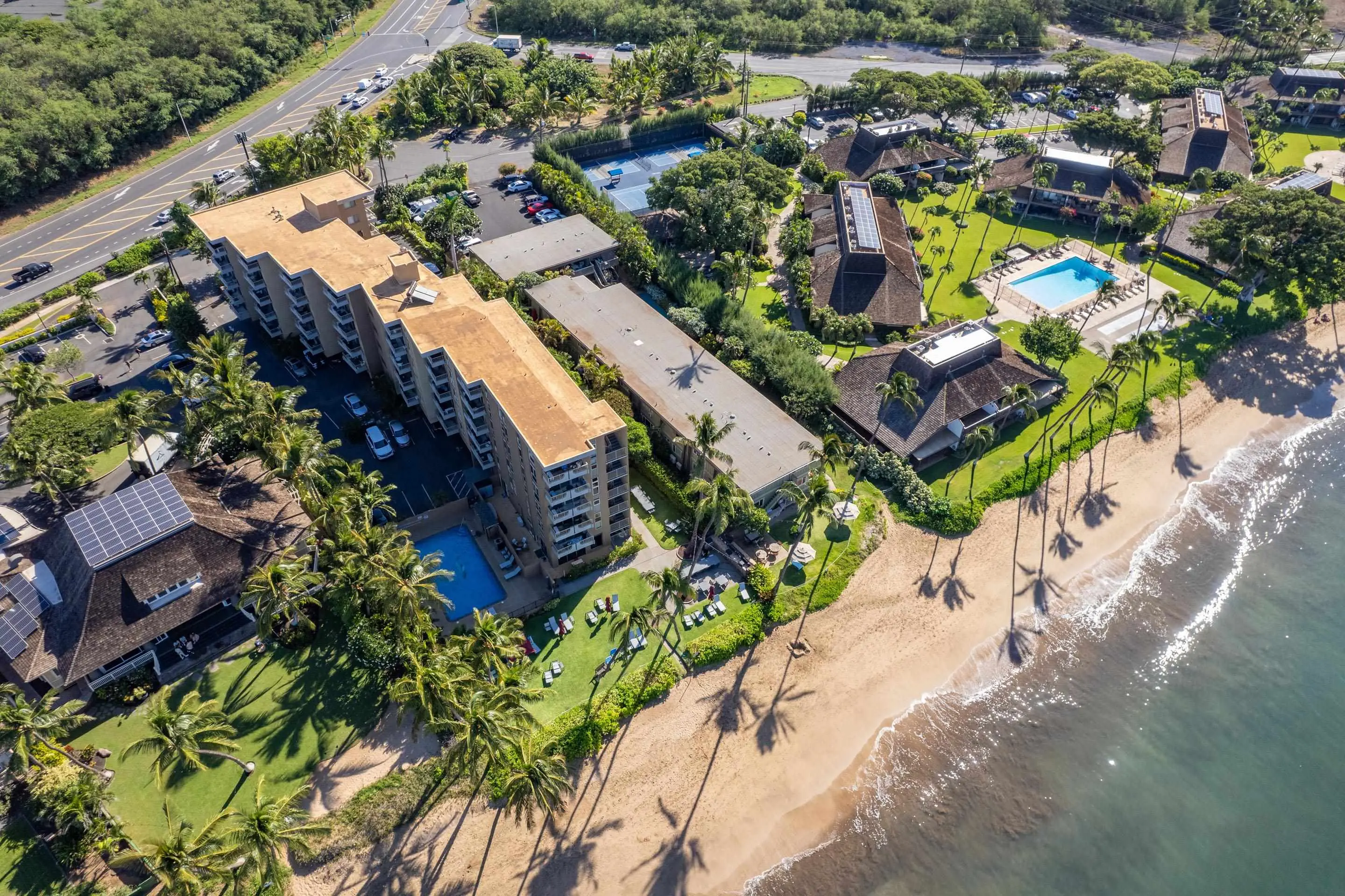The Kihei Kai Nani condominium community stands at 2495 South Kihei Road, next to Kihei Akahi. It encompasses 180 stylish one bedroom, one bath residences scattered among 13 buildings. Developed in 1970, this comfortable enclave provides some in-demand shared amenities: a large, centrally located in-ground swimming pool, several barbecue grills, and even a shuffleboard court.
