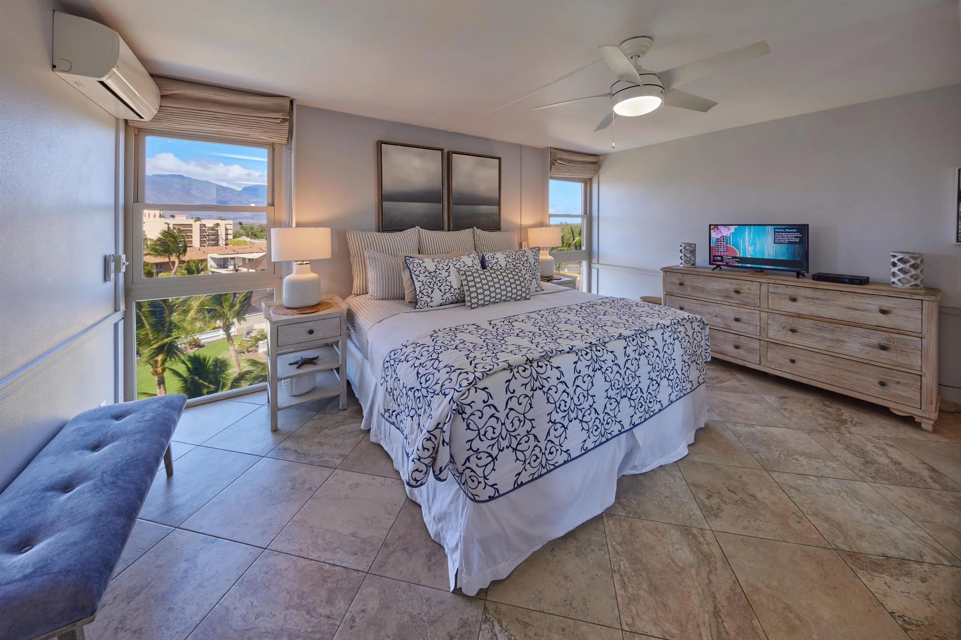 It sits along the scenic southwestern coast of South Maui. This locale appeals to vacationers interested in visiting the trendy Shops at Wailea. Have fun exploring superb championship golf courses, a world-class tennis center, and many fine dining venues when you visit this luxurious coastal resort.