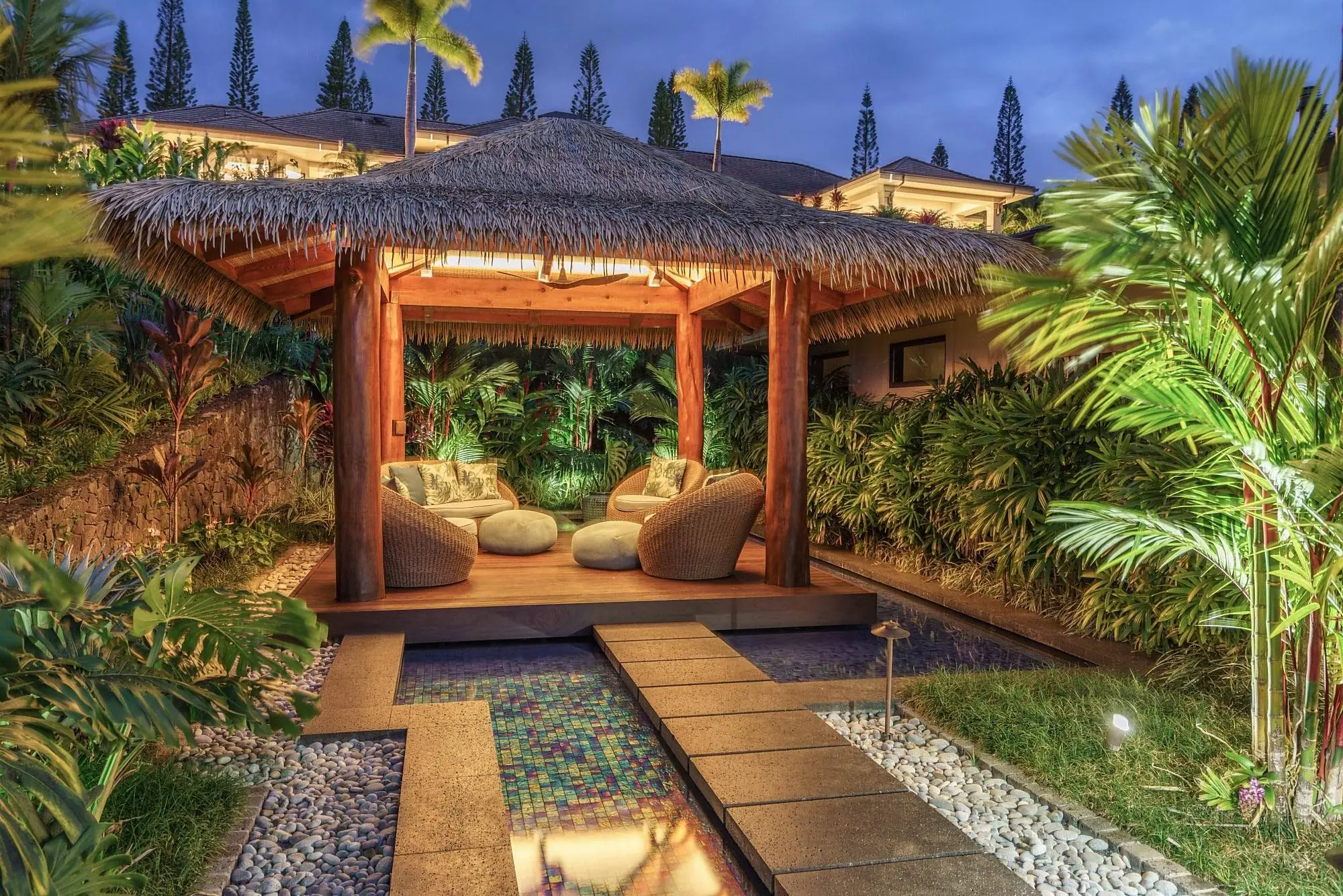 With breathtaking views of the Pacific and the outer islands, the homes of the Plantation Estates offer large bedrooms, en-suite bathrooms, and enough room for a large family. A gourmet kitchen, swimming pool, spas, and much more are all possibilities with a home in this beautiful community.