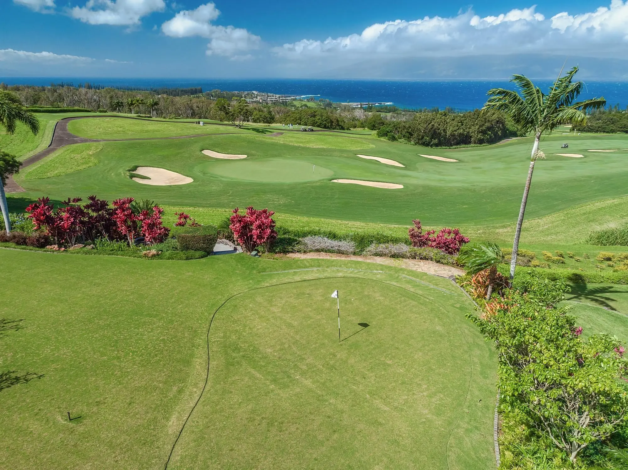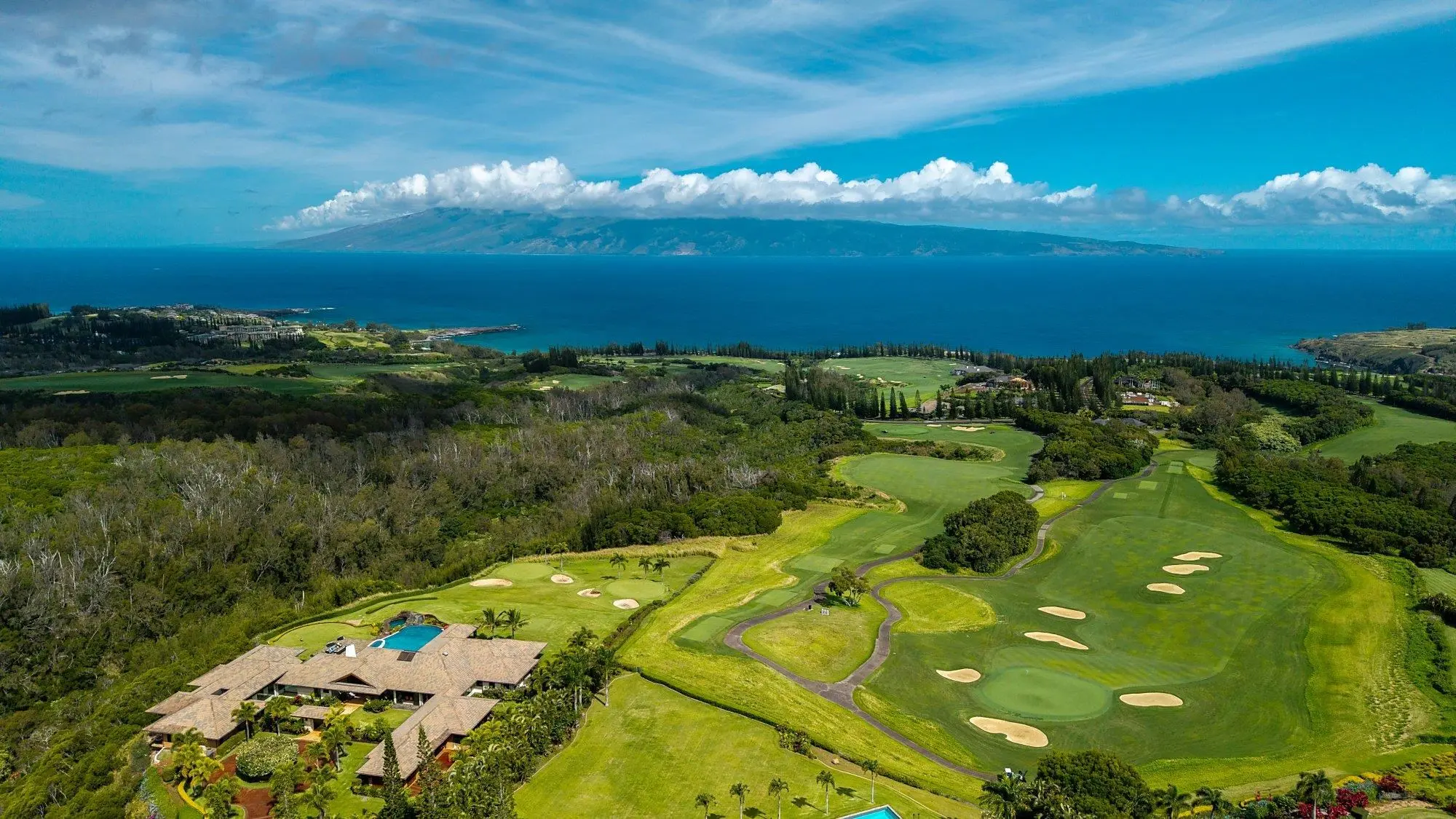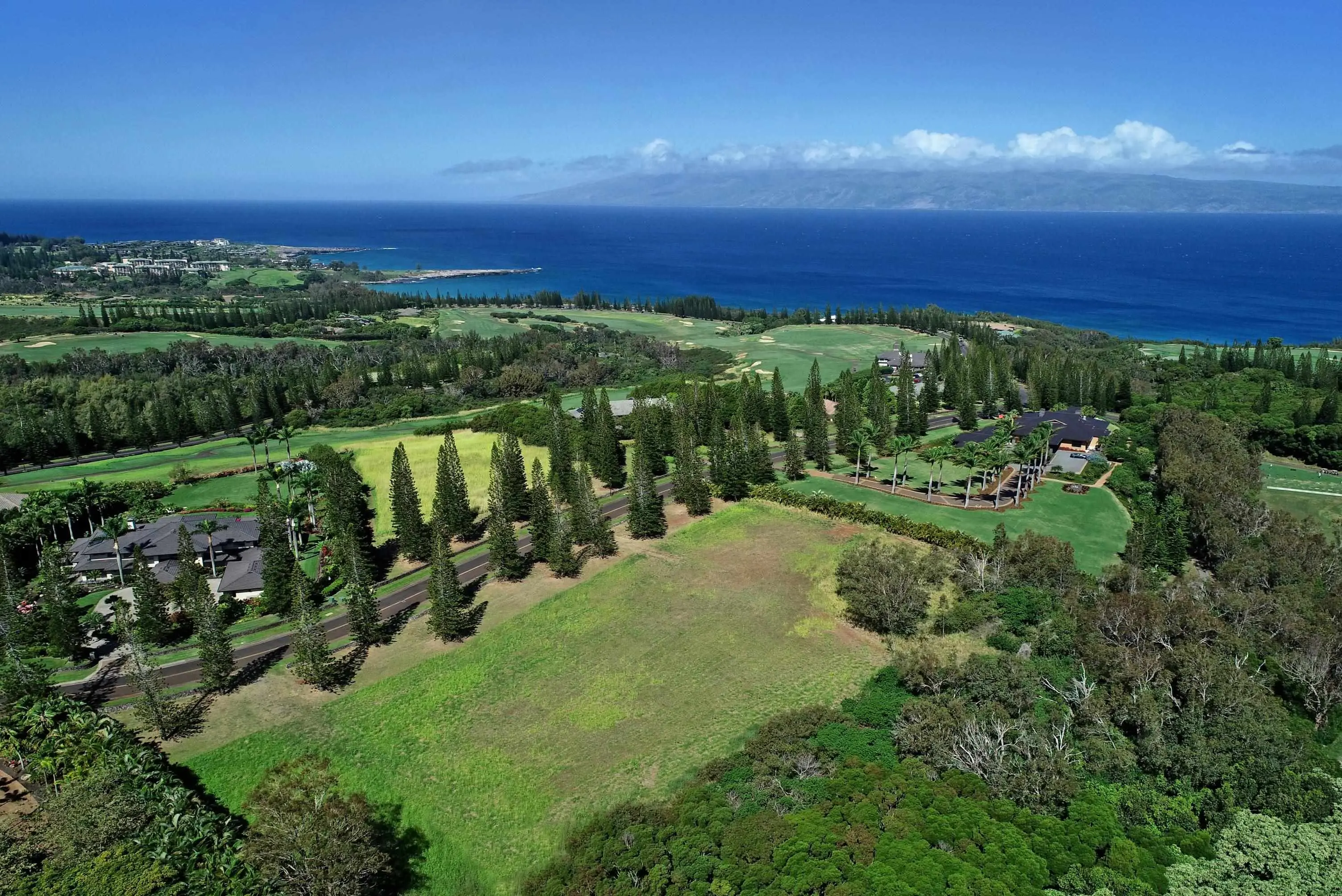 The Plantation Estates surround the famous Plantation Course. The estates here are some of the highest-priced properties on Maui and for good reason. They come with the privilege of spectacular views of the golf course, the Pacific Ocean, the islands of Molokai and Lanai, and of course, the Kapalua Resort itself.