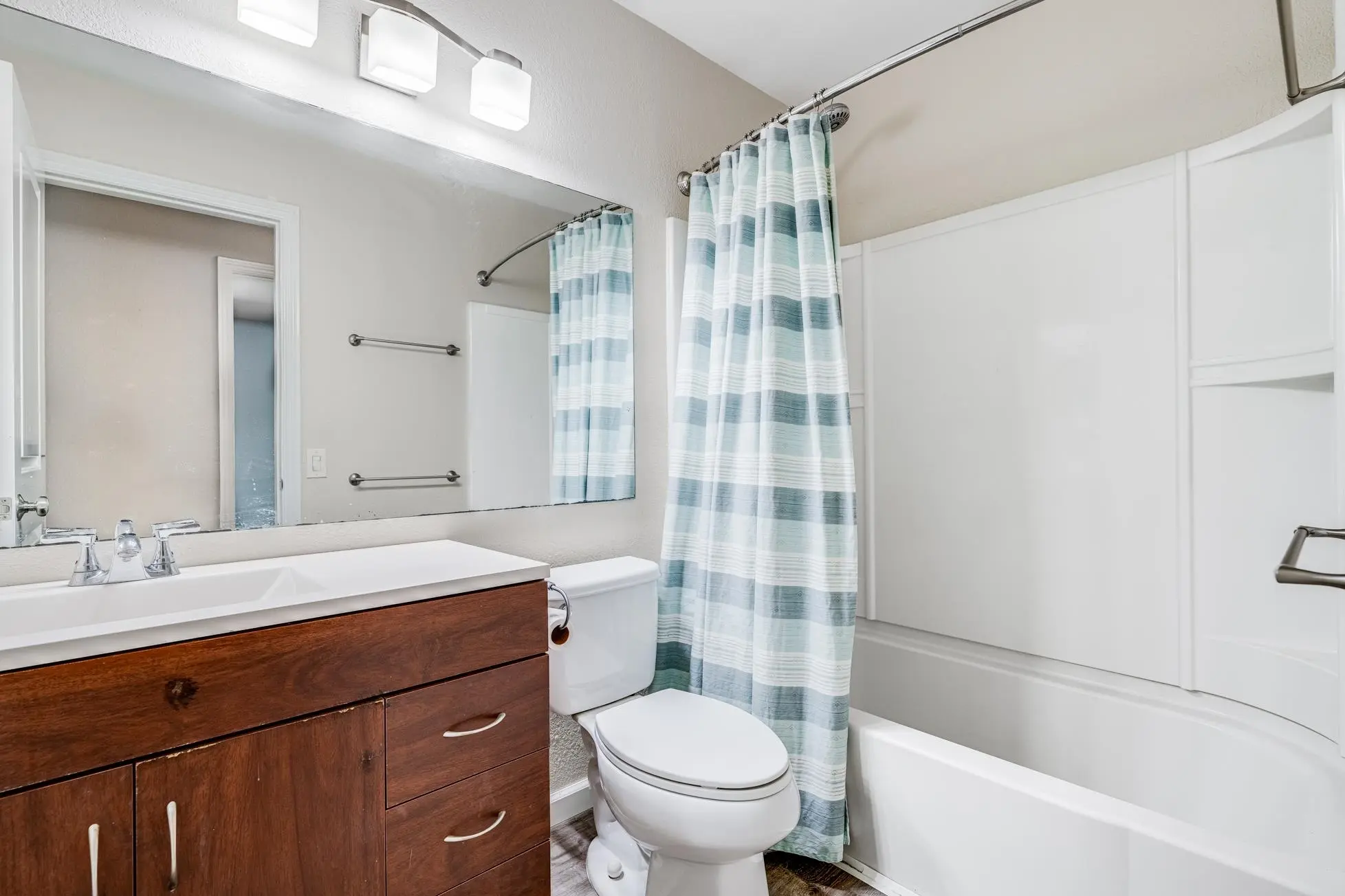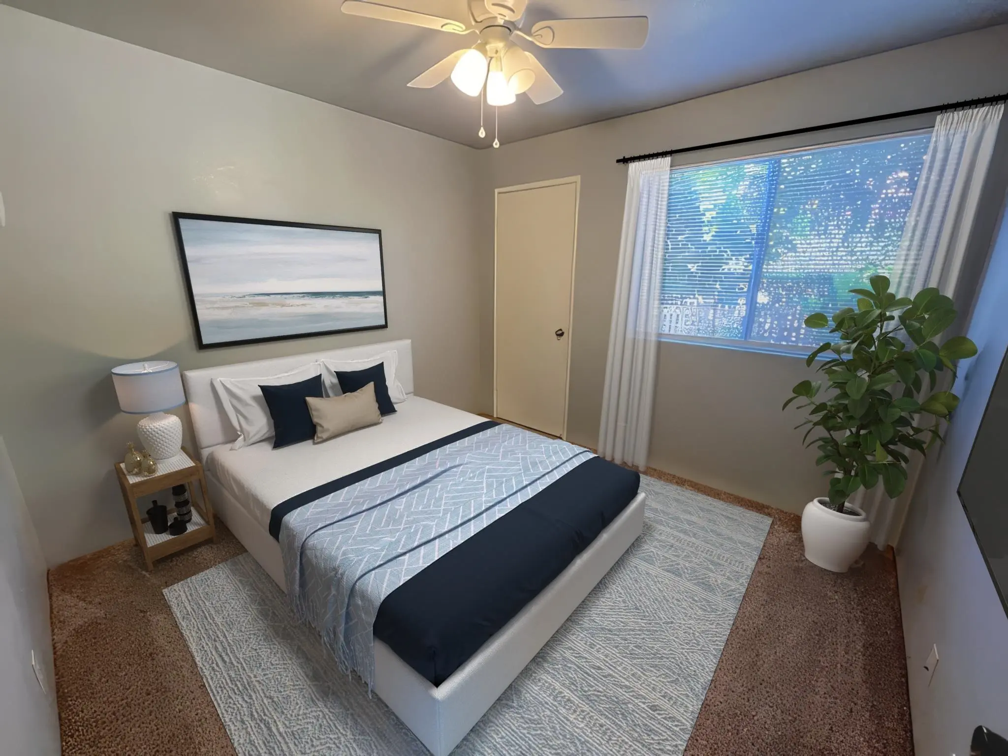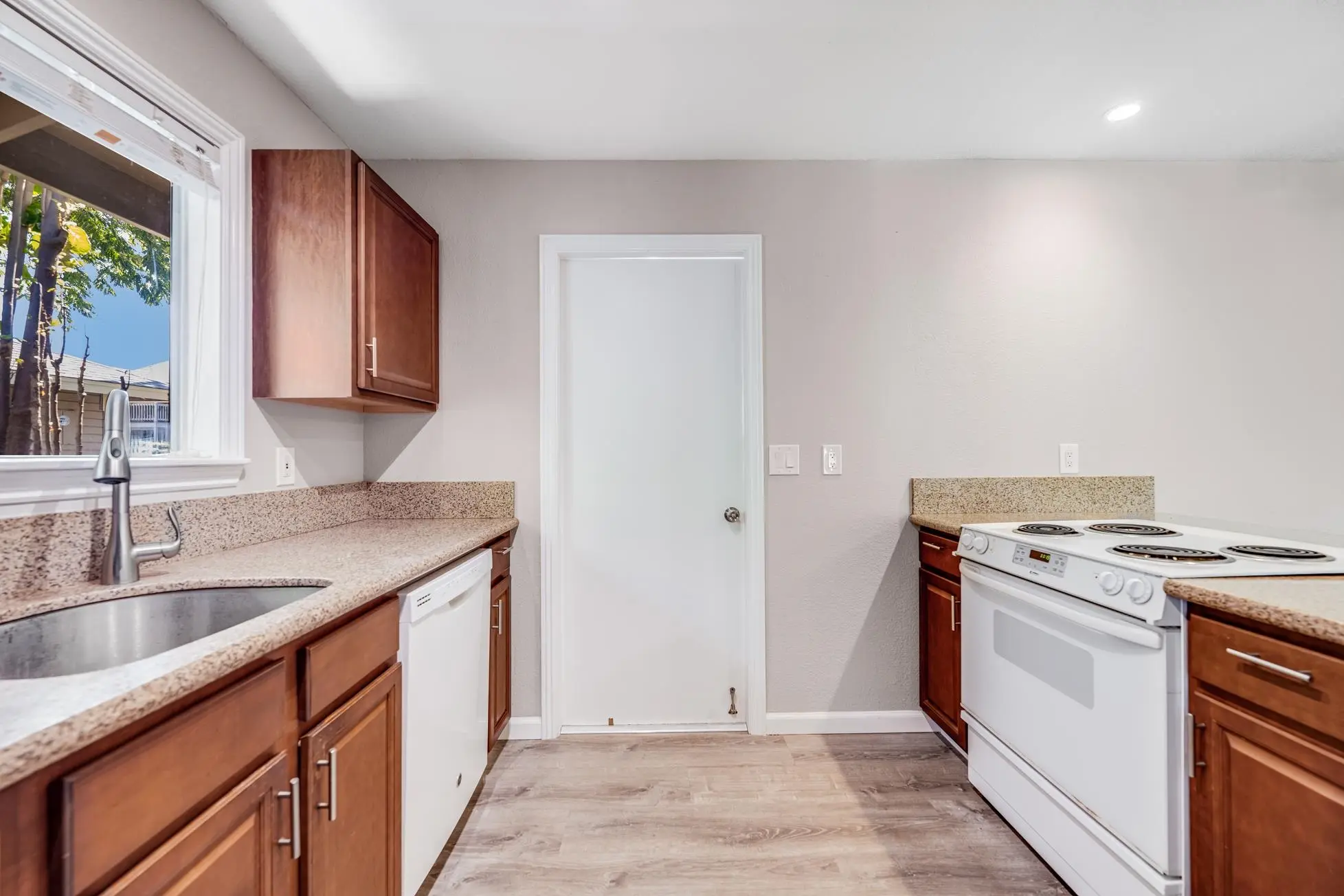 The other ten buildings form a row along one edge of the development. They all provide floor plans for three-bedroom and two baths. These units furnish between 1,129 and 1,250 total square feet of interior living space.