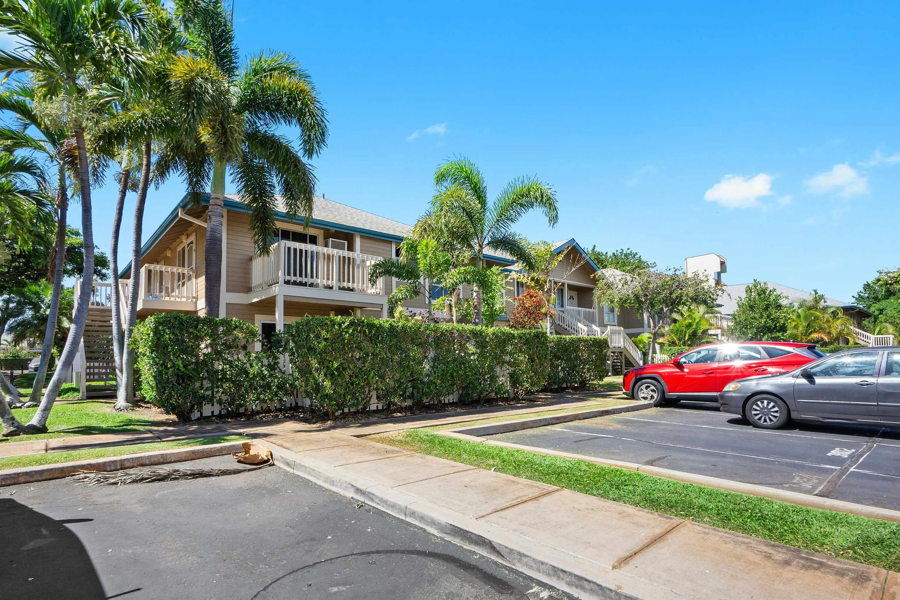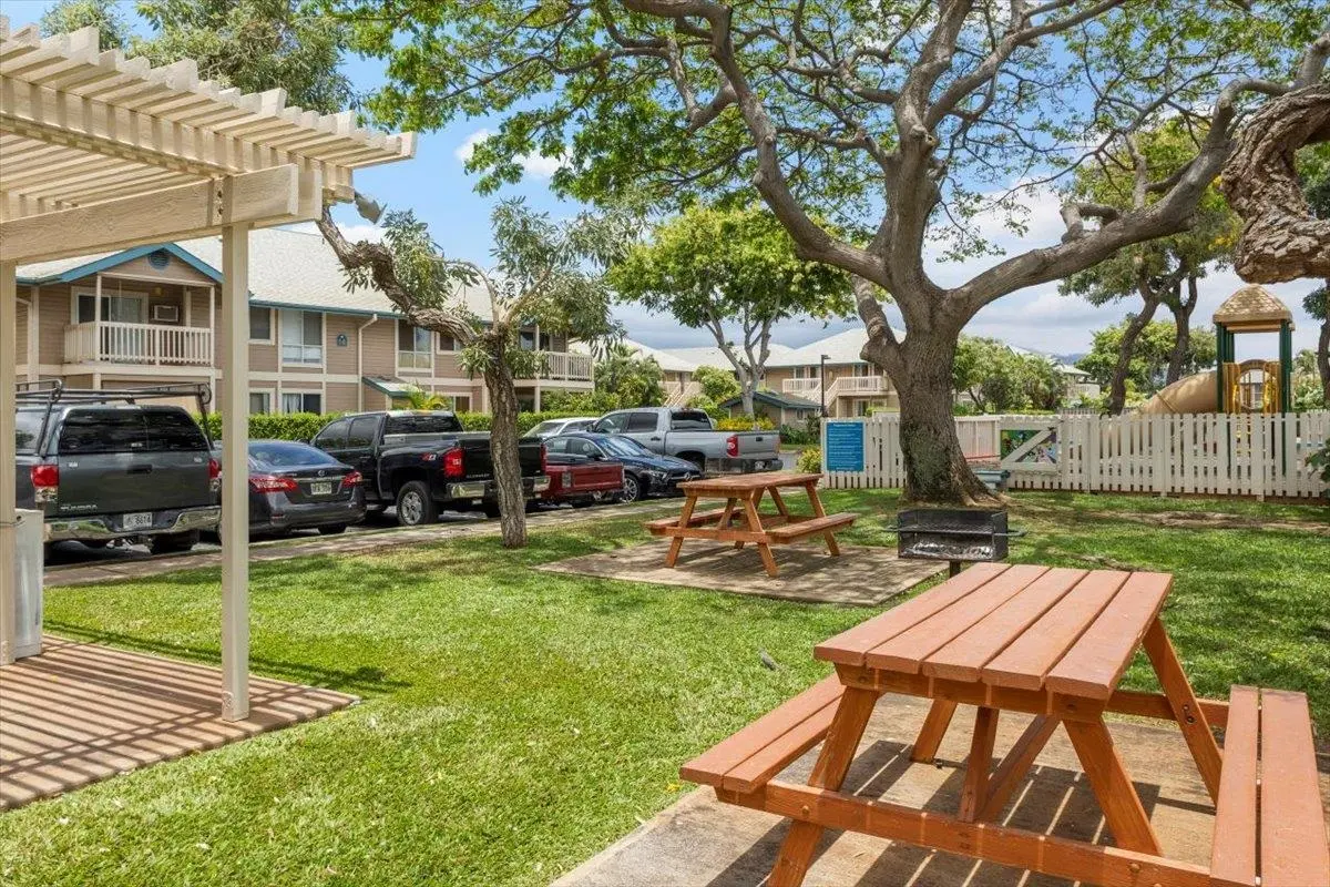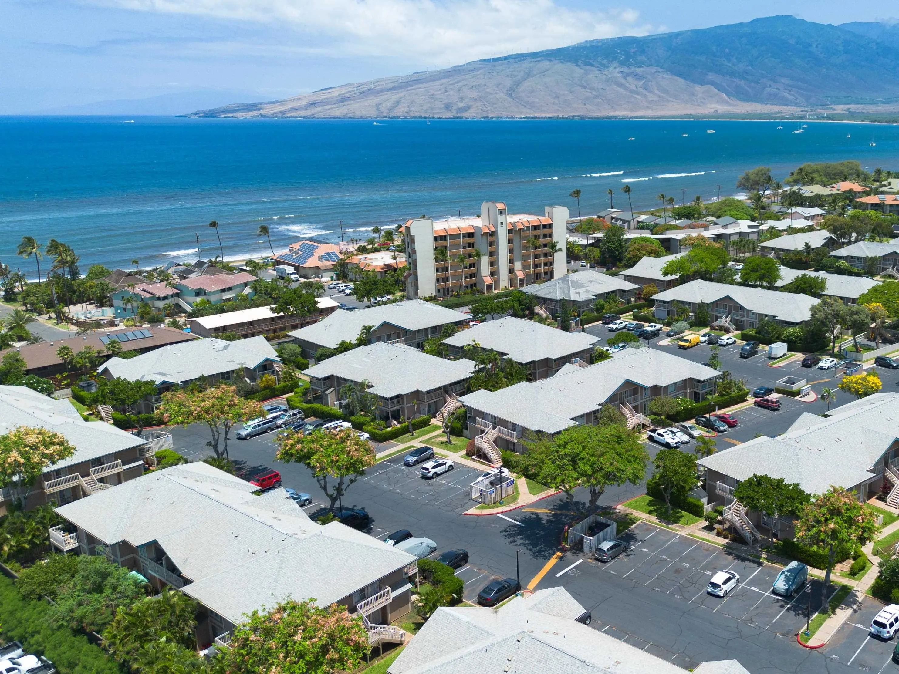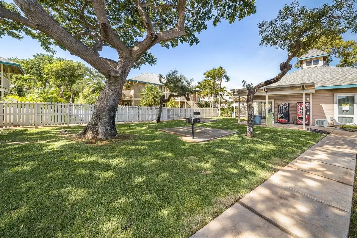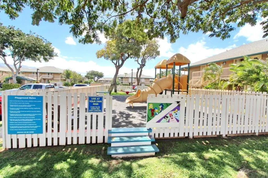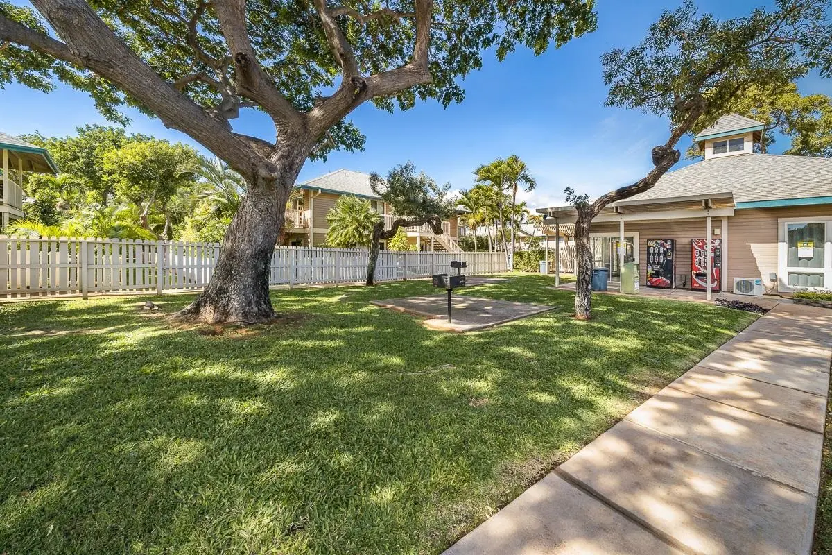 Most of the 31 concrete and wood two-story apartment buildings in this enclave cluster in groups. The subdivision includes a total of 346 units. Every residence features either a patio or a private lanai. Some upper-level homes offer panoramic views of the nearby West Maui Mountains. Downstairs apartments often enjoy attractively fenced back yards.