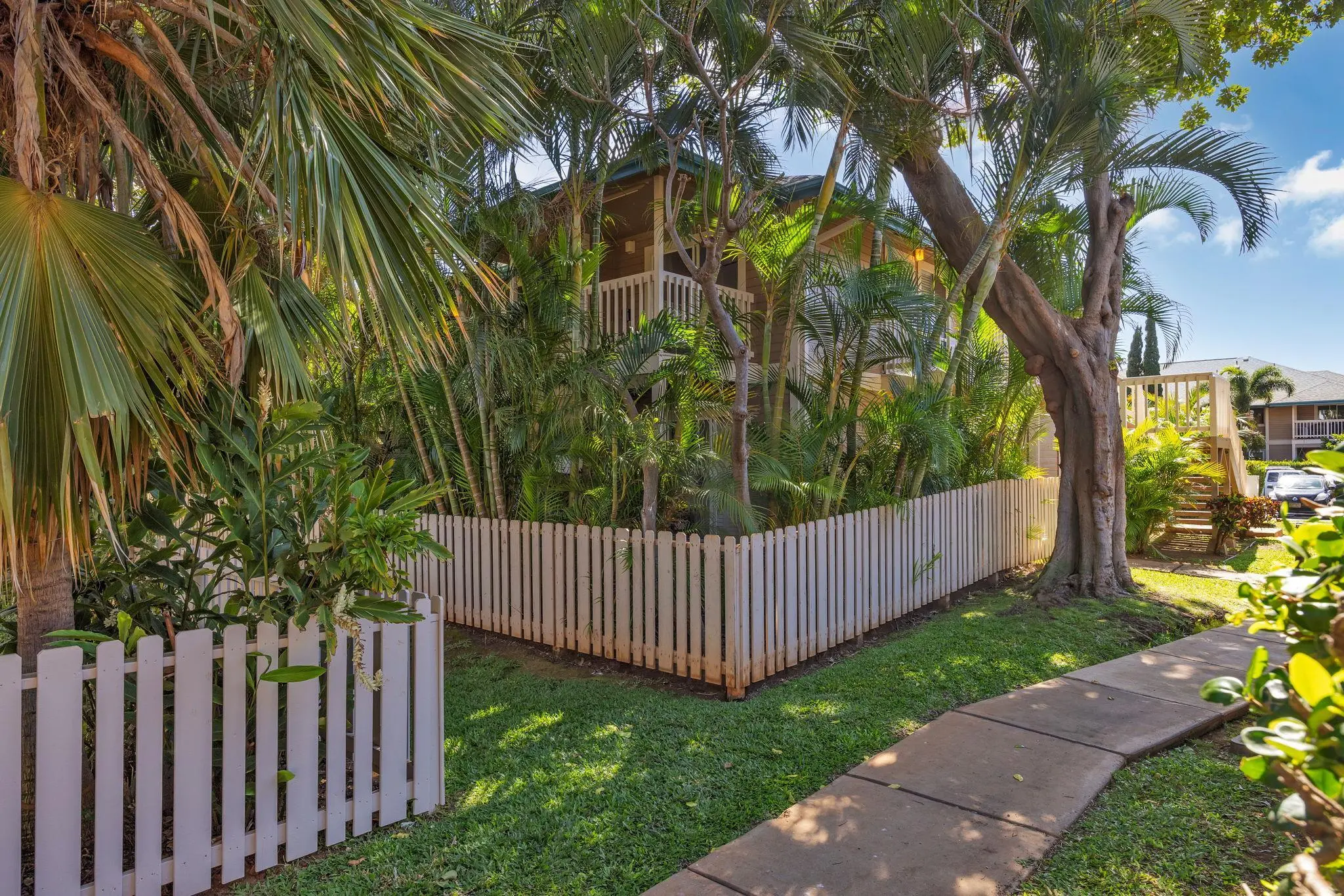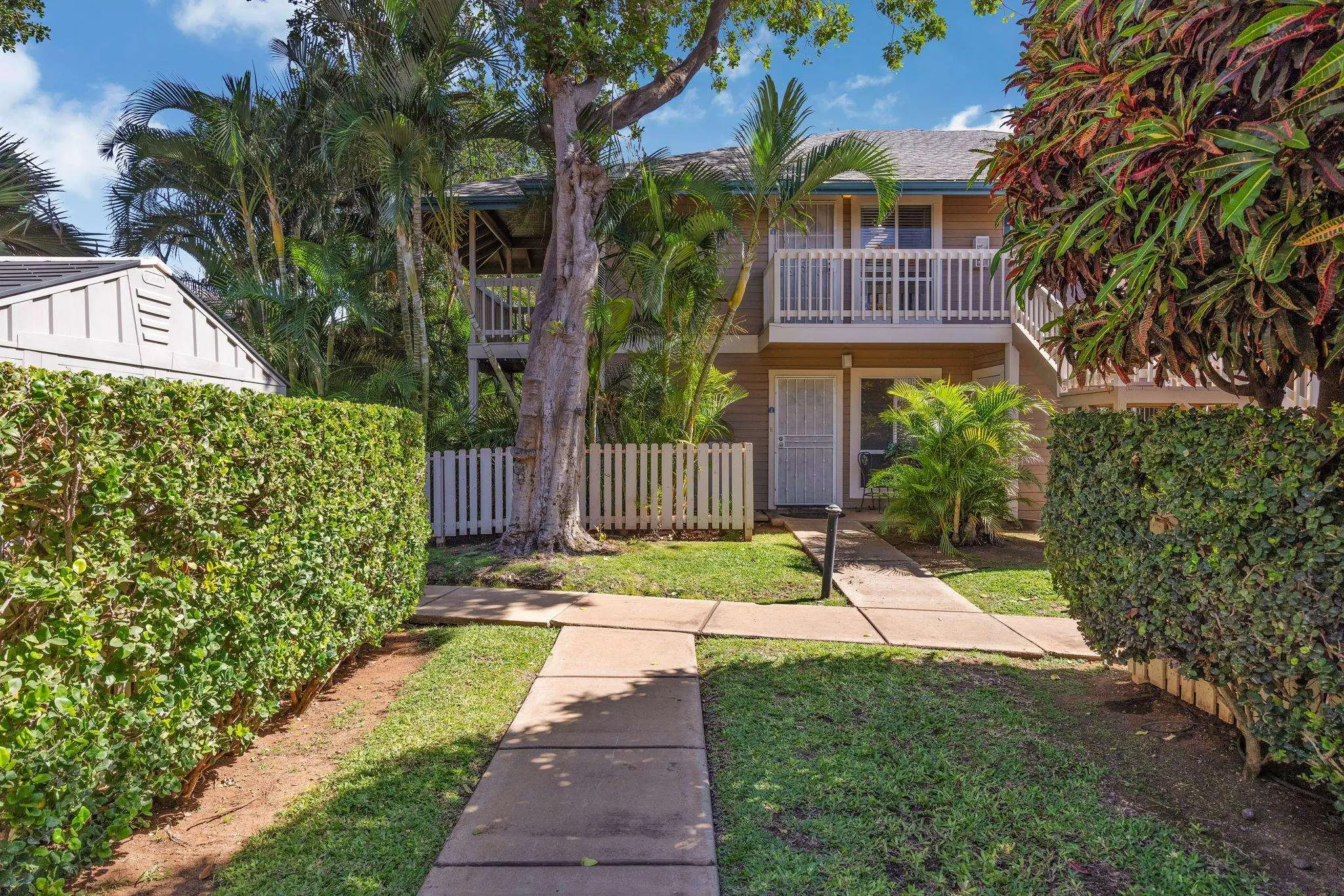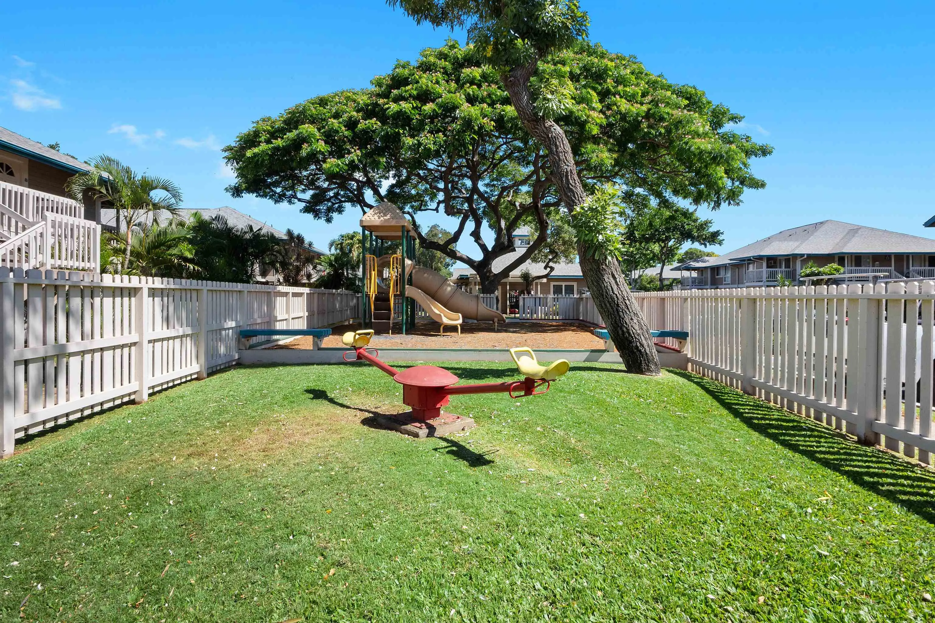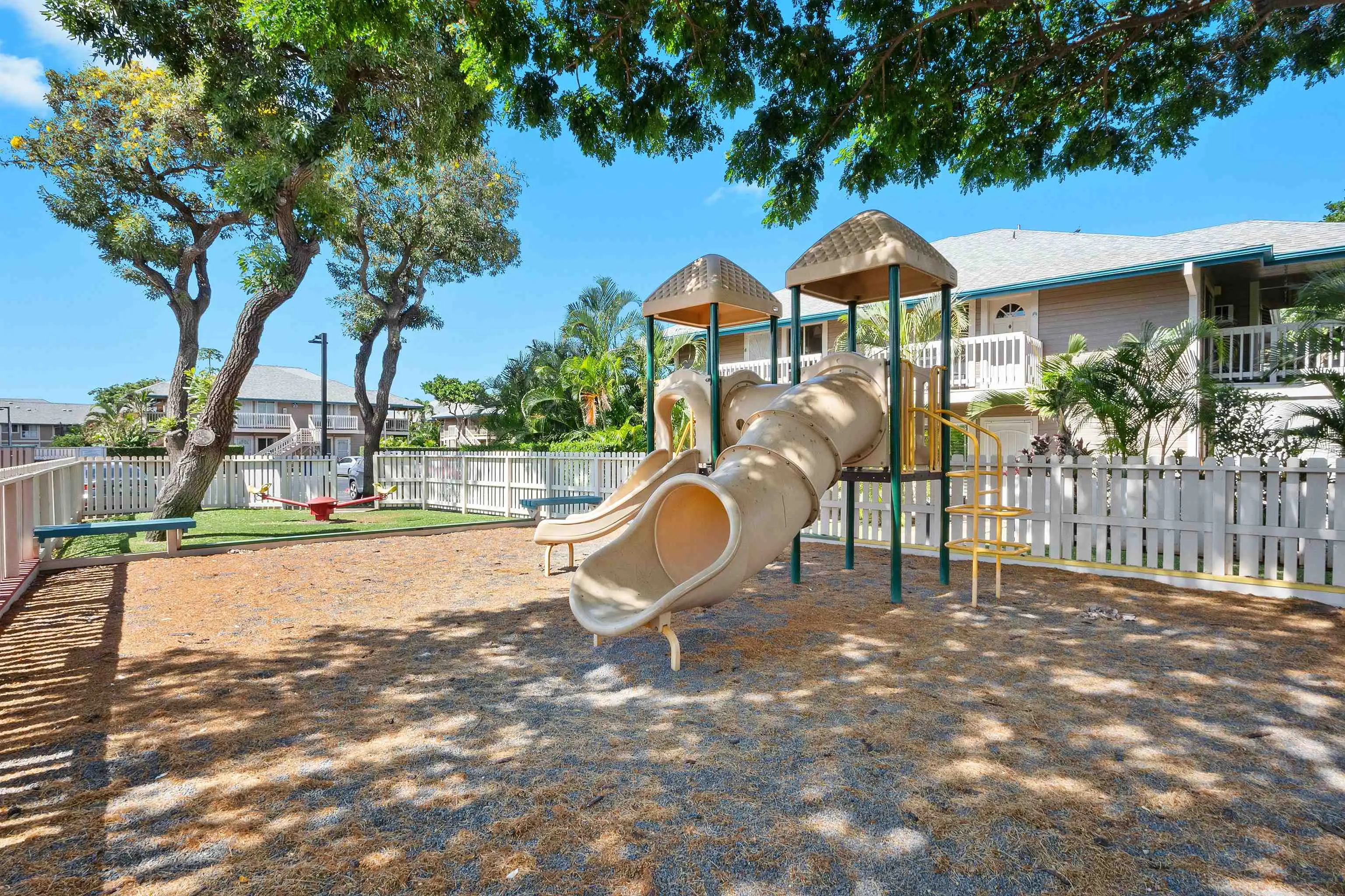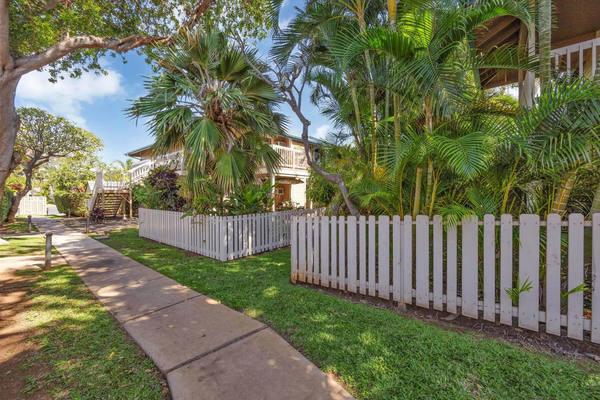Most of the 31 concrete and wood two-story apartment buildings in this enclave cluster in groups. The subdivision includes a total of 346 units. Every residence features either a patio or a private lanai. Some upper-level homes offer panoramic views of the nearby West Maui Mountains. Downstairs apartments often enjoy attractively fenced back yards.